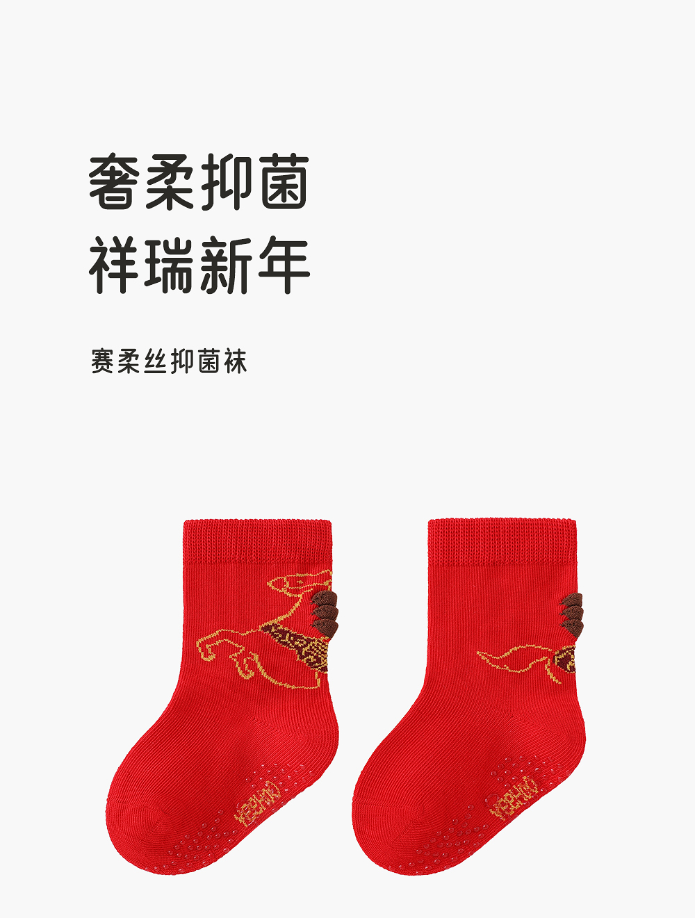 【商场同款】英氏宝宝新年袜赛柔丝短袜7A抑菌防臭儿童袜子新款