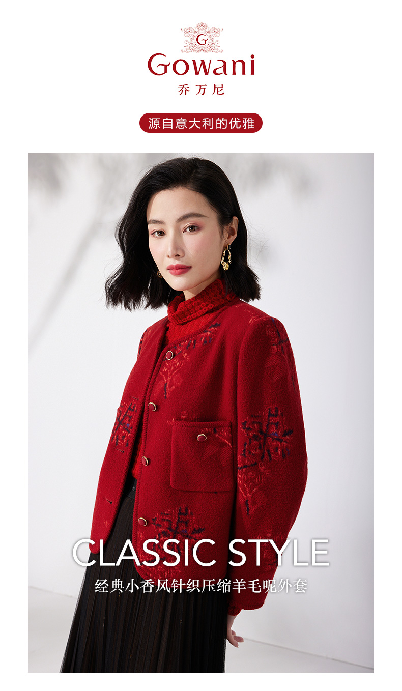 乔万尼新品春夏短外套小香风精致感羊毛呢ET1B515