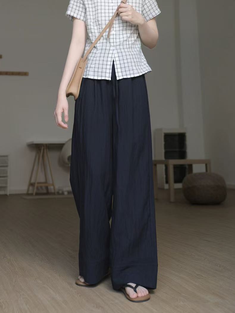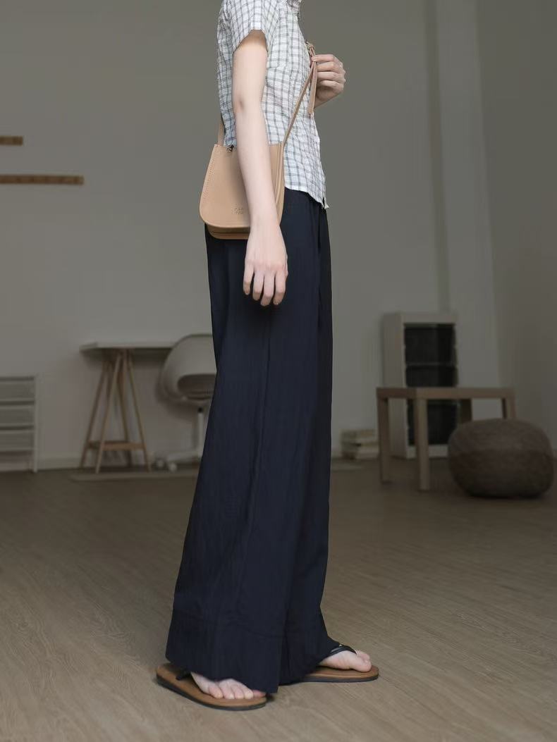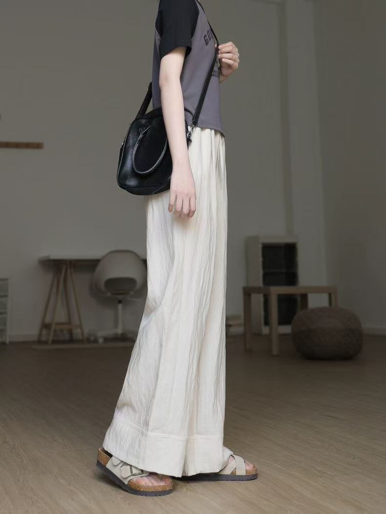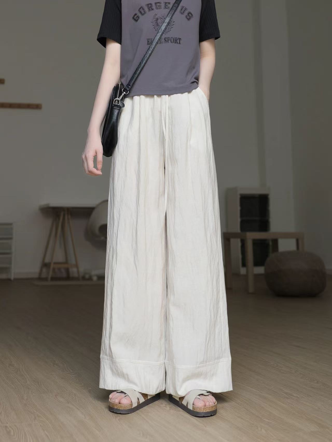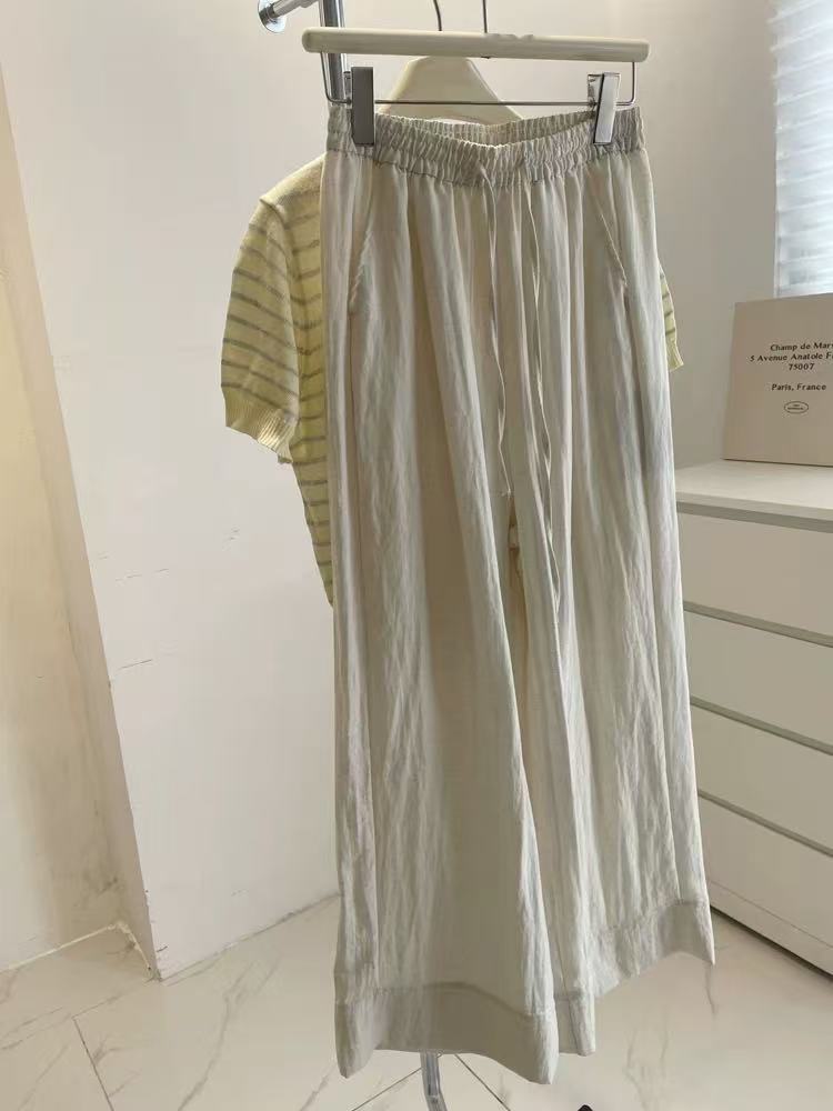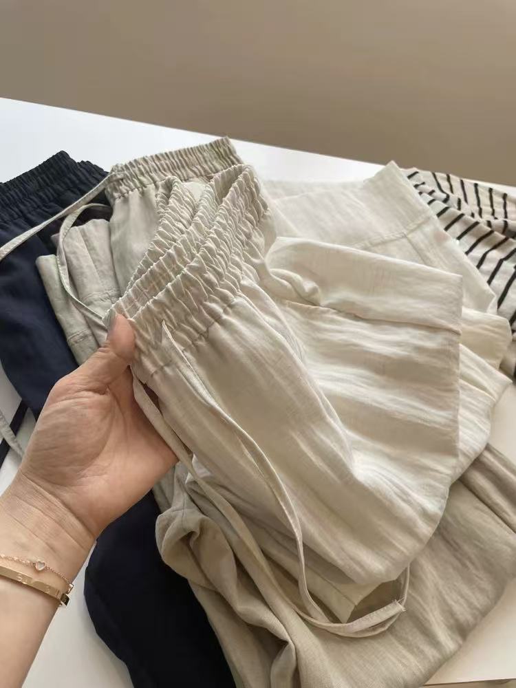 {休闲裤2025}轻薄透气莱赛尔亚麻阔腿裤休闲C013长裤-喜出