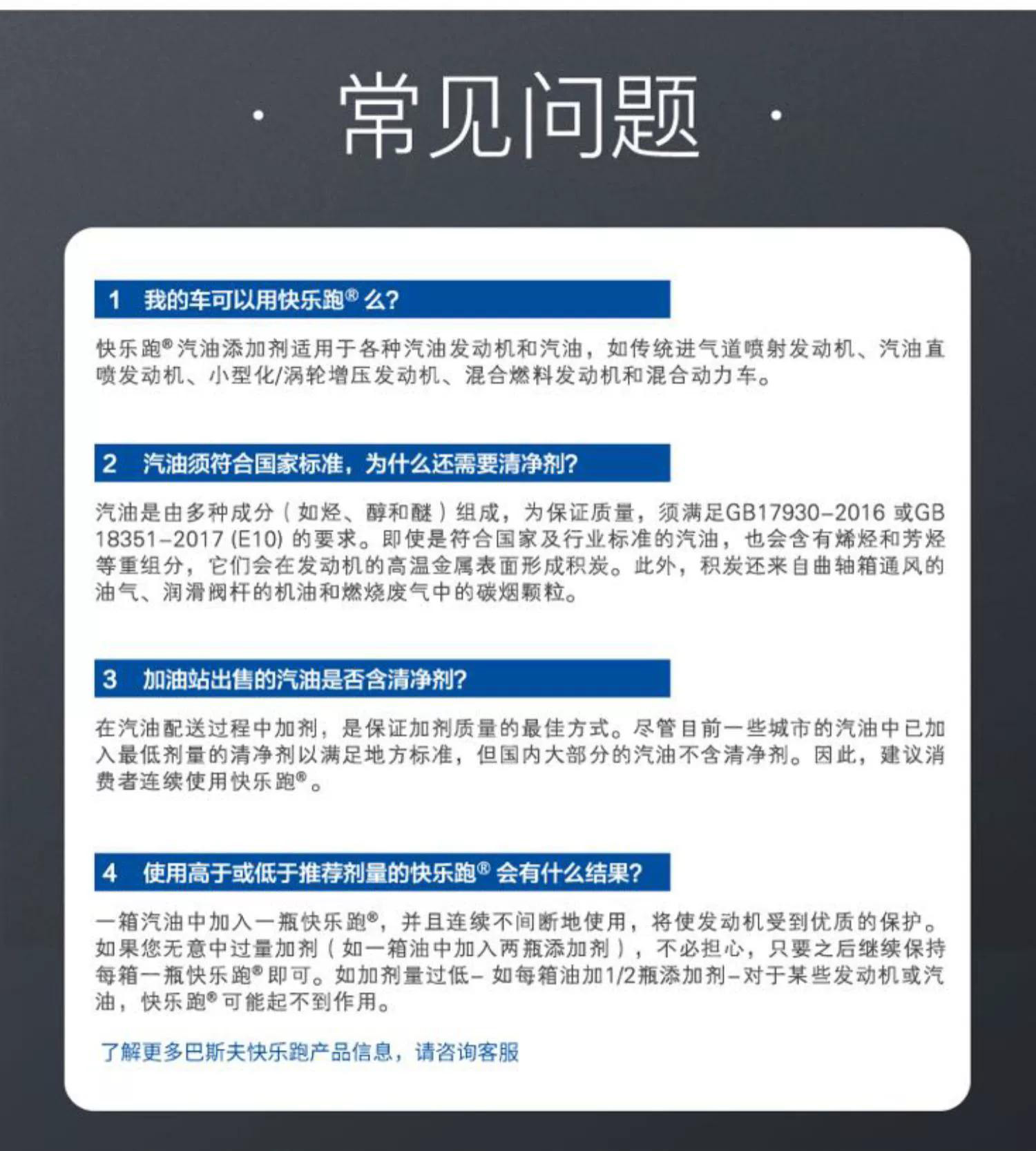 【巴斯夫快乐跑】汽油添加剂 积碳清除剂 节省燃油 保护发动机 新款铁罐装升级版