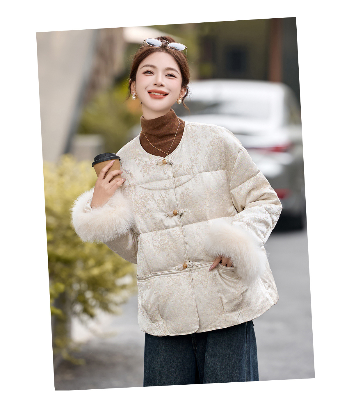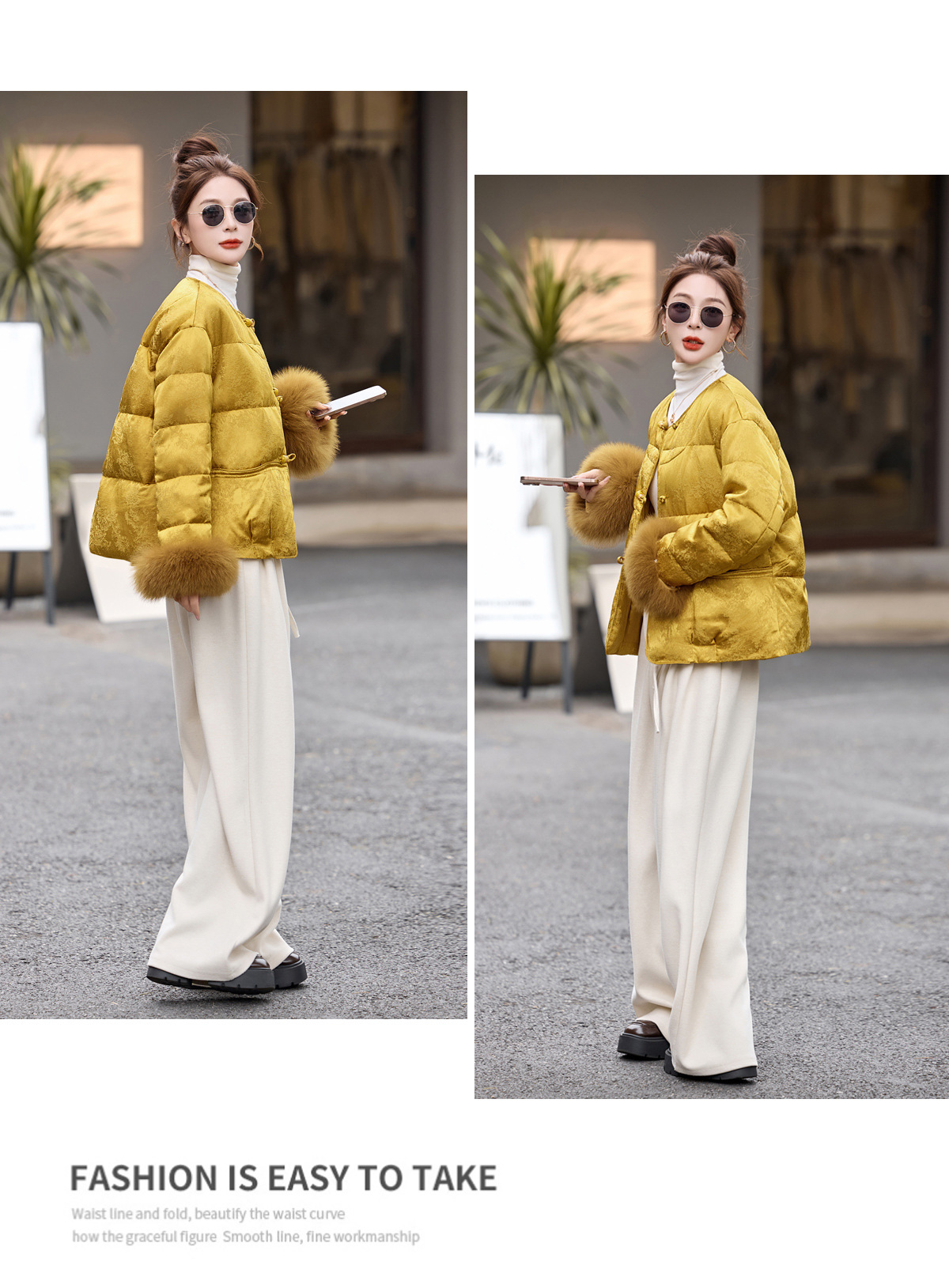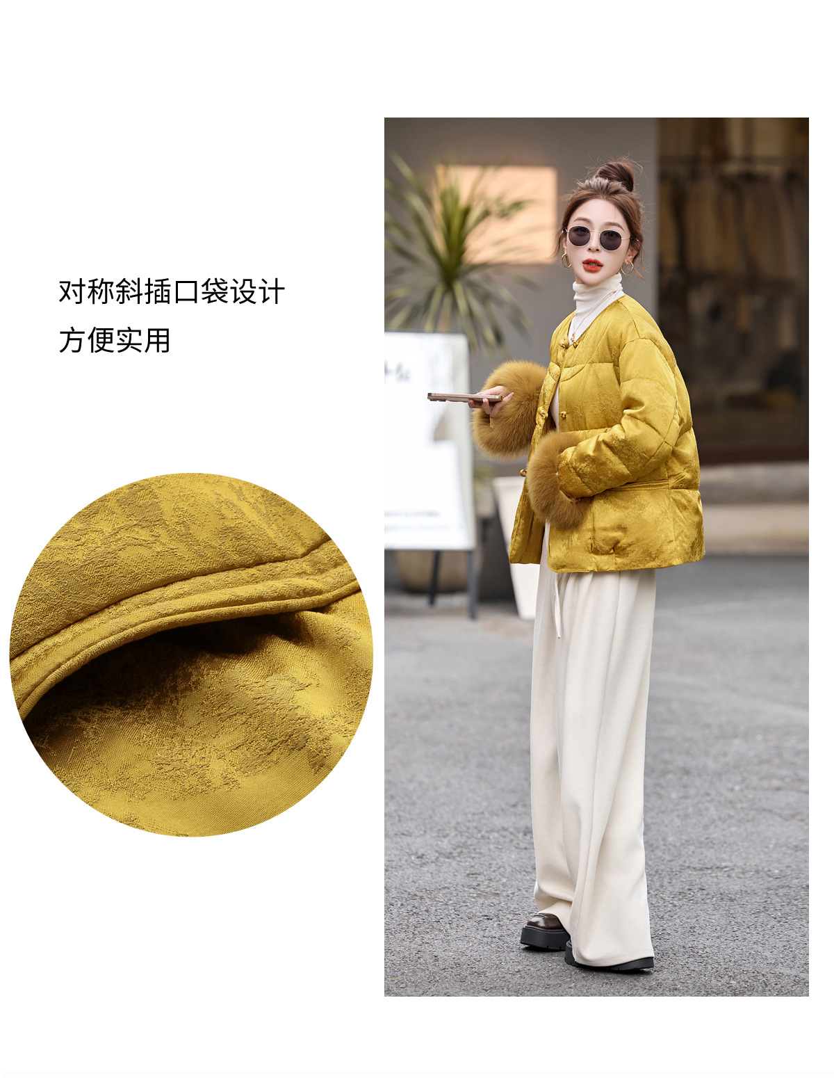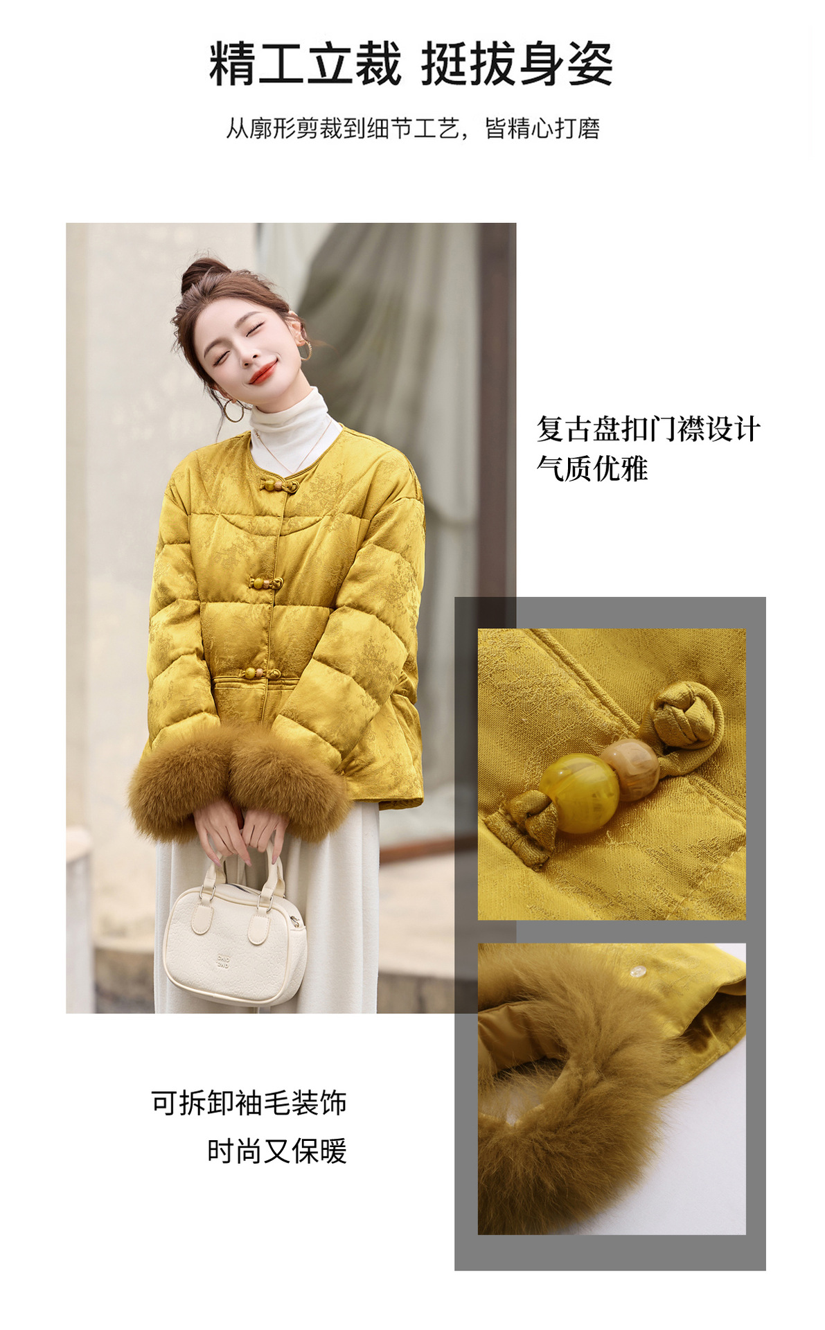 新中式国风盘扣羽绒服,显瘦洋气黄色外套HR-CPYY8177