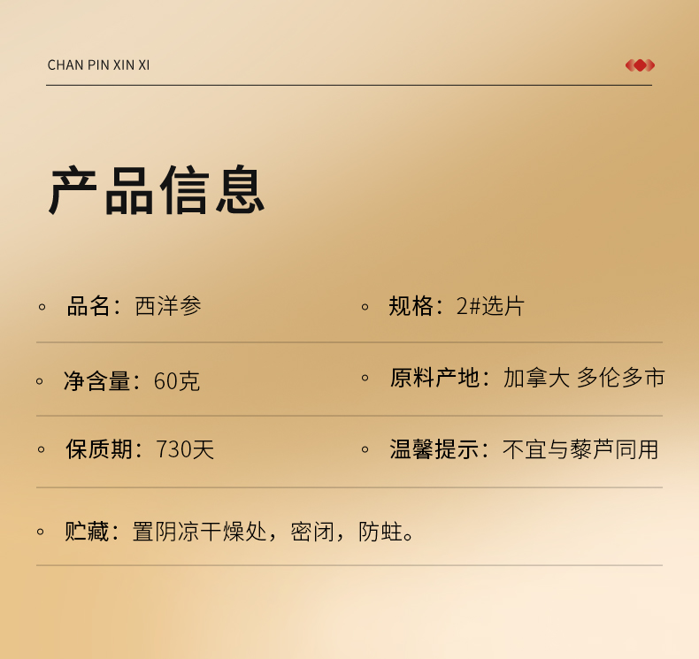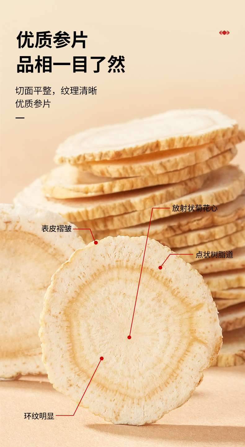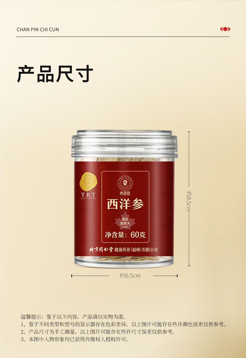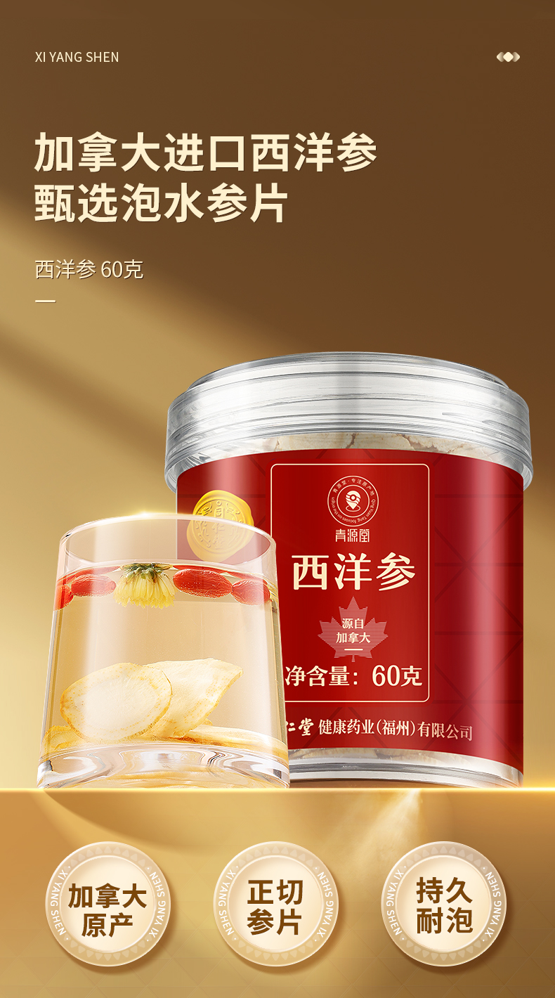 【正宗同仁堂品牌】北京同仁堂 青源堂 加拿大西洋参60克约1.2-1.6cm西洋参片 主根正切 片片精华SY