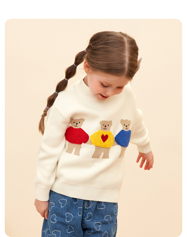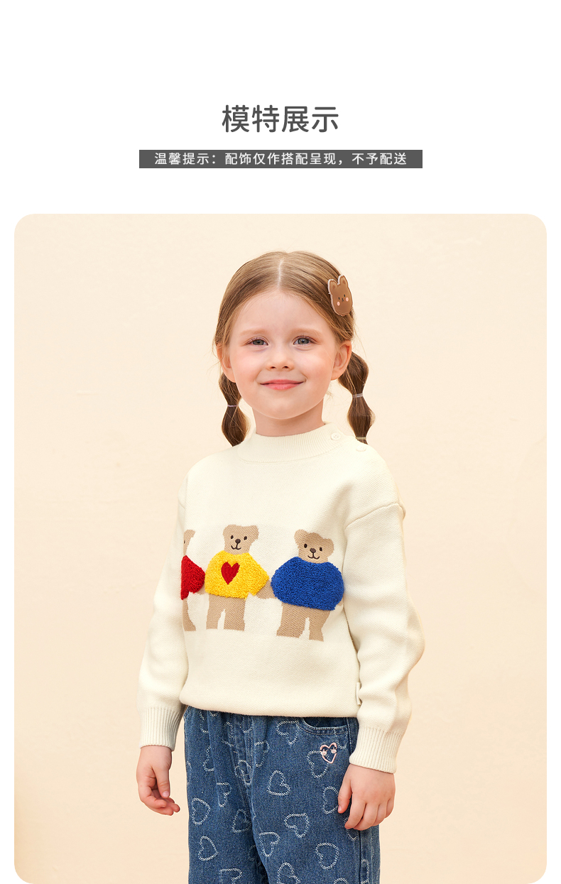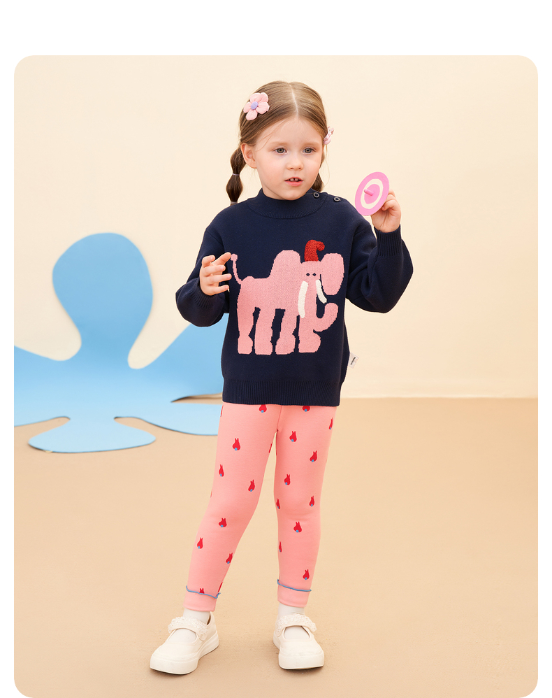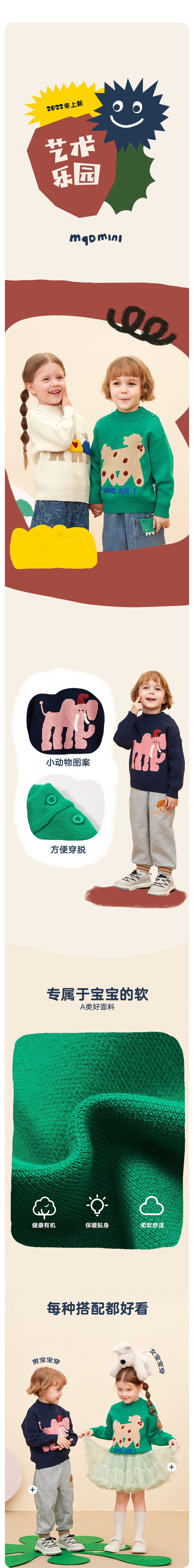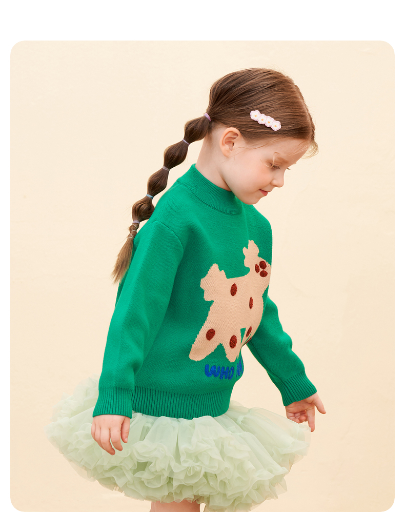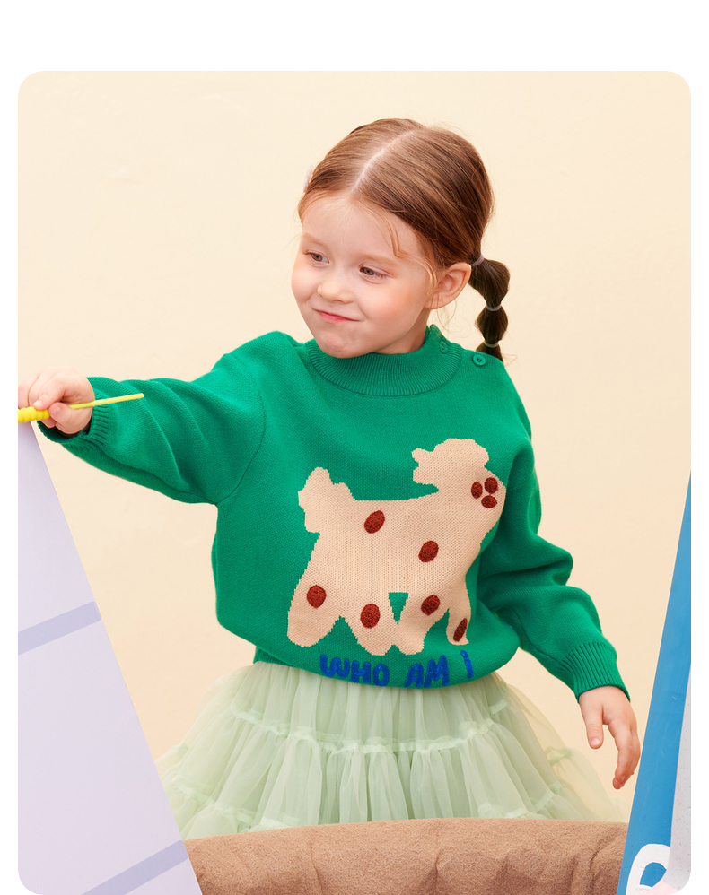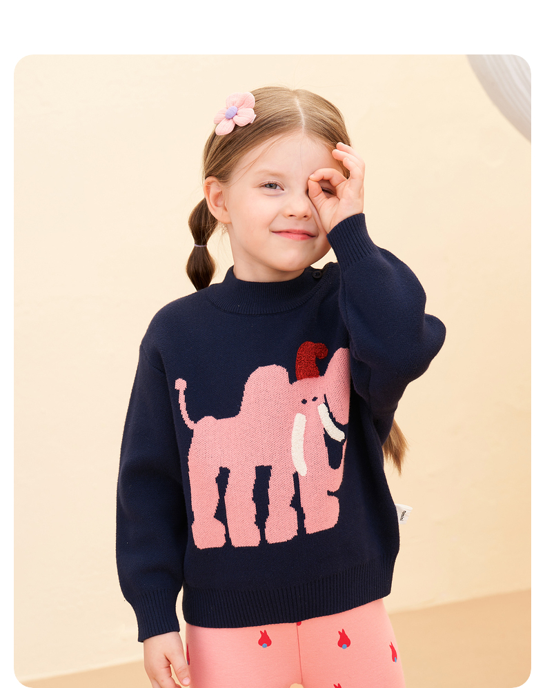 【MQD】童装秋冬季毛衣男女儿童宽松艺术萌趣提花韩版半高领针织衫