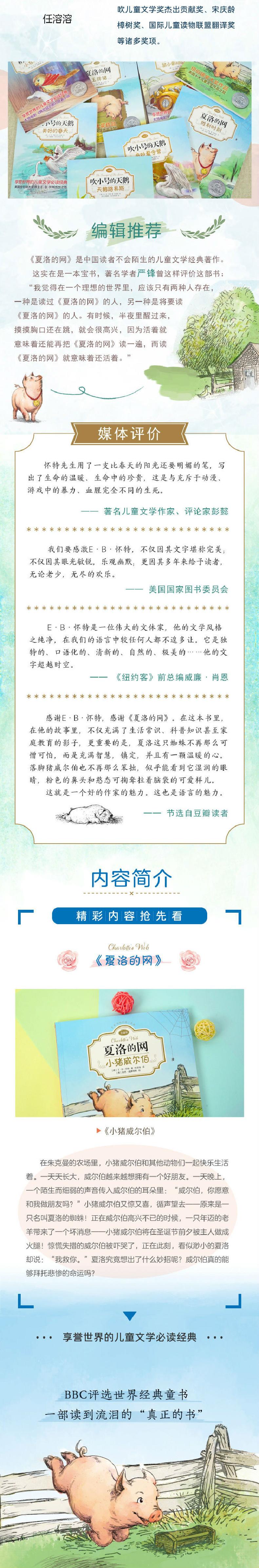 《夏洛的网》在中国已经创下了万册的销量,多年来被诸多育门荐阅读。