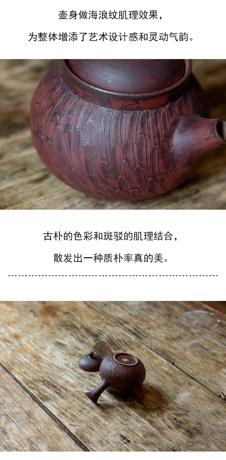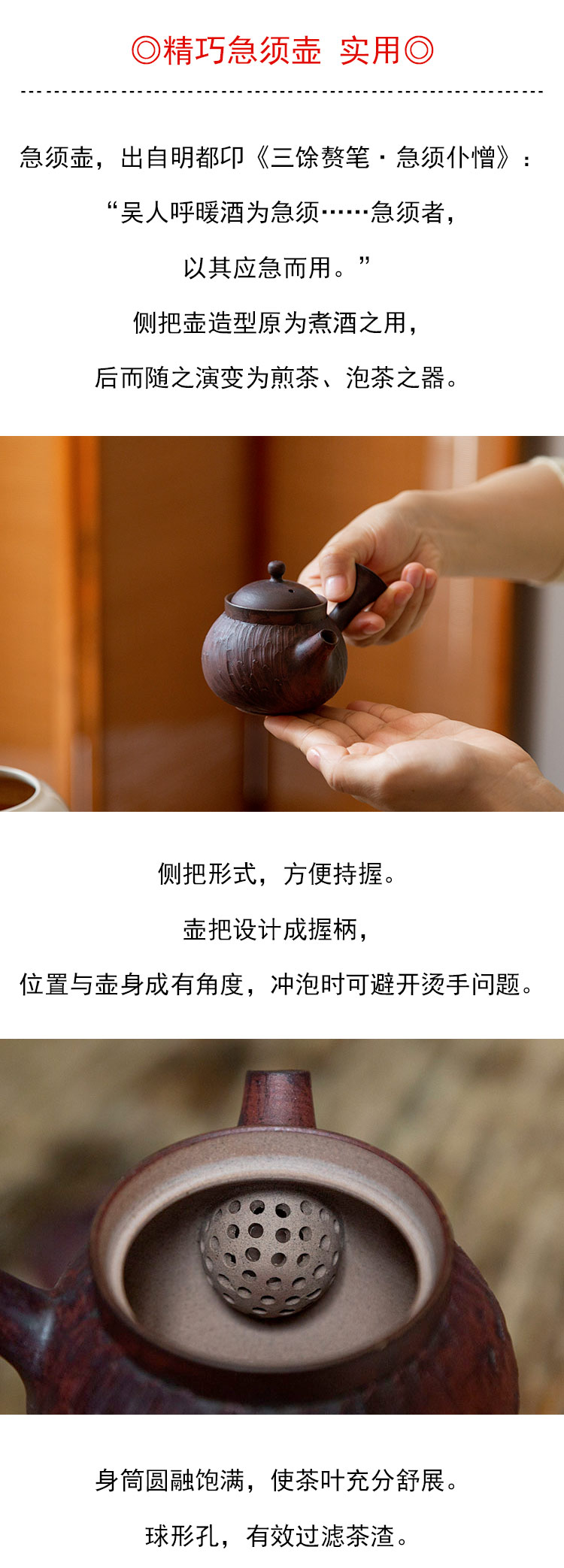 茶香记 景德镇手工红陶玄系列侧把急须壶150ml温厚拙朴实用茶壶