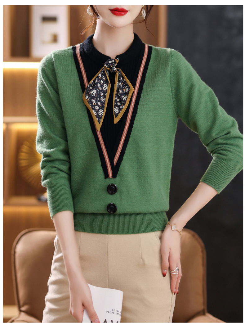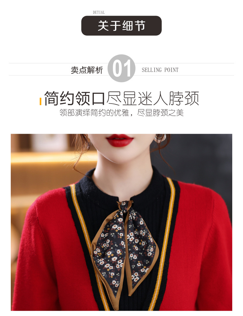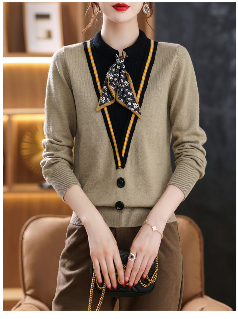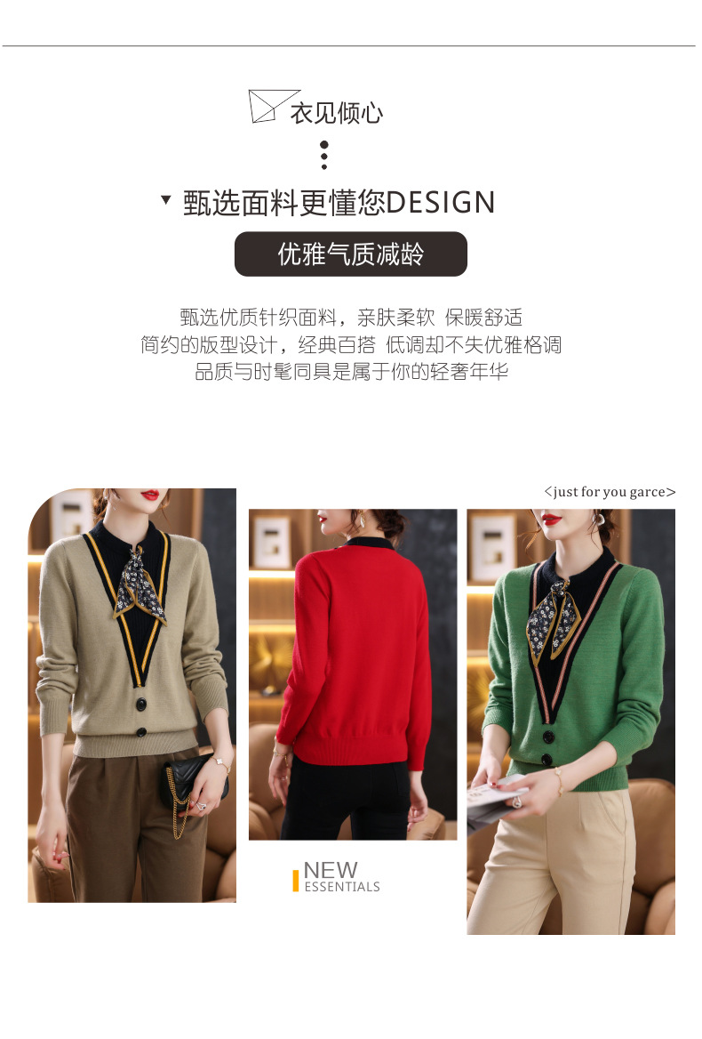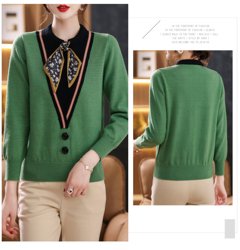 SC33-92003 假两件毛衣时尚洋气飘带针织衫2022新款秋季上衣女长袖拼色打底衫