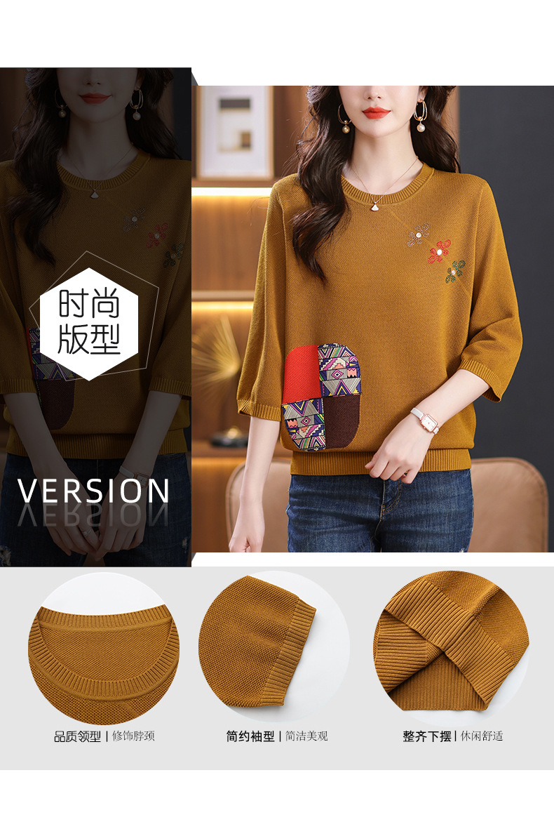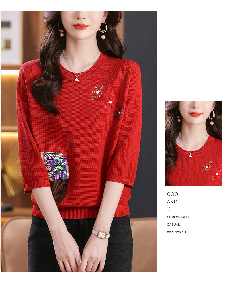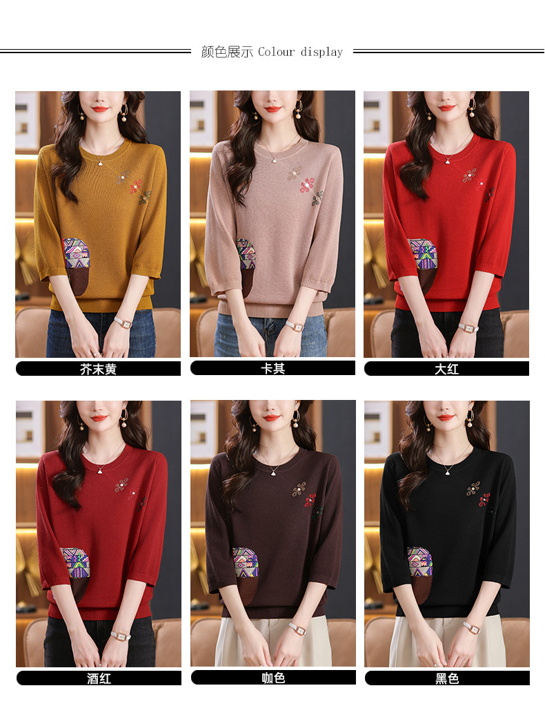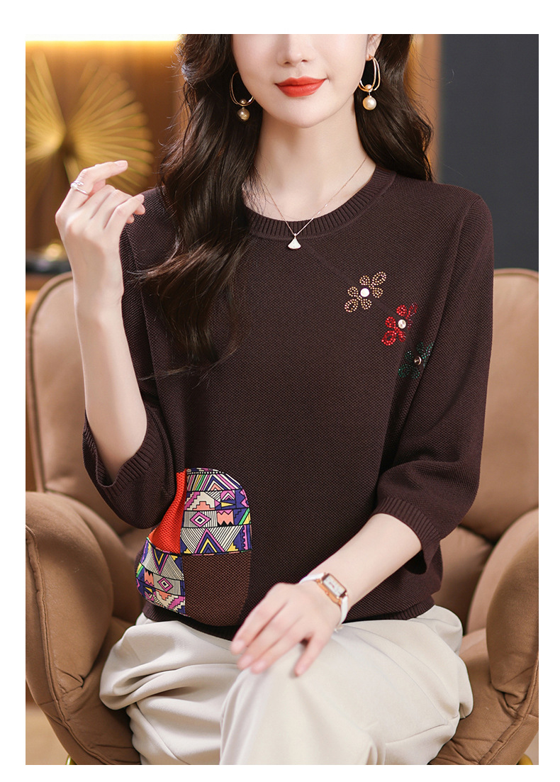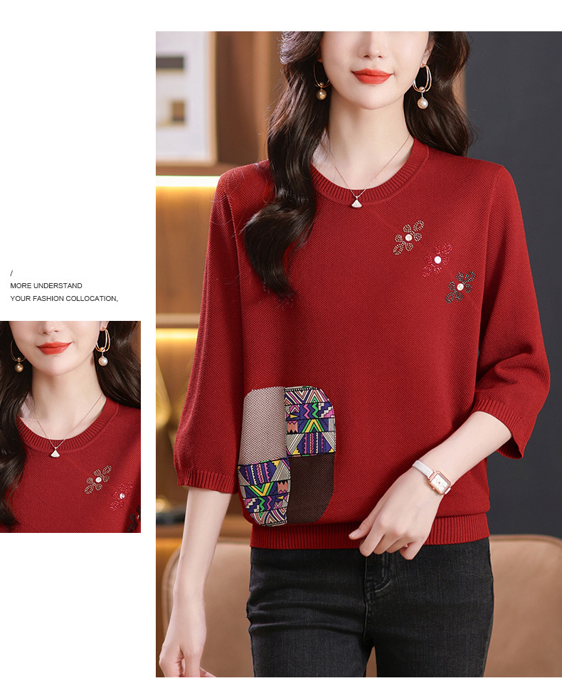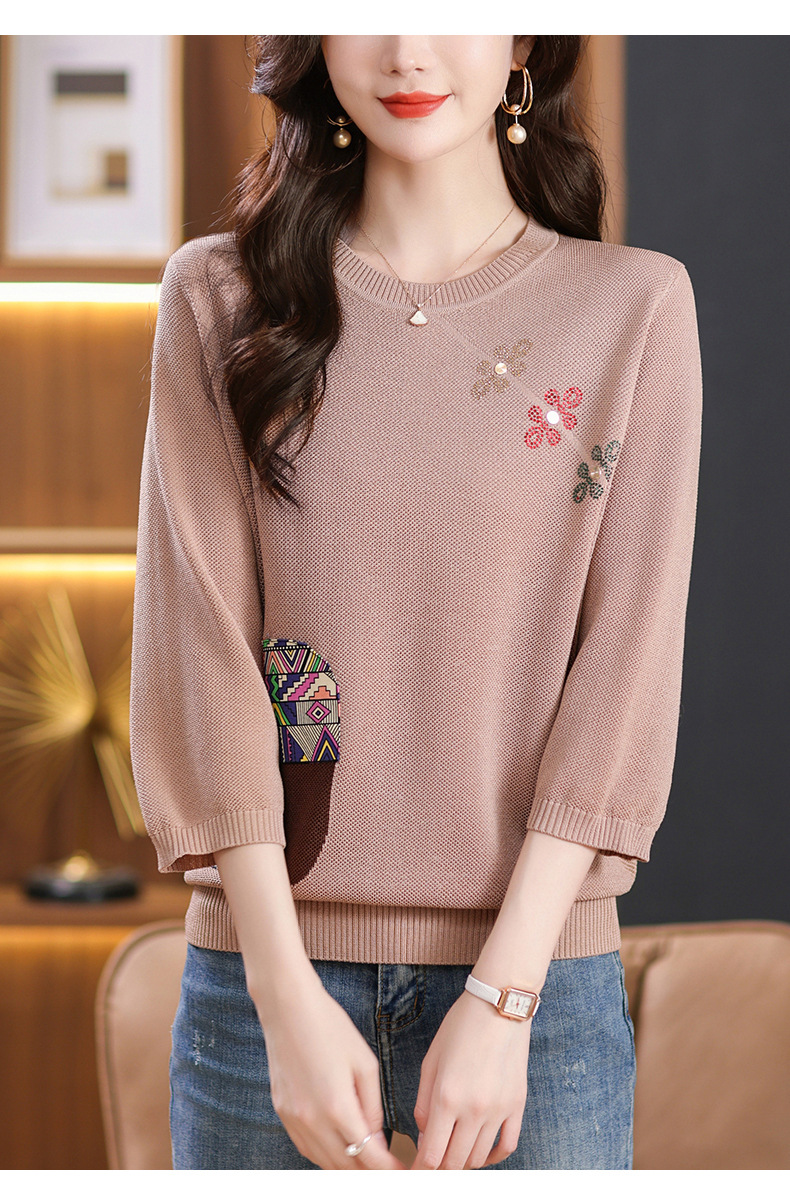 CC10-5128春装2024新款七分袖上衣冰丝针织衫百搭宽松大码印花夏天t恤