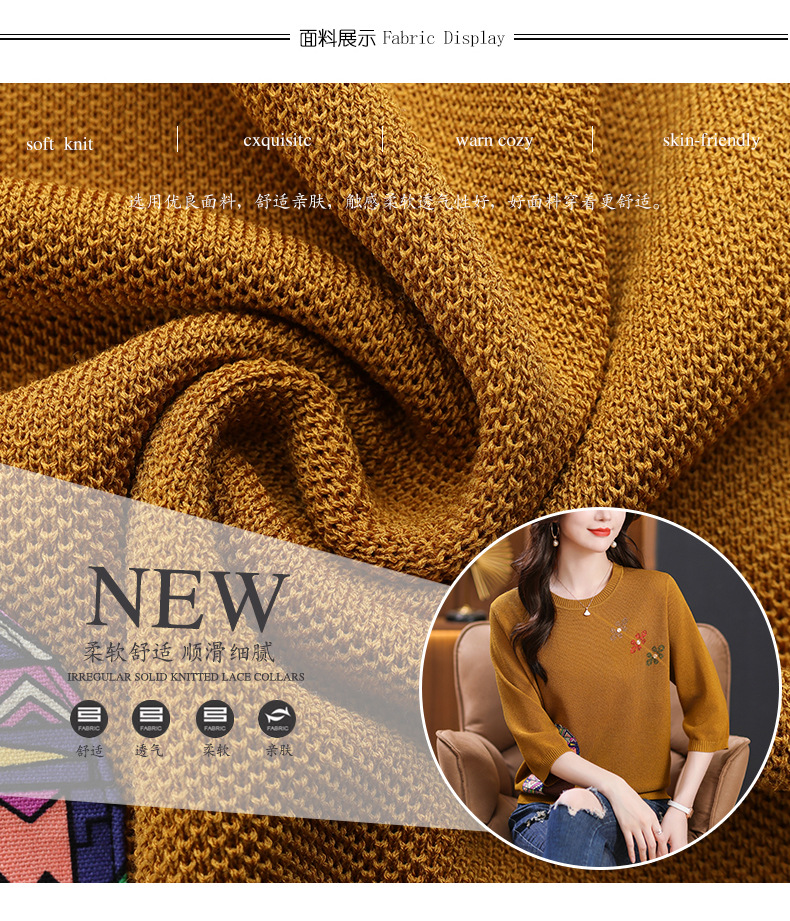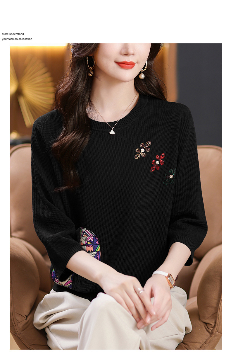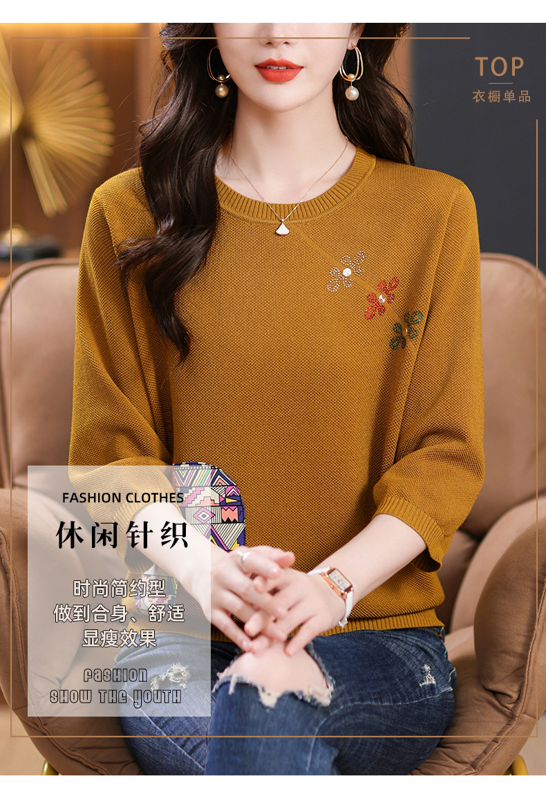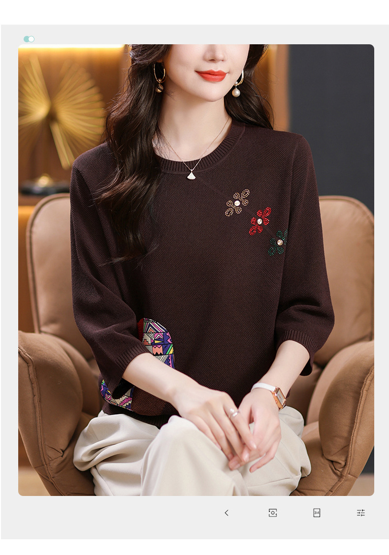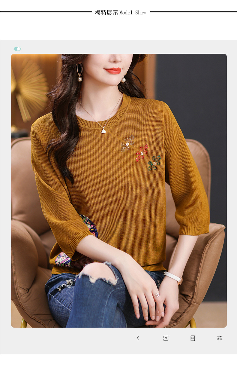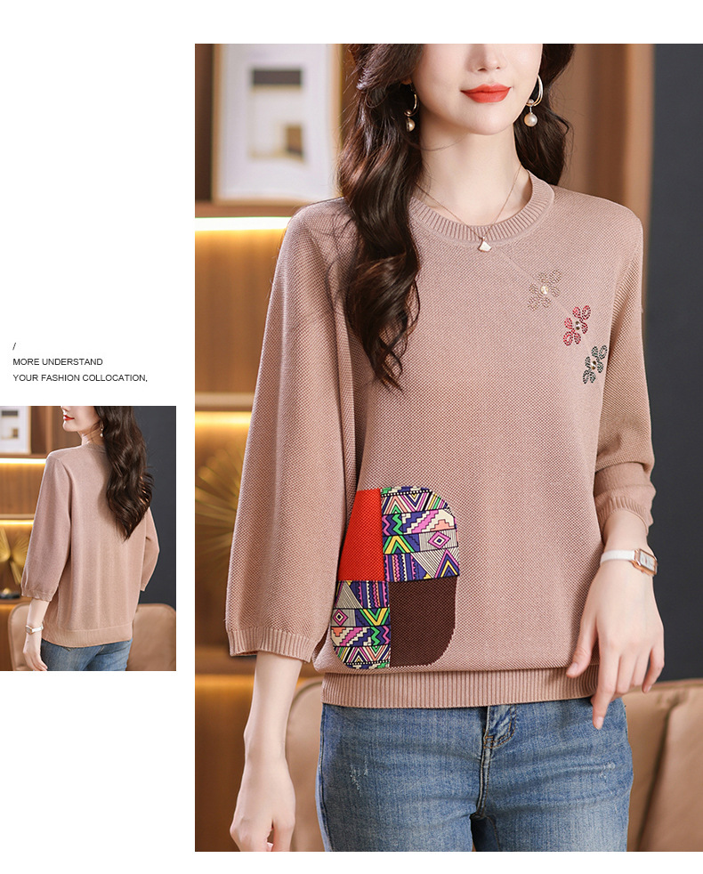 CC10-5128春装2024新款七分袖上衣冰丝针织衫百搭宽松大码印花夏天t恤