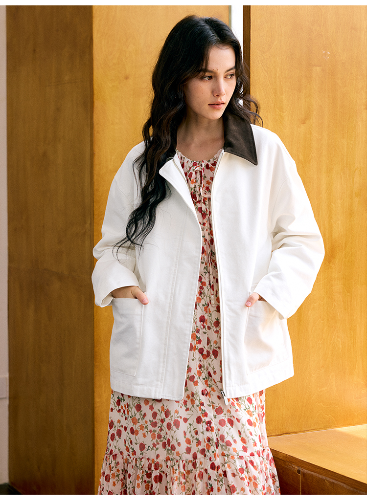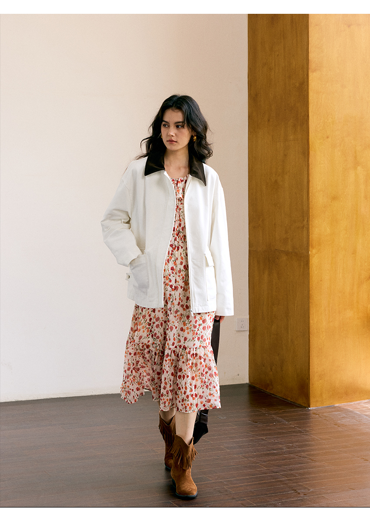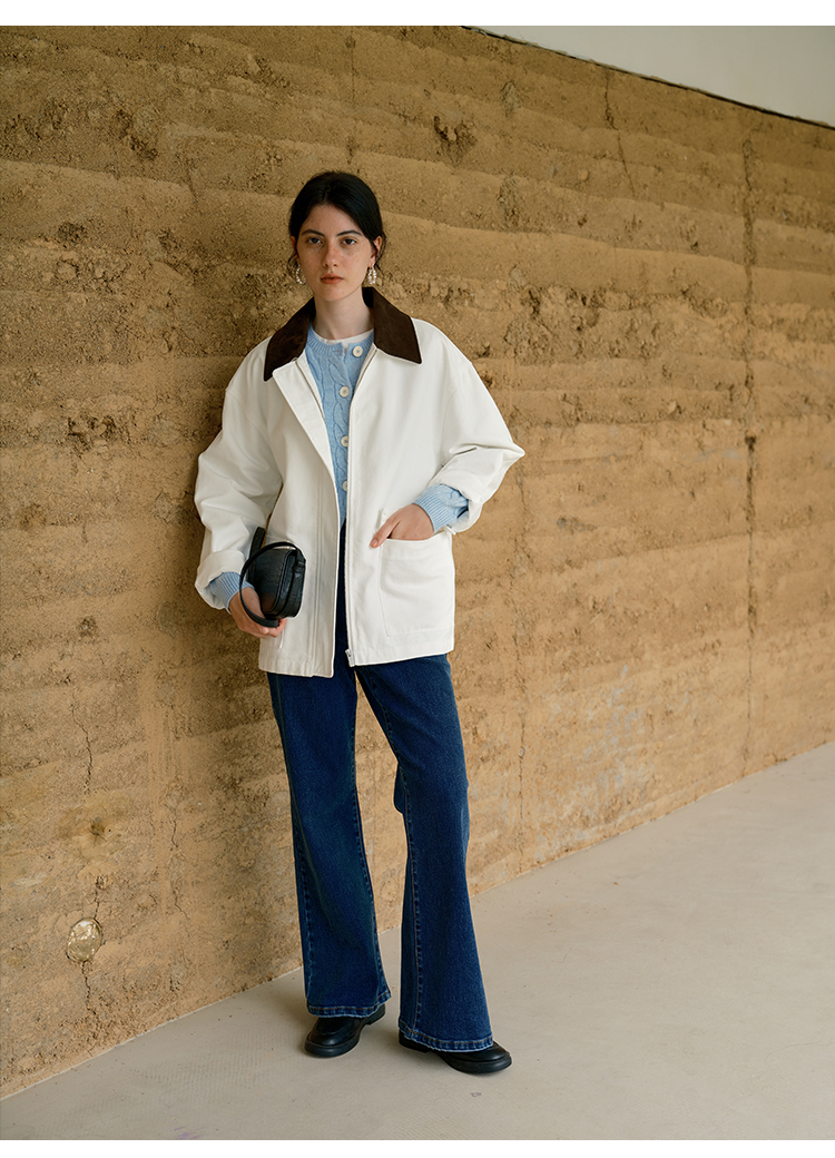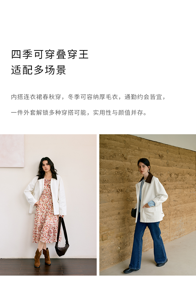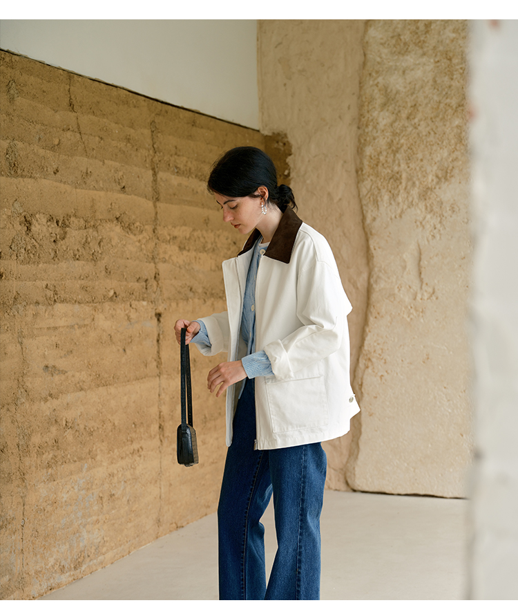 HeyDress巴恩风撞色翻领复古外套