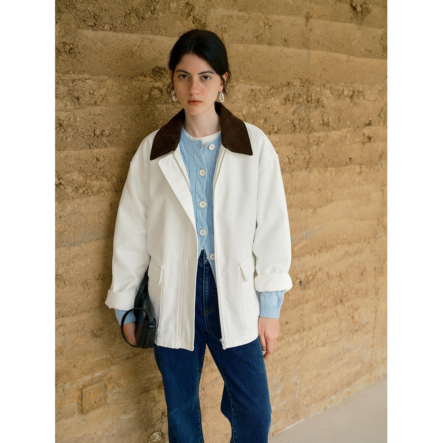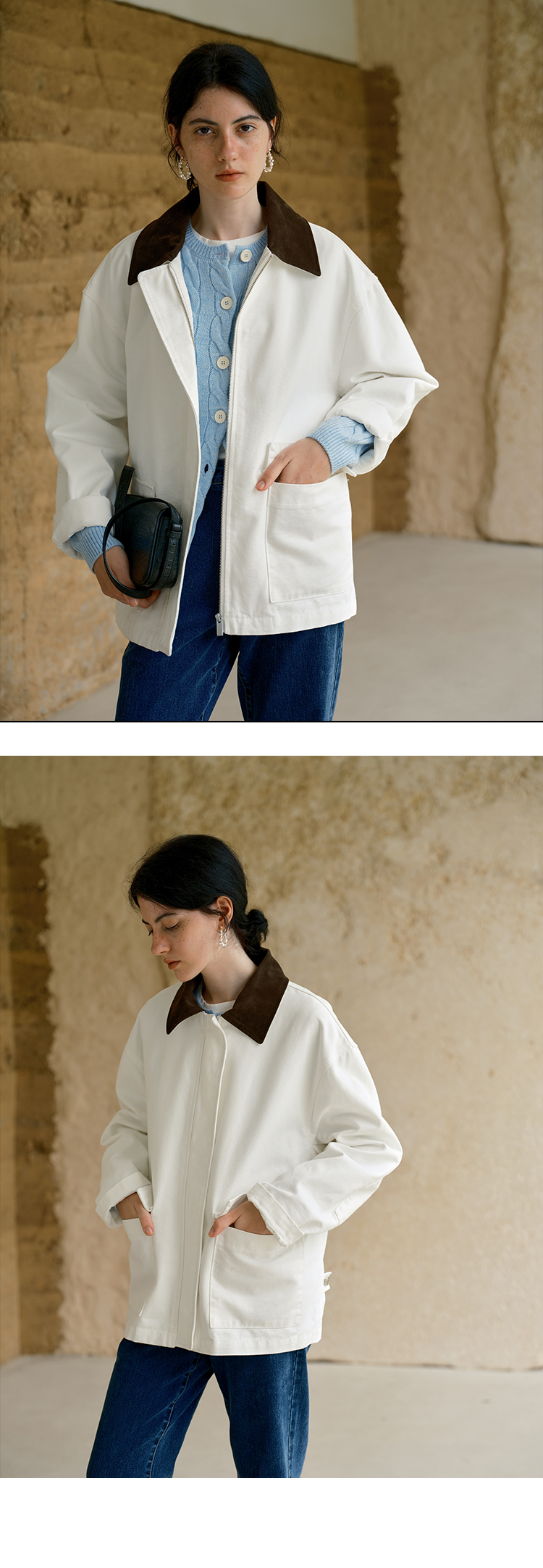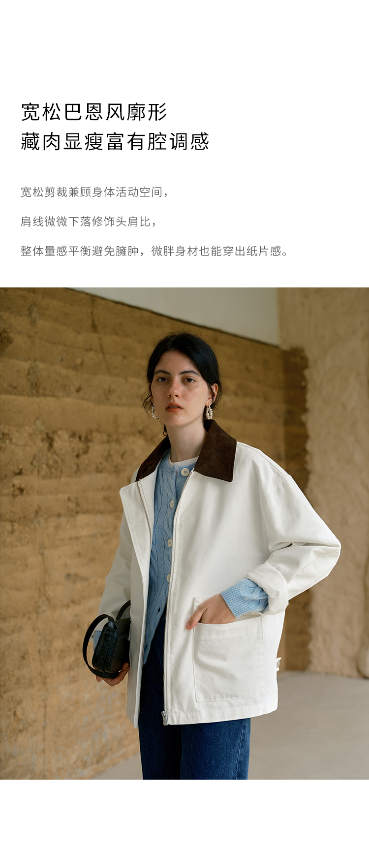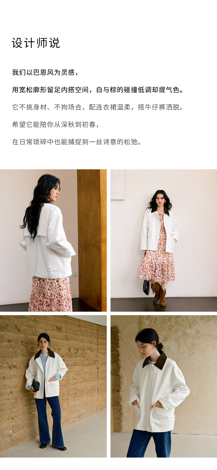 HeyDress巴恩风撞色翻领复古外套