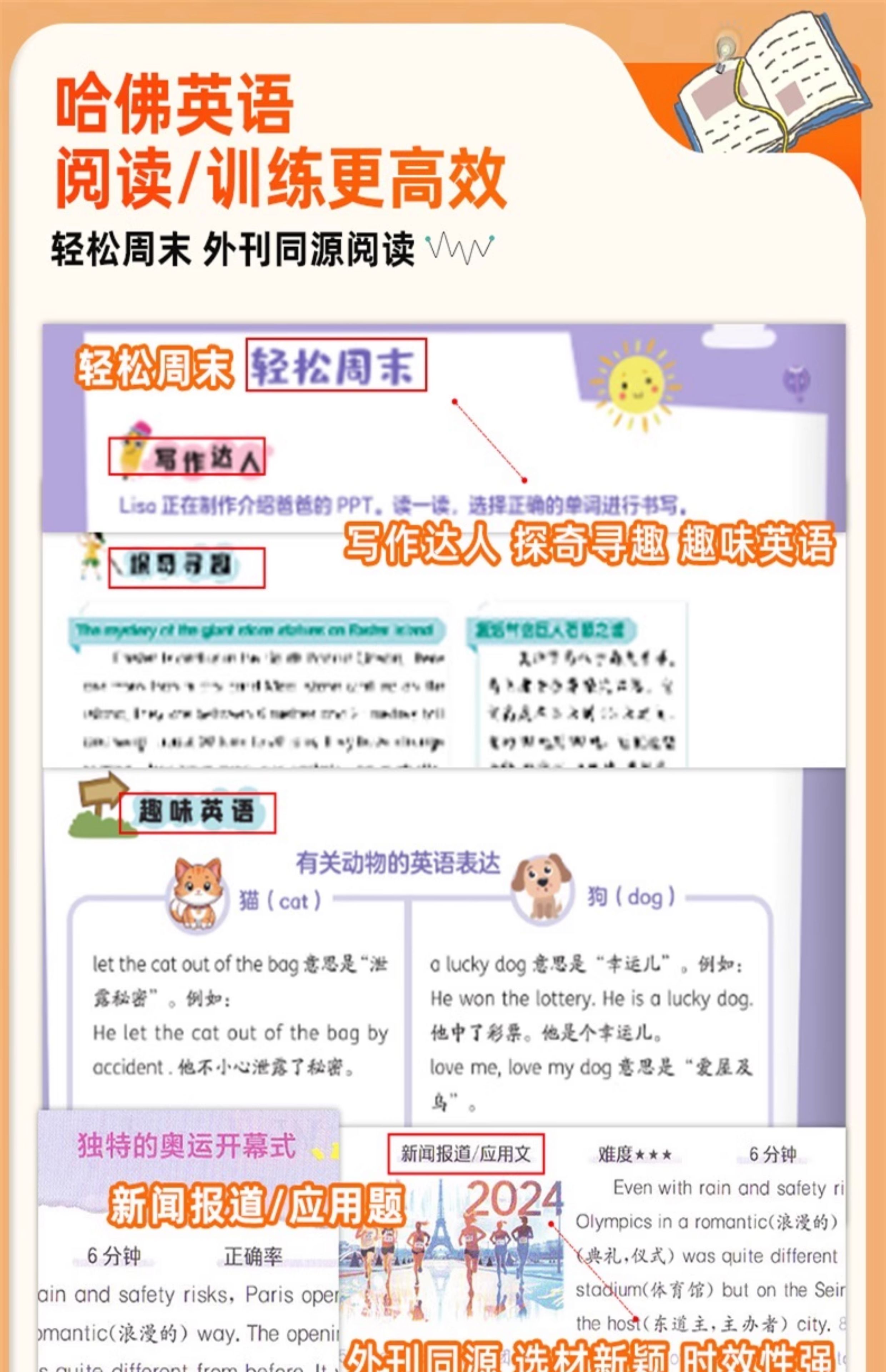 2025哈佛英语小学时文阅读第二辑小学三四五六年级小升初、传统文化与中国元素七八九年级时事热点话题阅读理解
