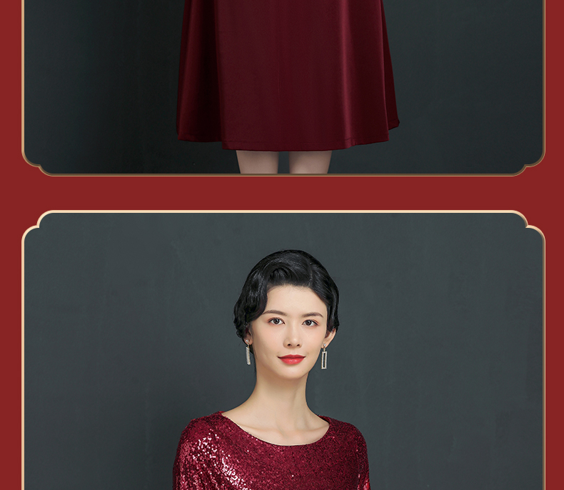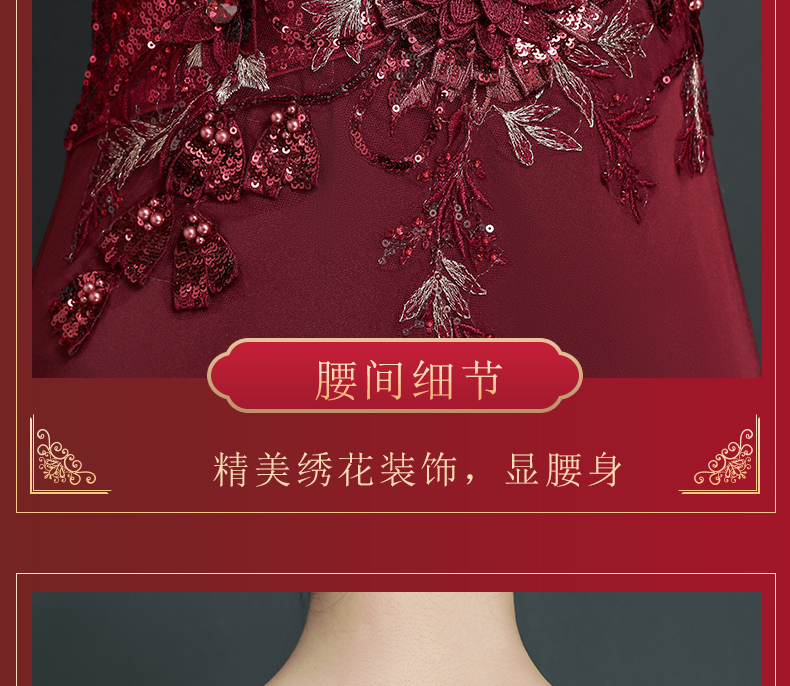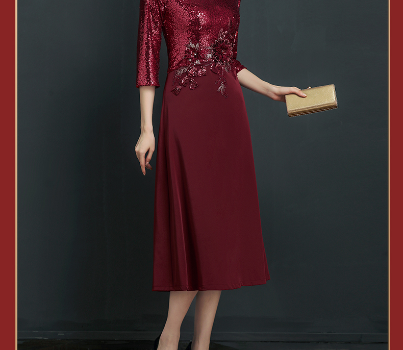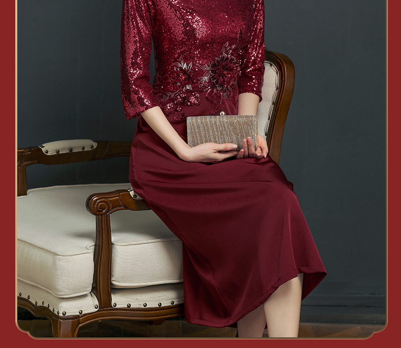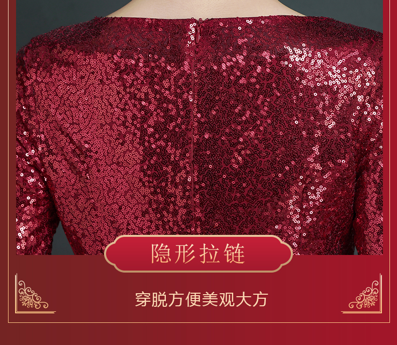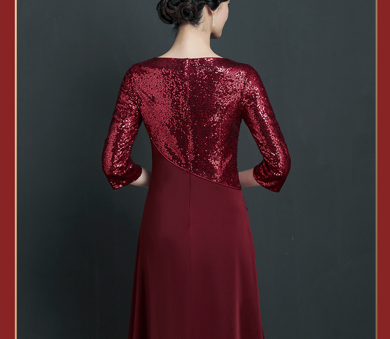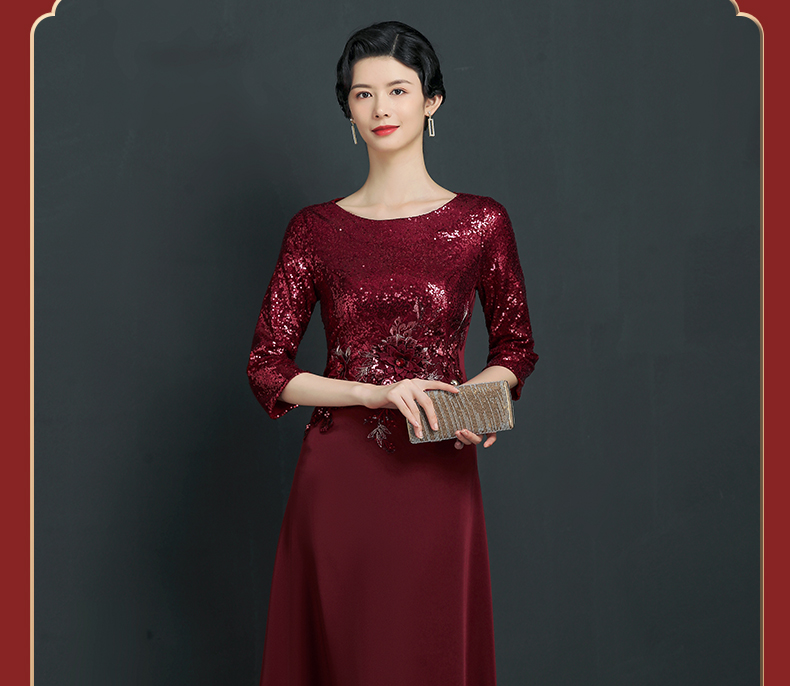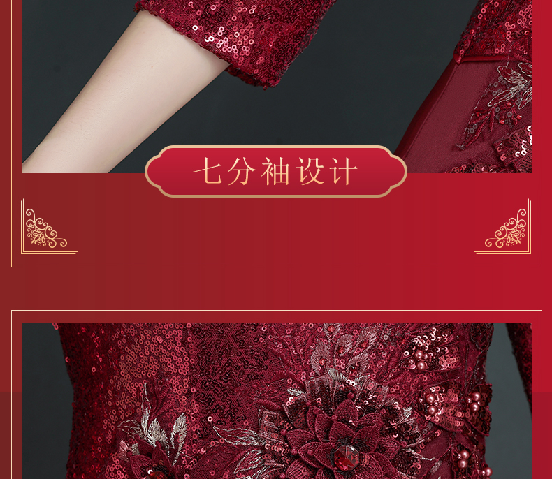 上海旗袍厂NBL-NZ311婚礼旗袍连衣裙七分袖婚庆宴会穿婚宴奥黛礼服高贵春秋