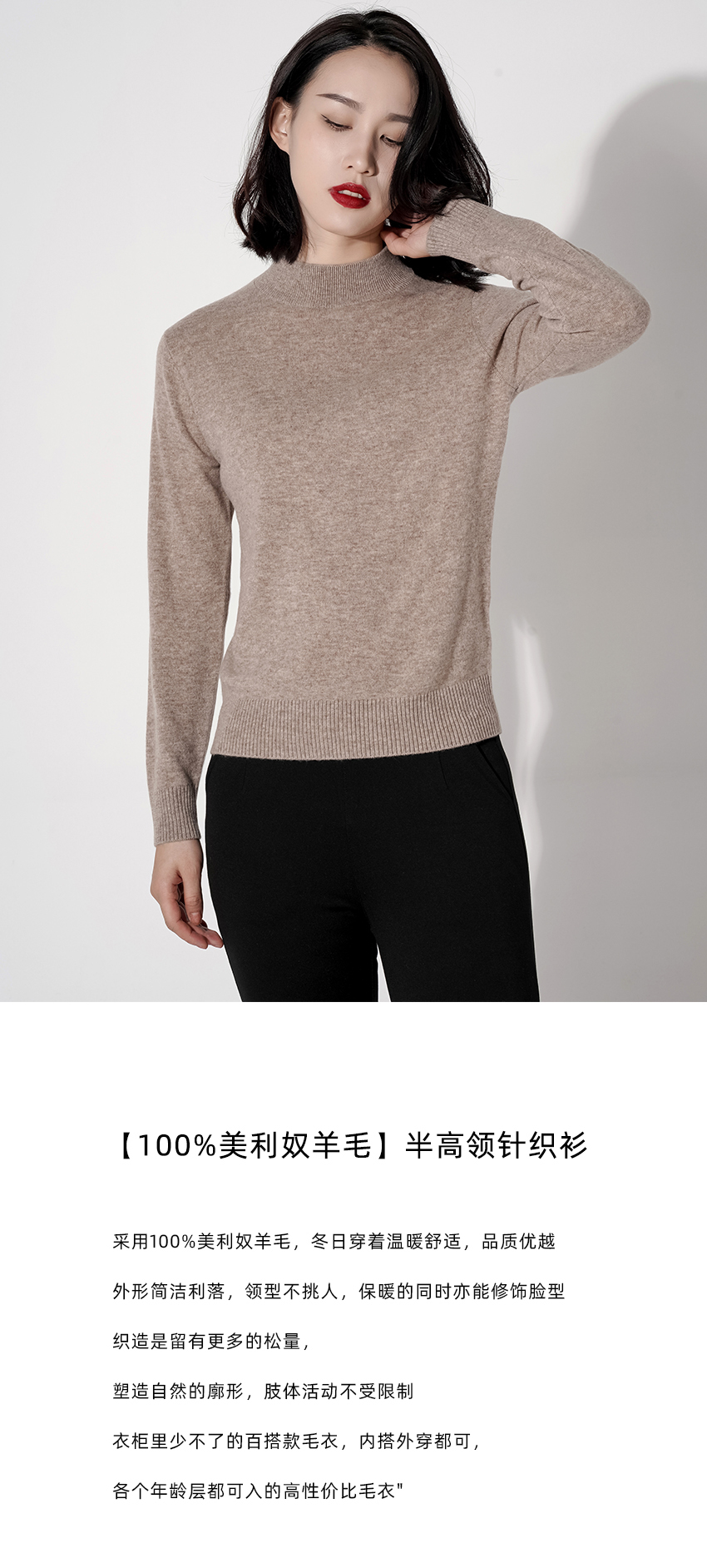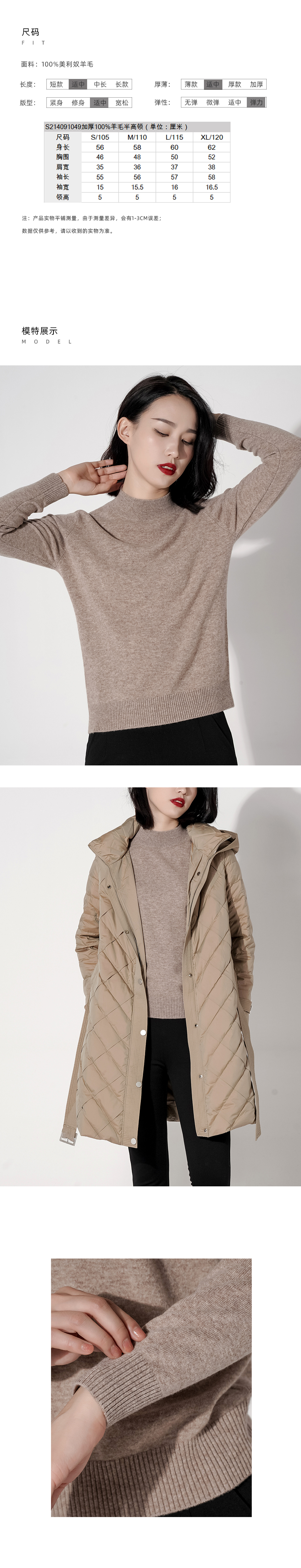 臣禾【100%美利奴羊毛】加厚【半高领】纯色针织衫 S214091049【多彩针织系列】现货