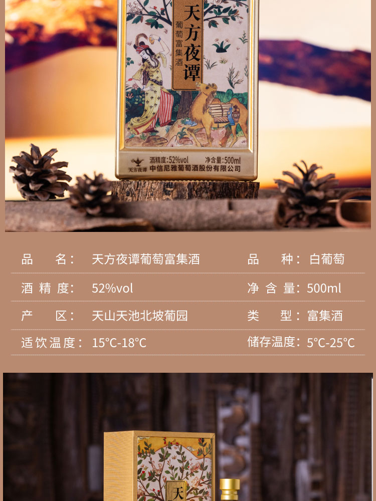 中信尼雅·天方夜谭葡萄富集酒52度 500ml(盒装) 精选酿酒葡萄 无外源水添加