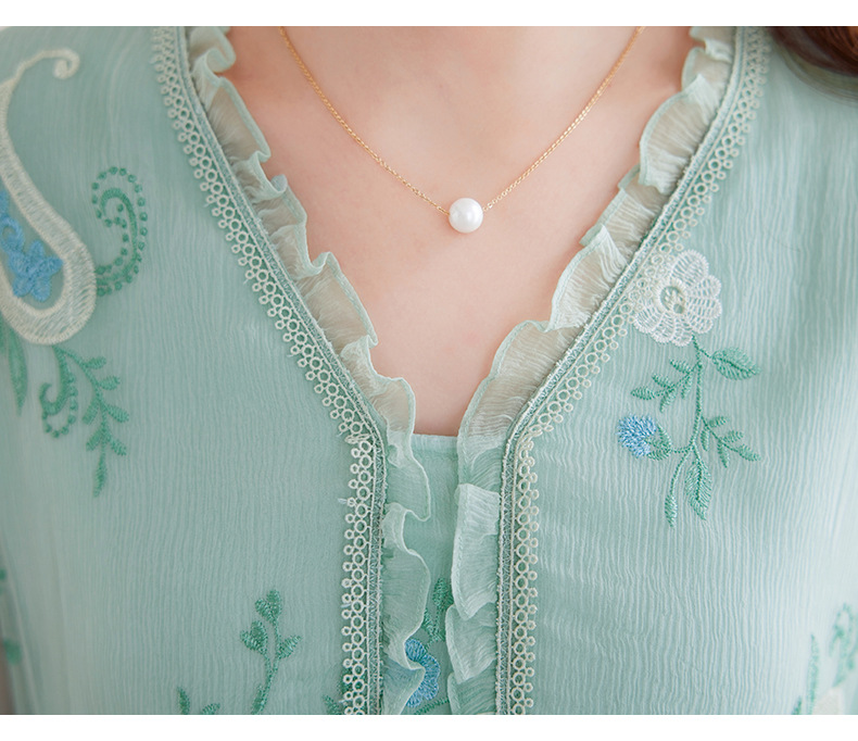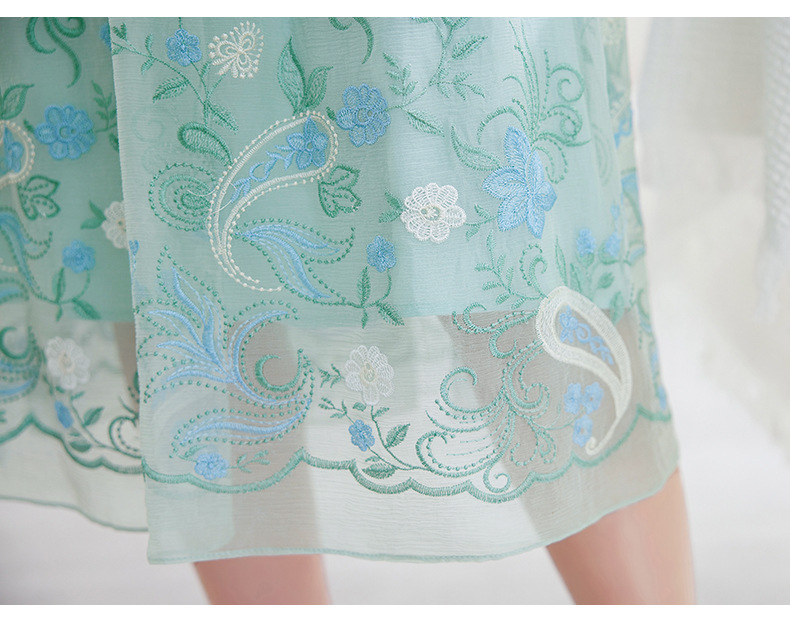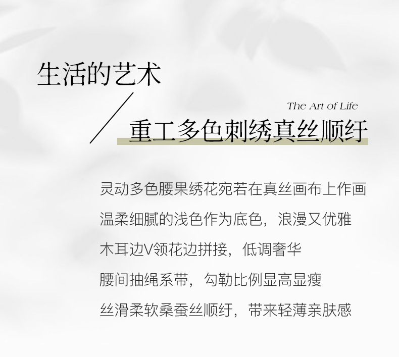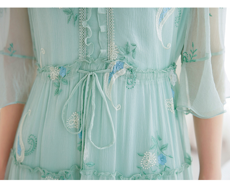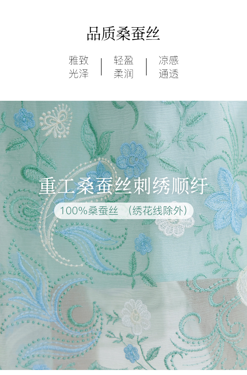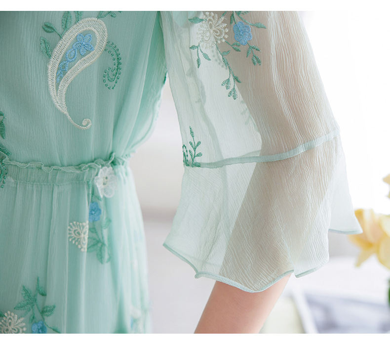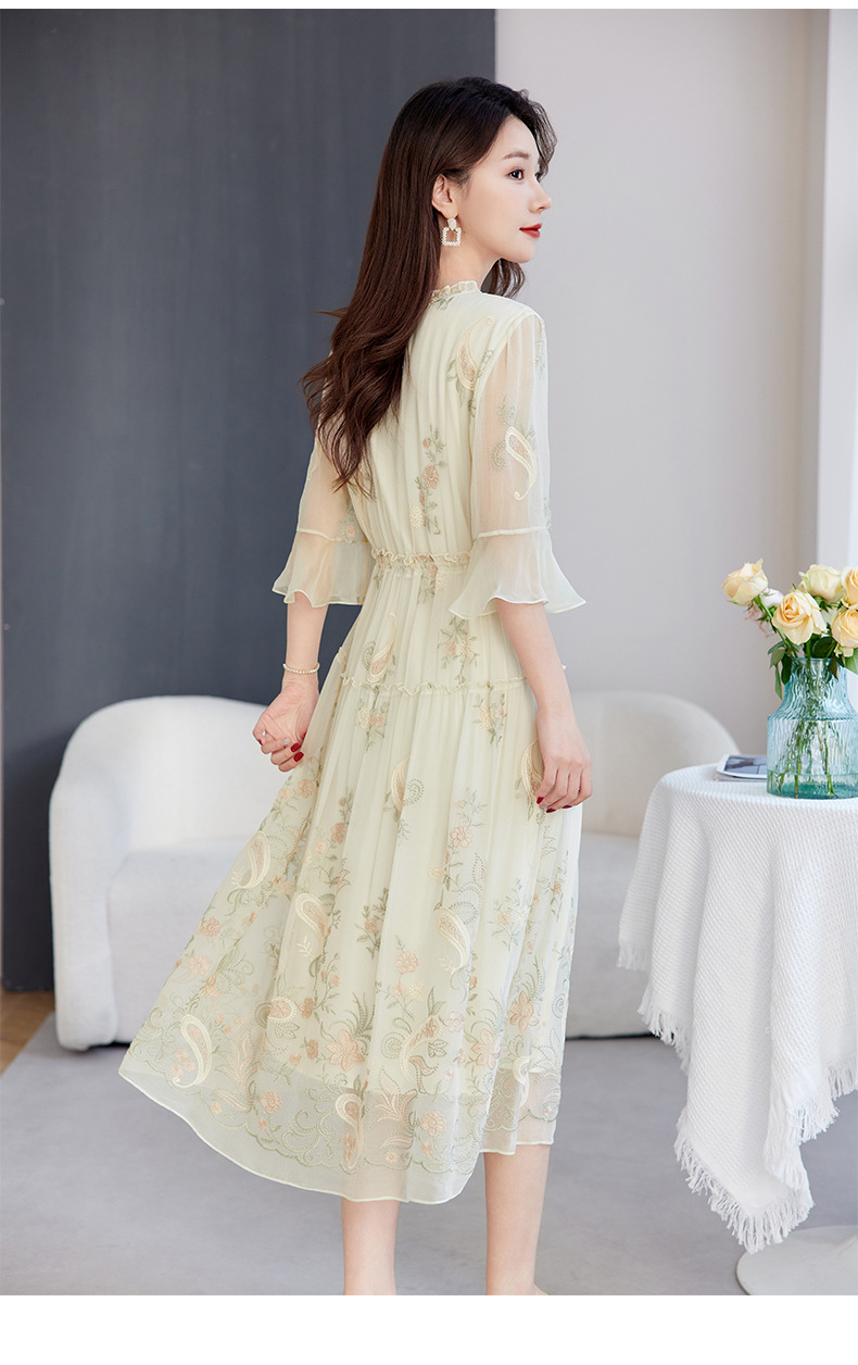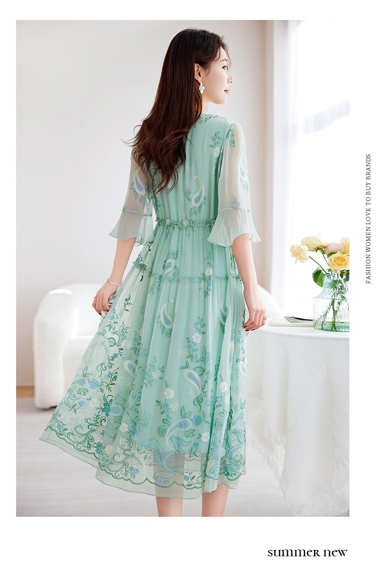QS-82599168丝韵天香 真丝源头工厂 桑蚕丝连衣裙宽松中大淑绣花连衣裙女9168
