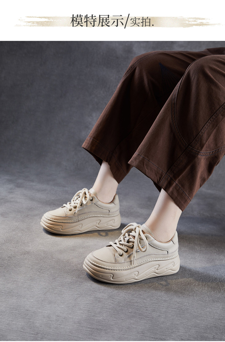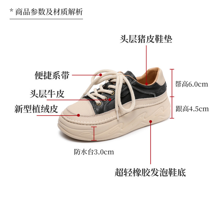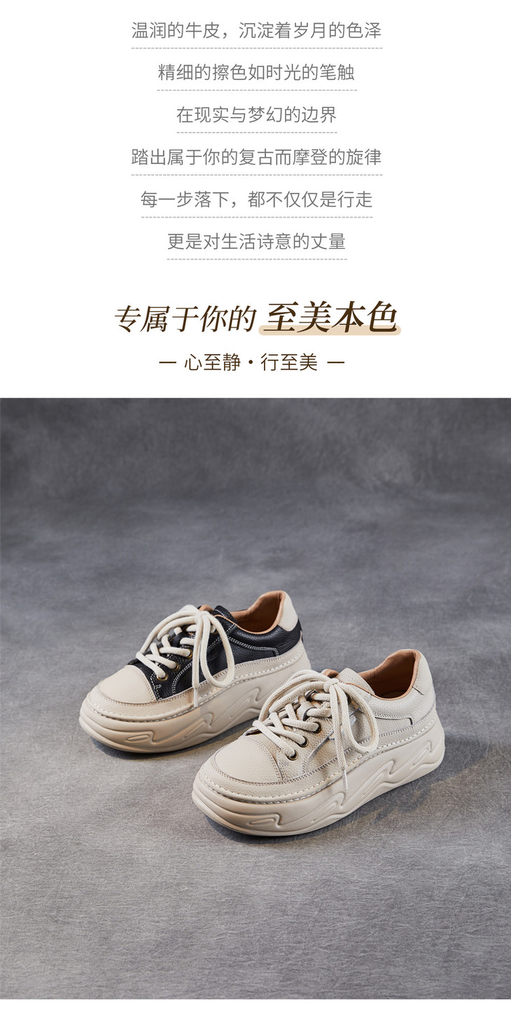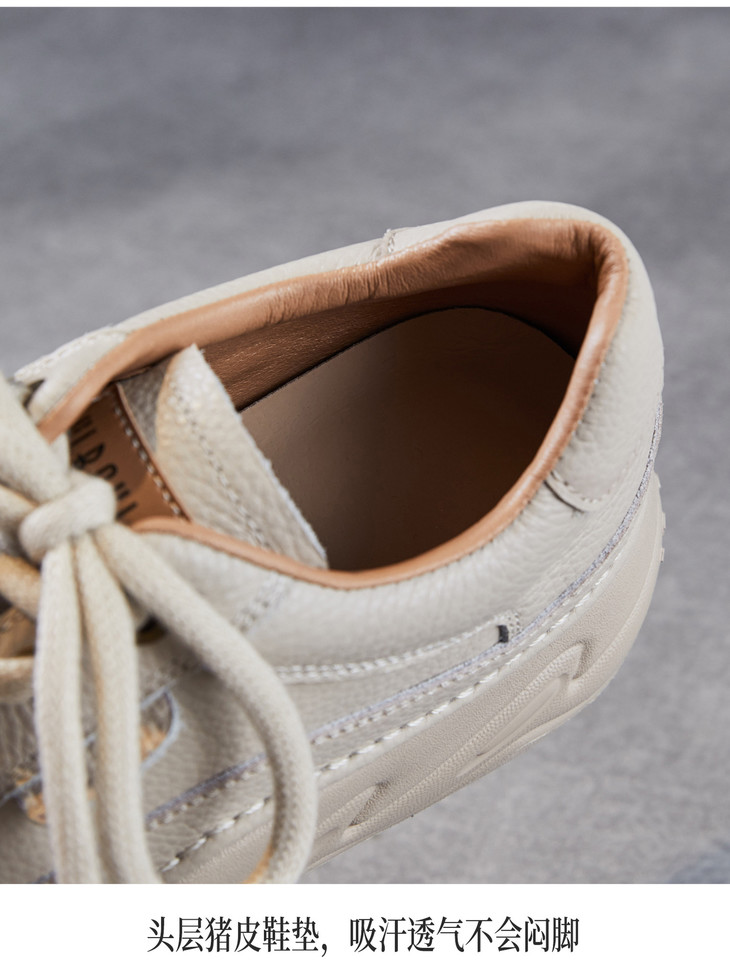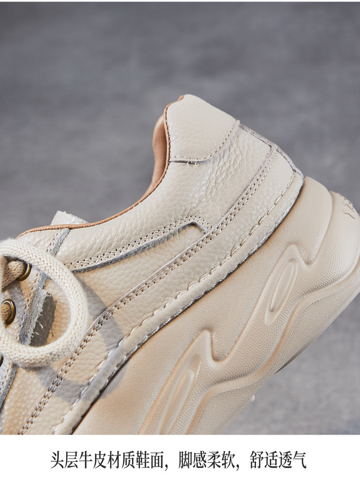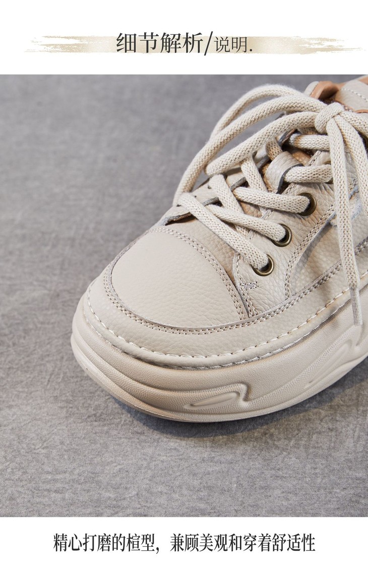 真皮厚底增高面包鞋,透气舒适板鞋系带休闲运动小白鞋ZM258612