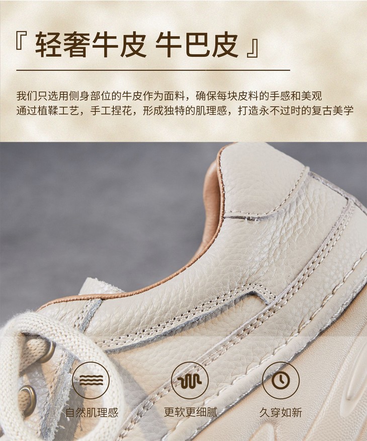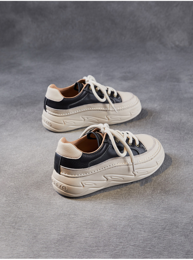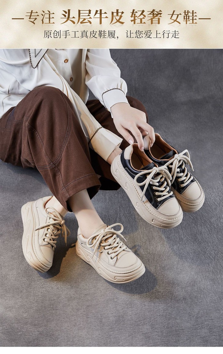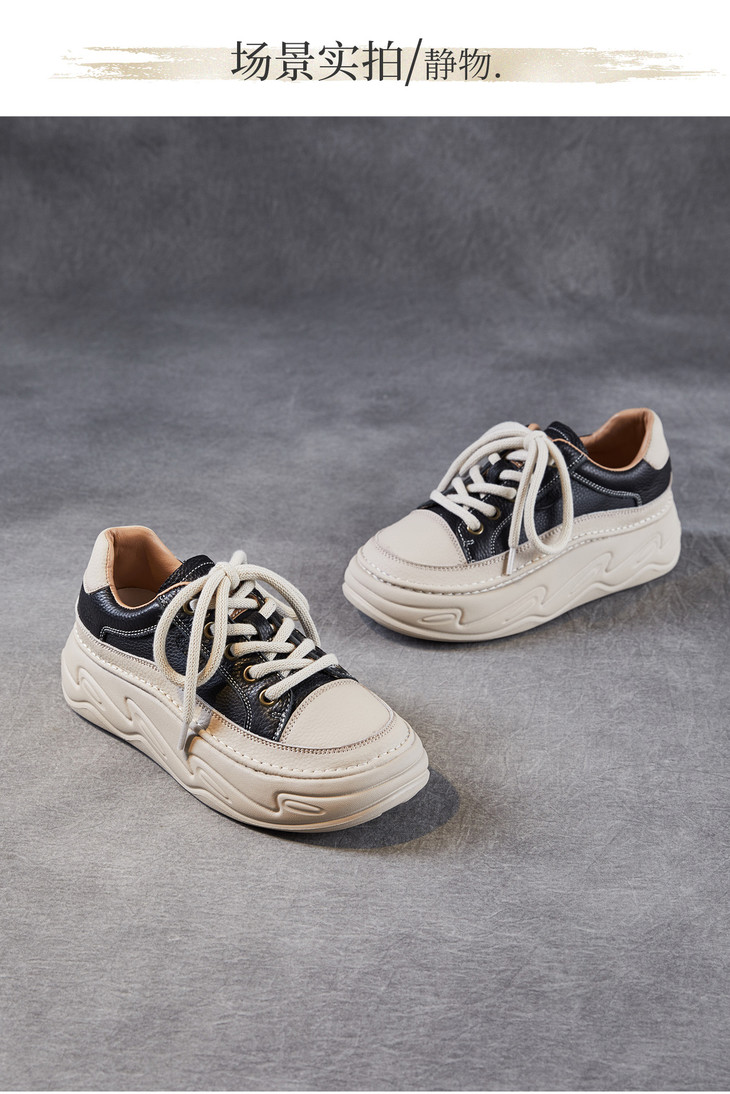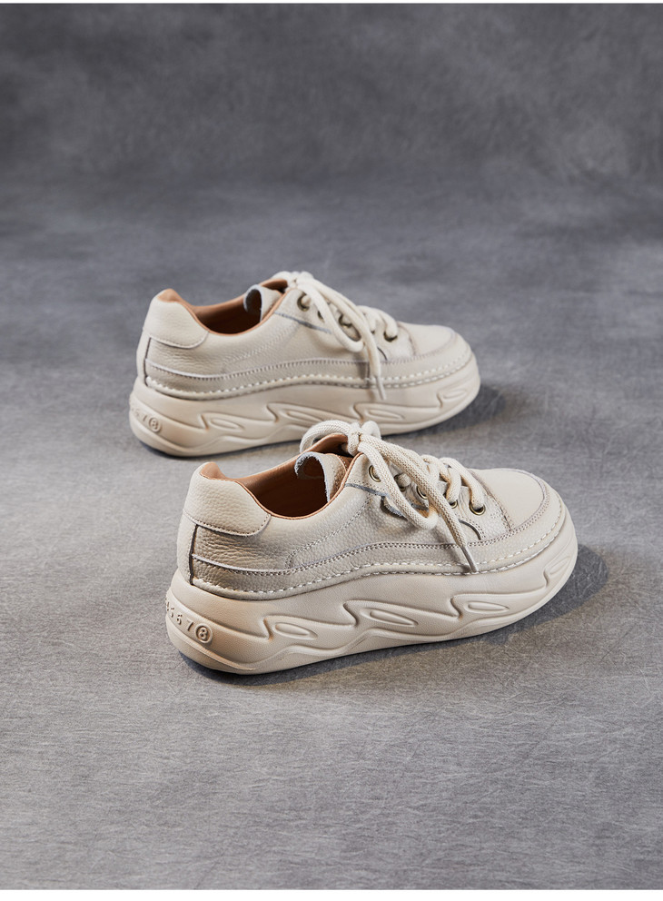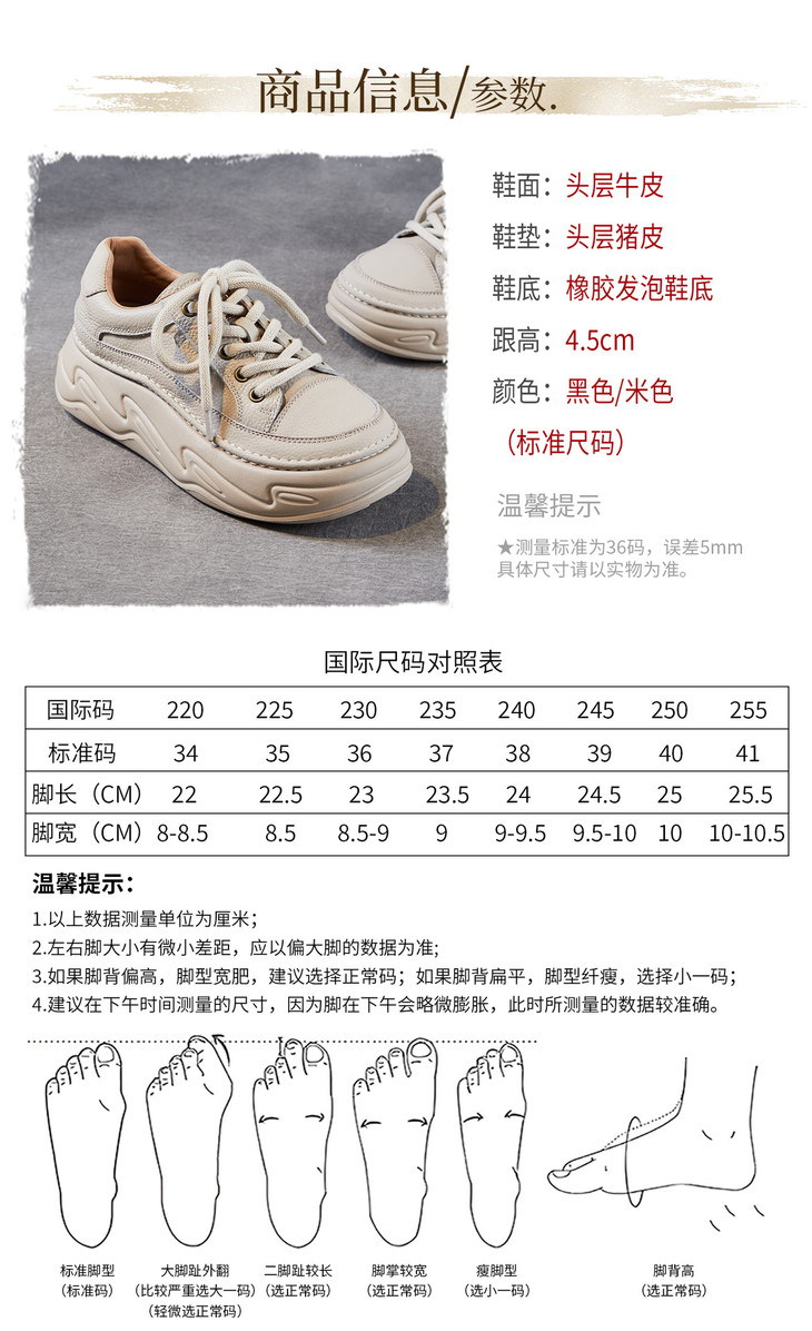 真皮厚底增高面包鞋,透气舒适板鞋系带休闲运动小白鞋ZM258612