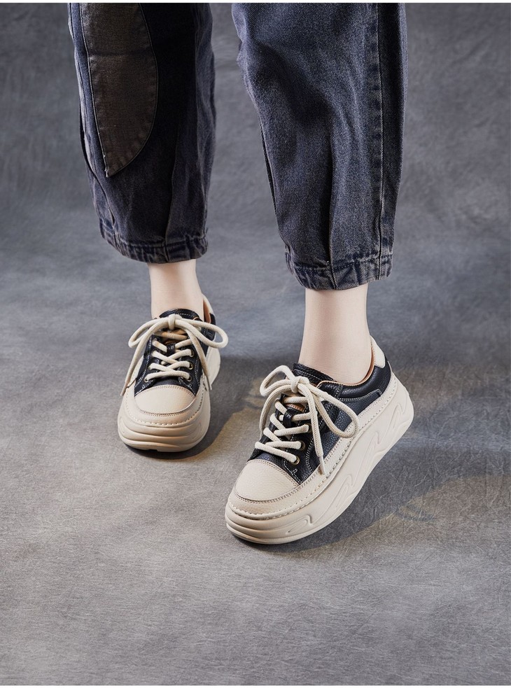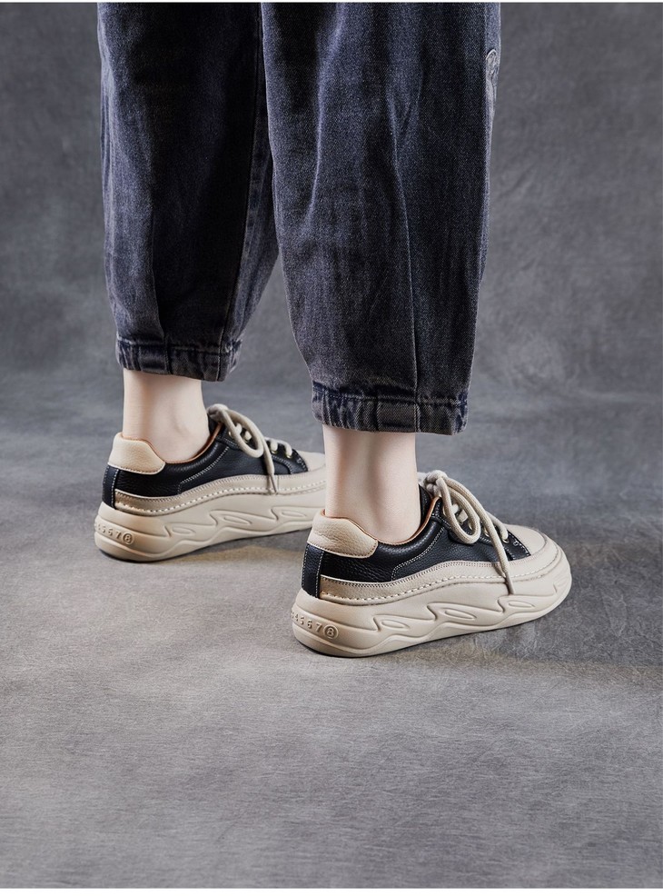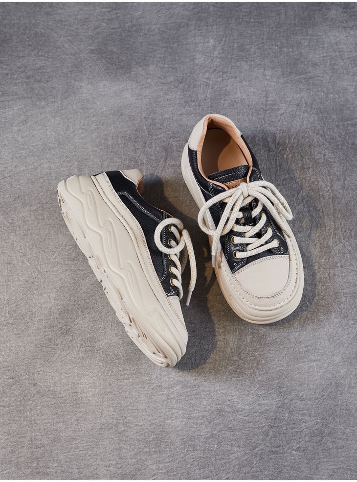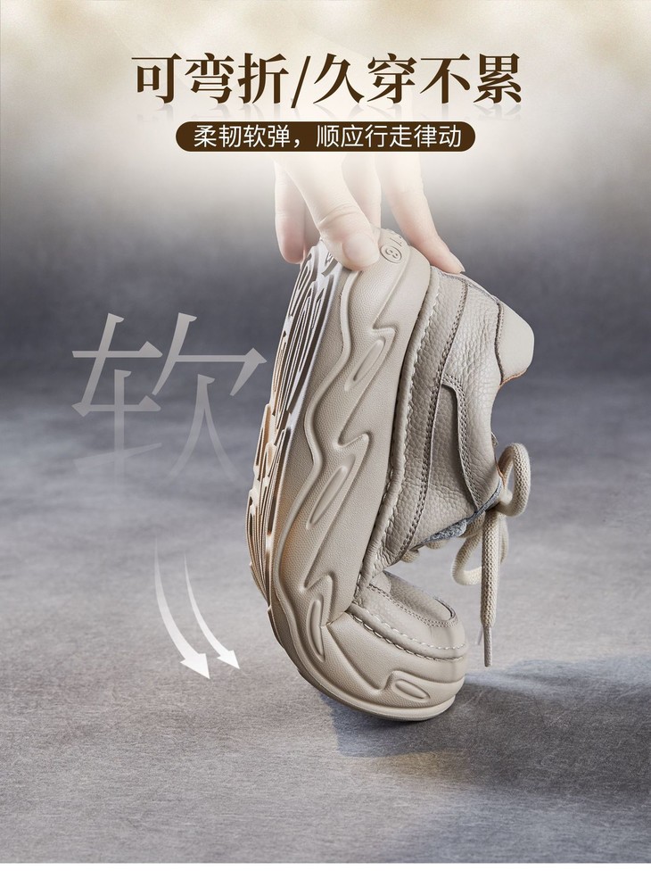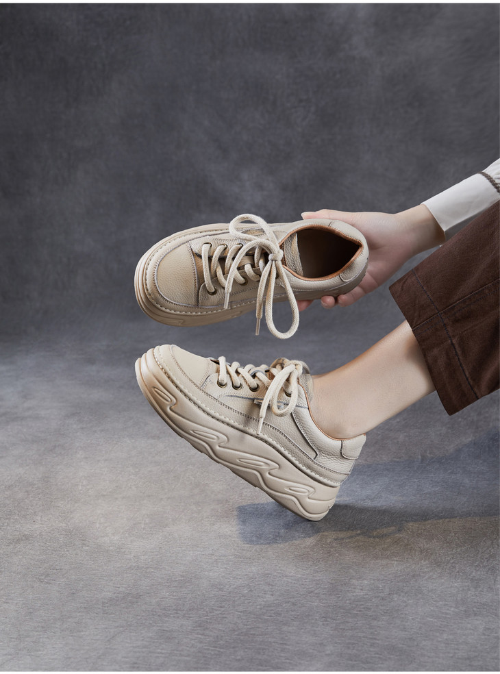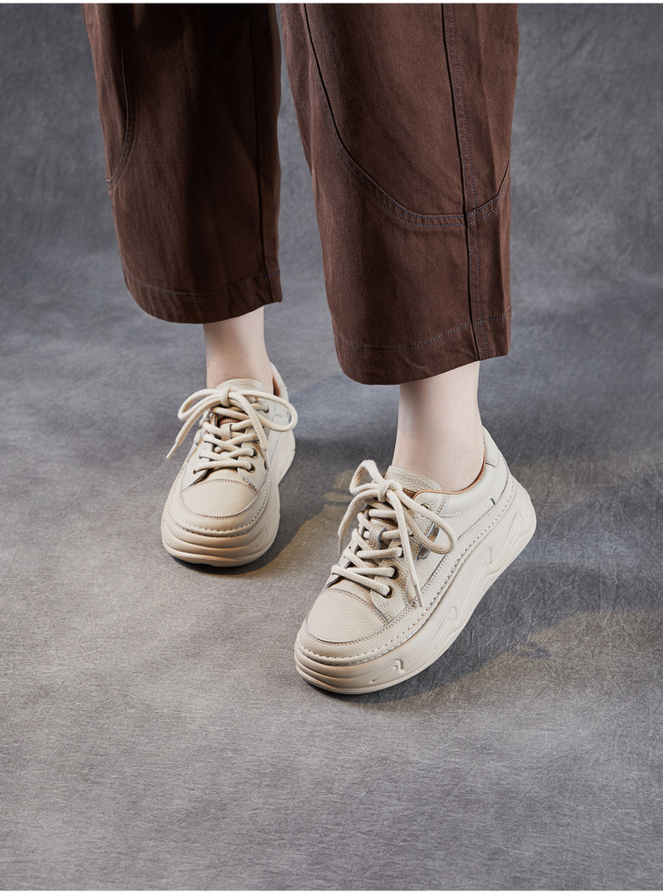 真皮厚底增高面包鞋,透气舒适板鞋系带休闲运动小白鞋ZM258612