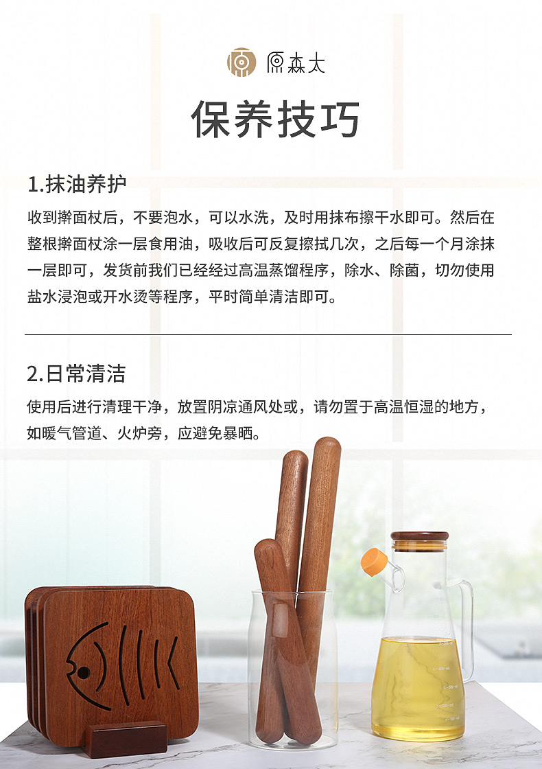3,面杖表面光滑无毛刺,不上漆蜡不打蜡,防霉防开裂更不易形,经久耐用,日常使用更安心