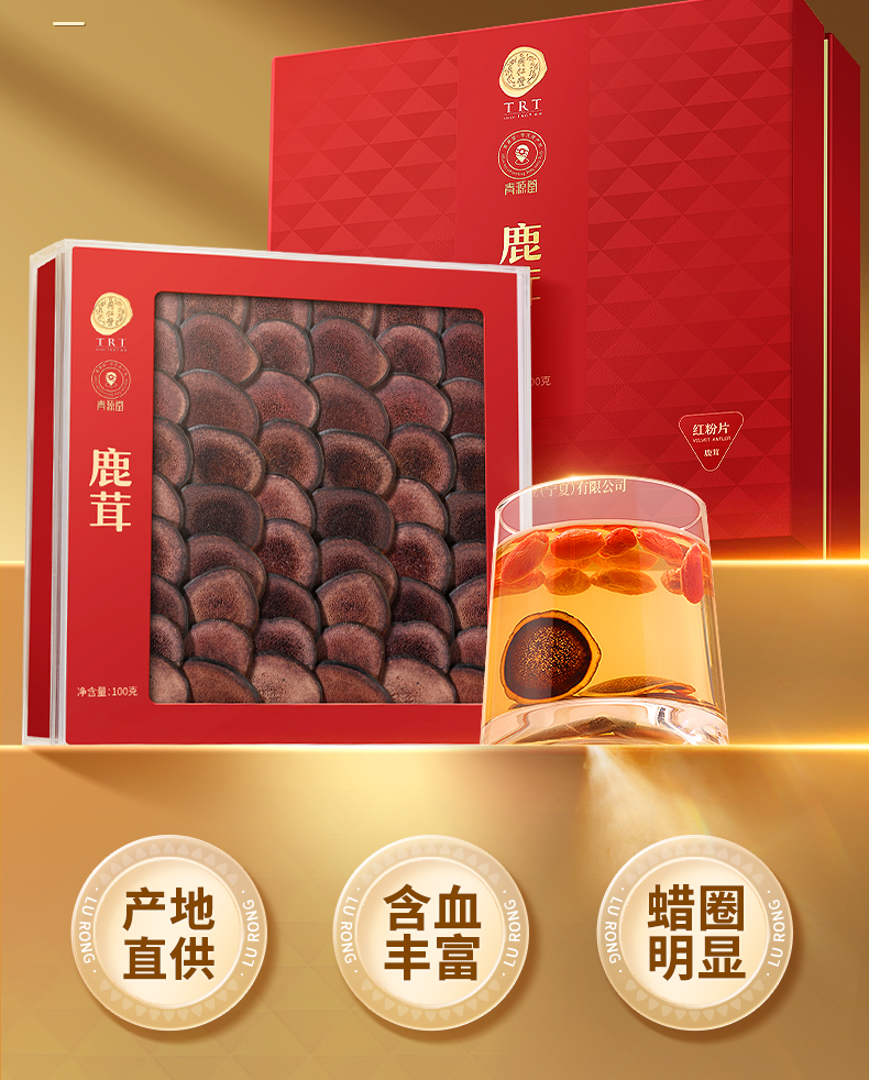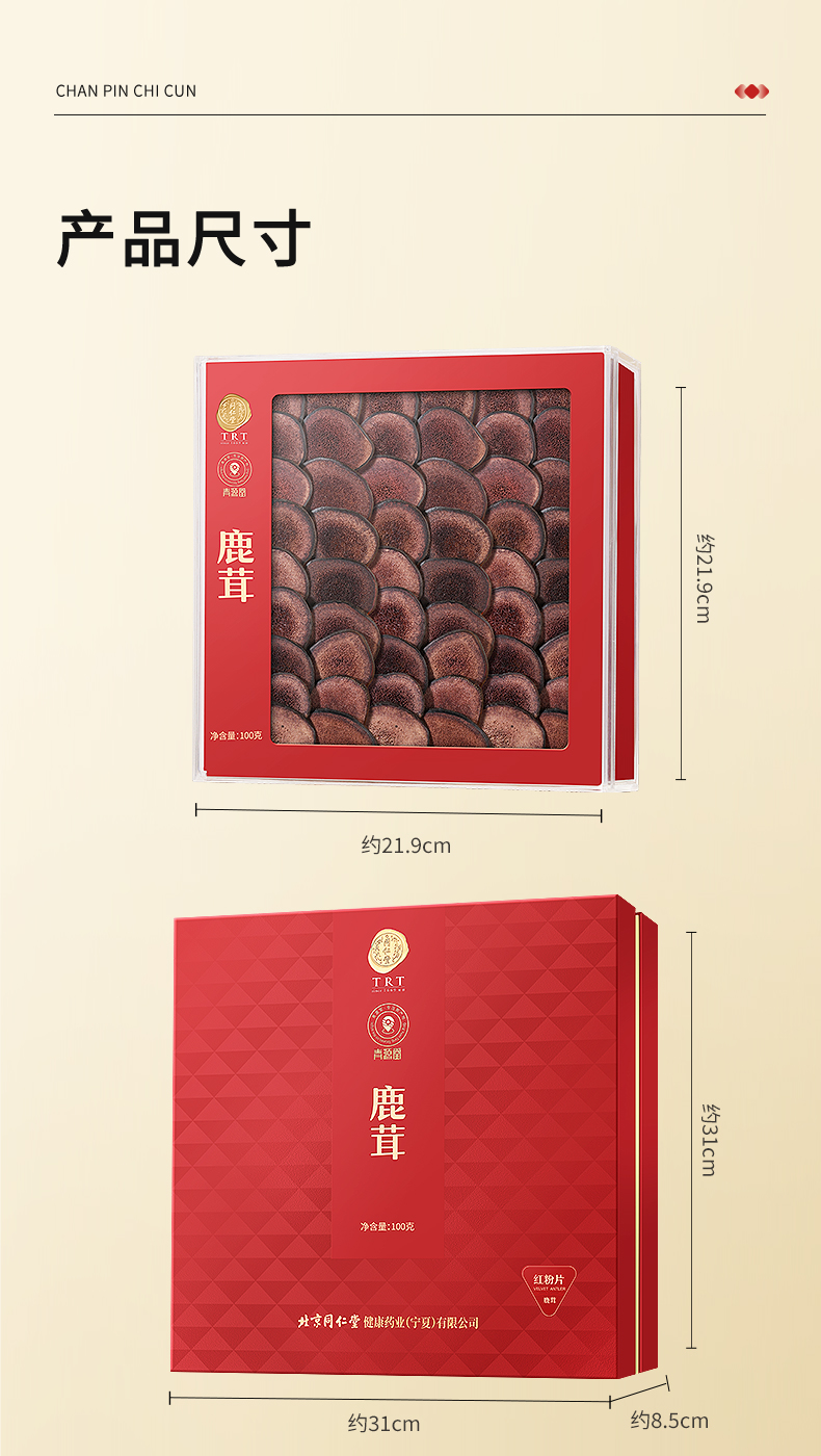 【正宗同仁堂品牌】北京同仁堂 青源堂 鹿茸红粉片100克礼盒装 红粉大片 薄厚均匀SY