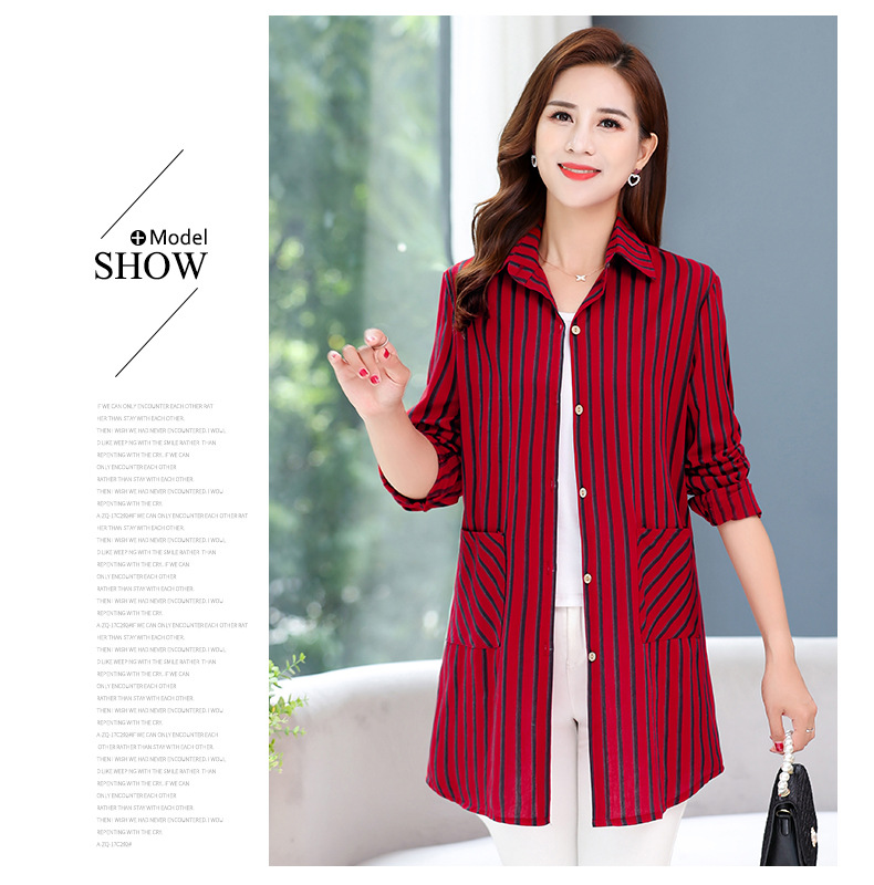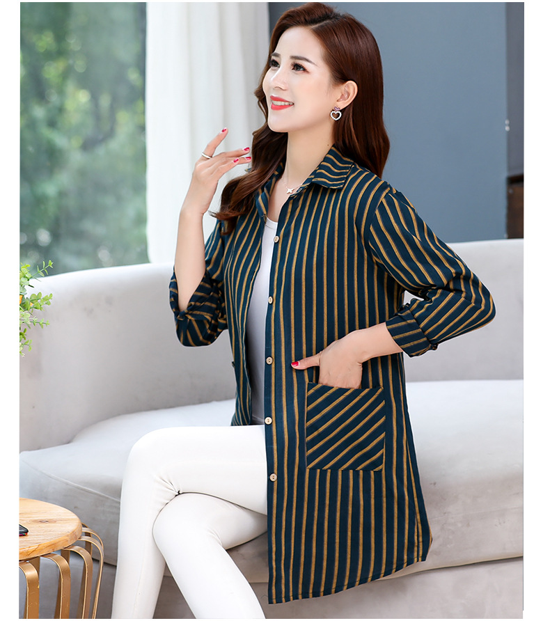 MQ-1822-212新款春秋外穿百搭宽松夏季薄纯棉条纹上衣ZXH