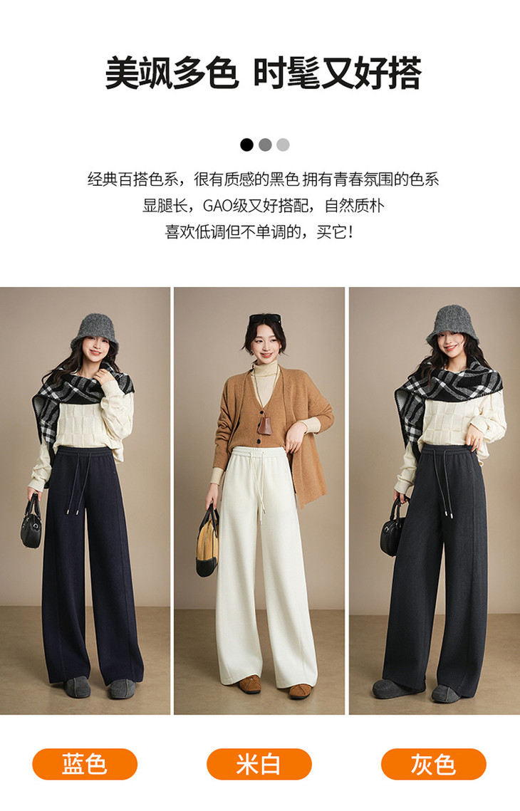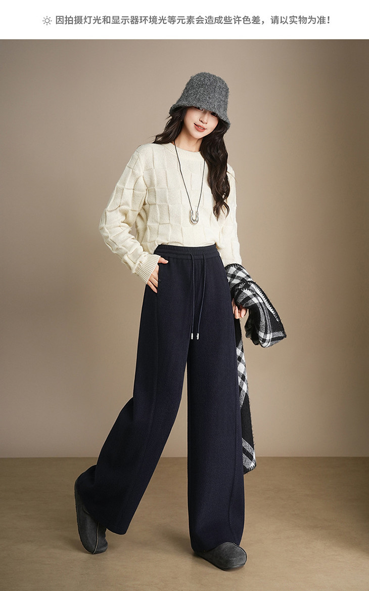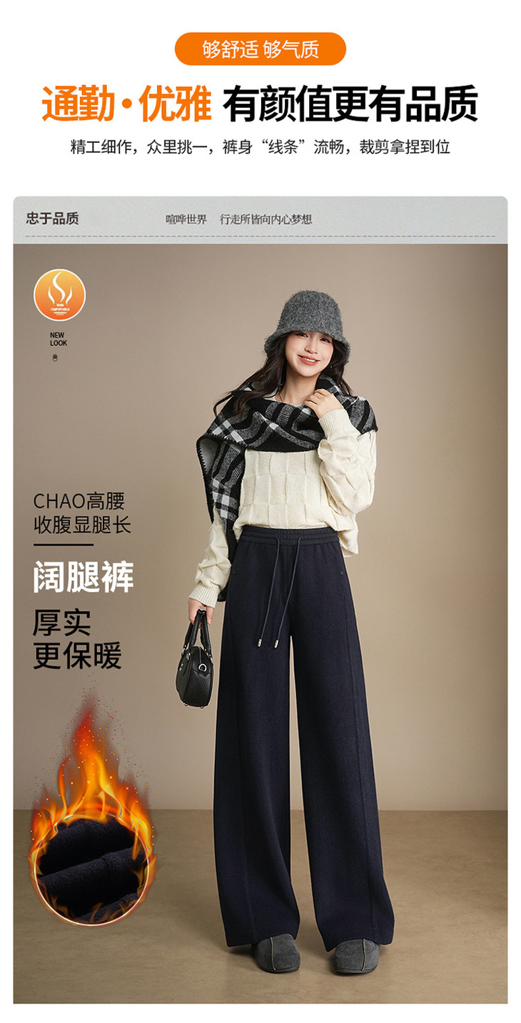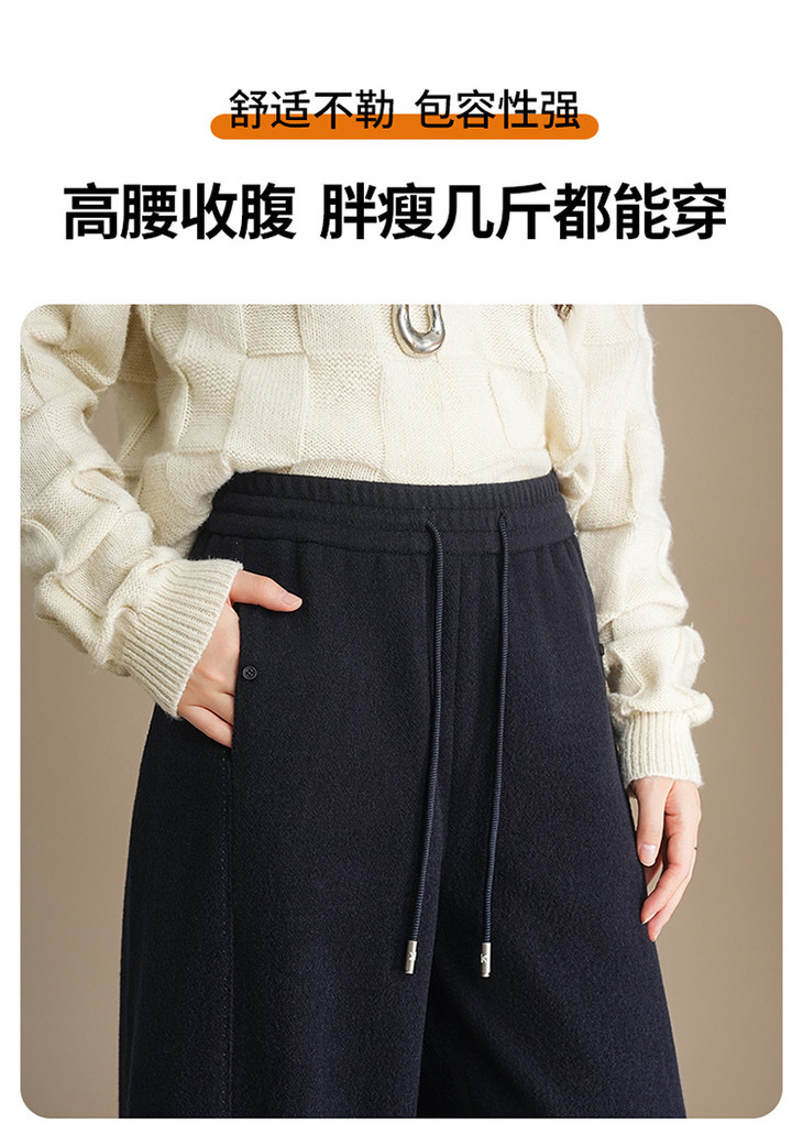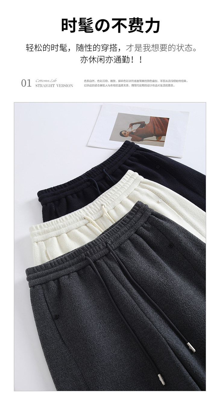 松紧腰加绒加厚休闲长裤,垂坠感遮胯宽松直筒裤阔腿裤MYX-KDFY-72917-L