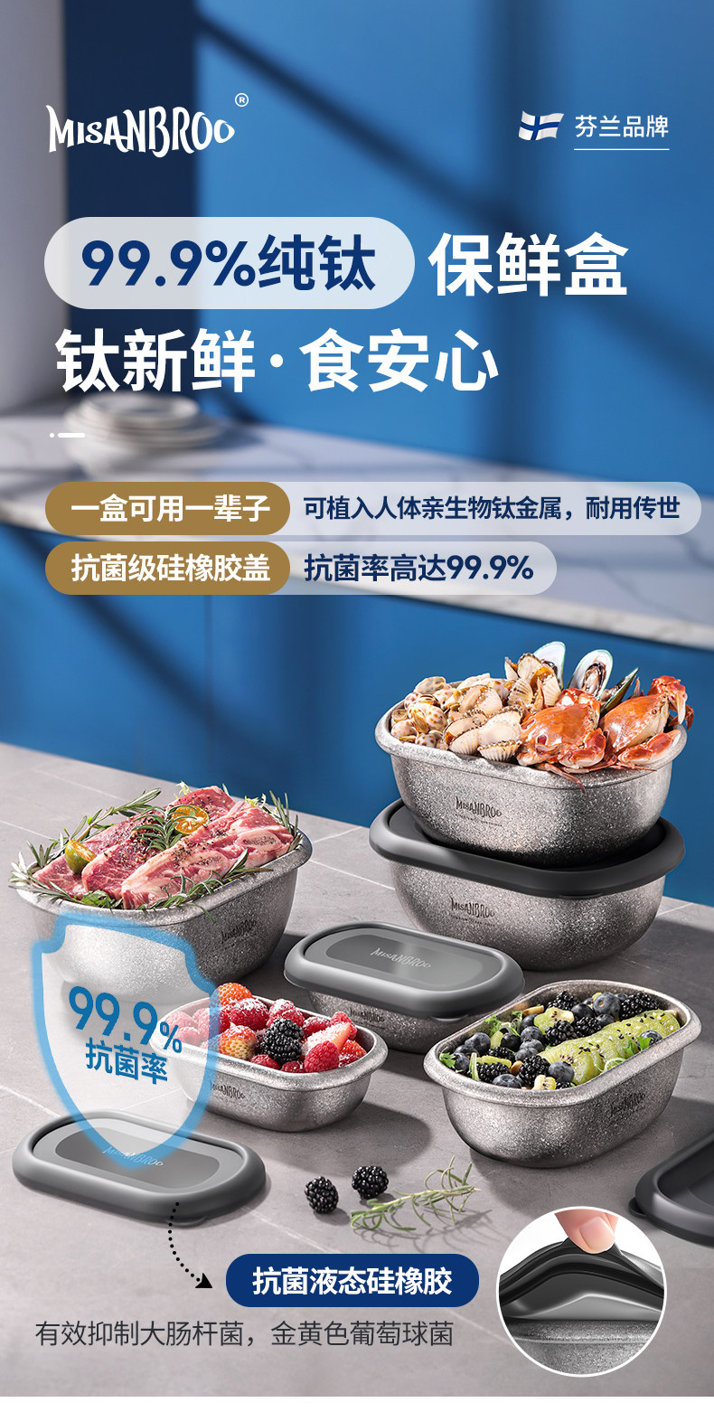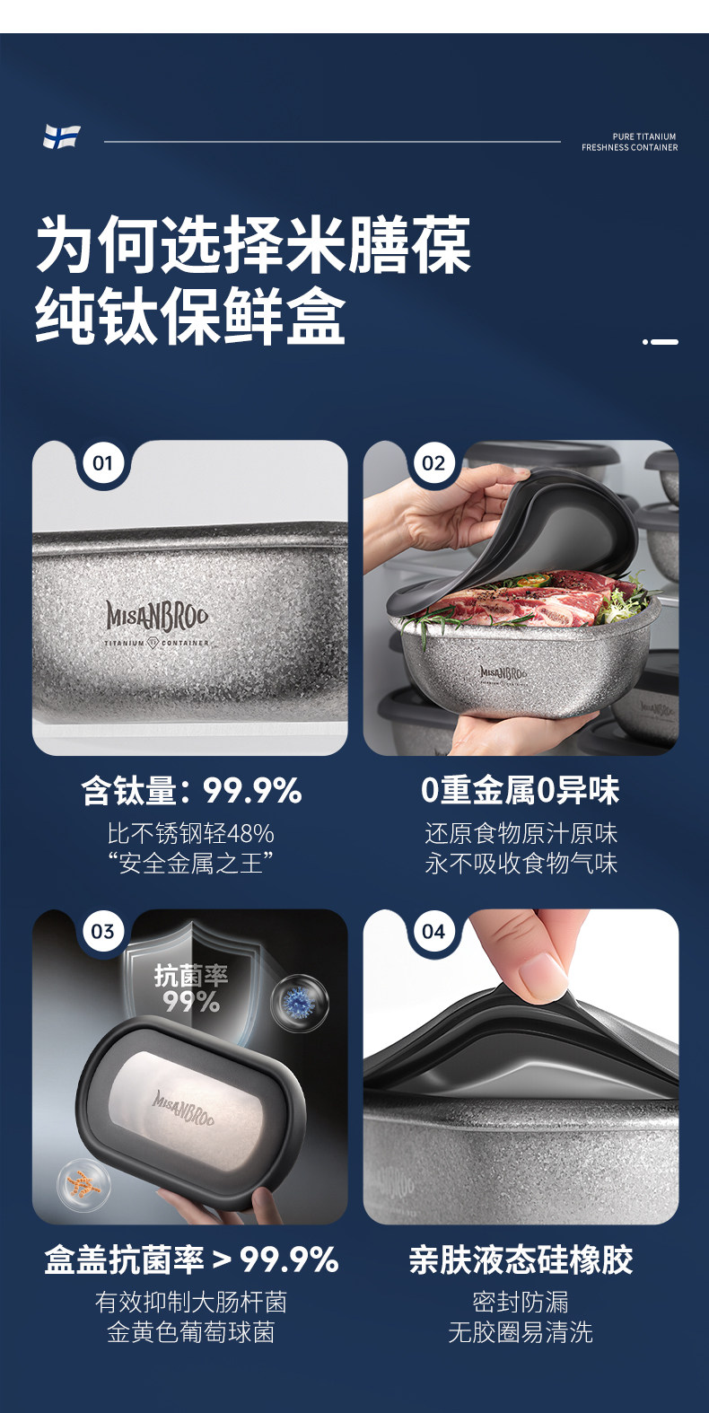 芬兰MISANBROO米膳葆99.9%纯钛保鲜盒