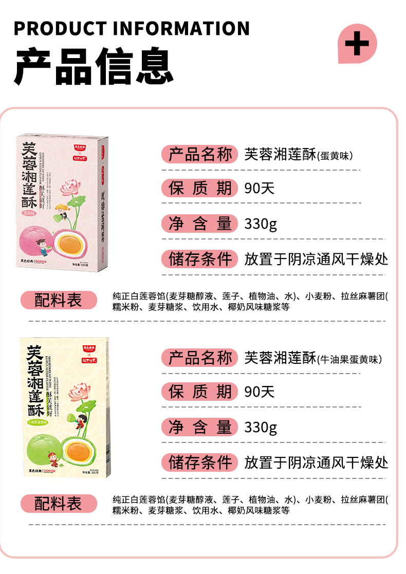 超吉心意芙蓉湘莲酥(蛋黄味/牛油果味)330g/盒 甜酥不腻 下午茶零食