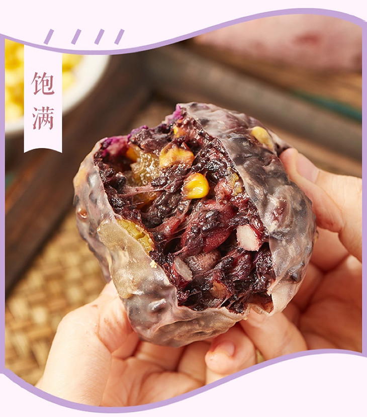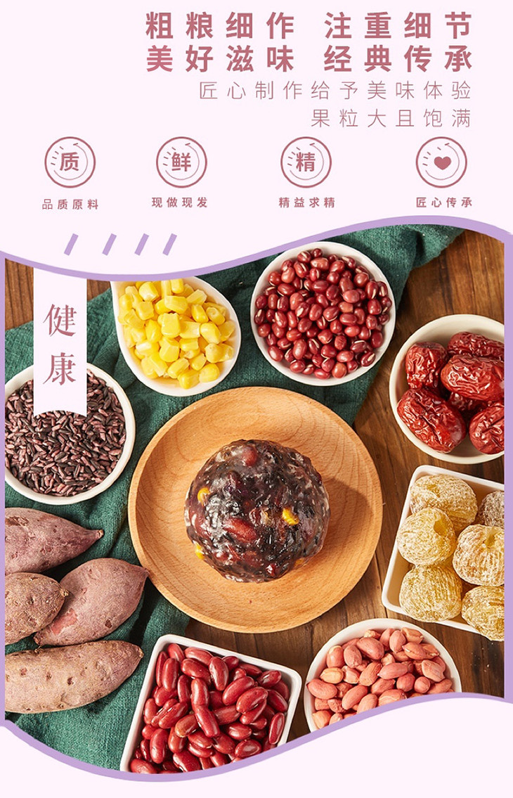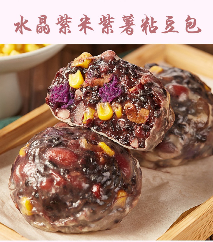 1、规格:经典与紫薯粘豆包,单袋500g,4个装/袋;彩色粘豆包娇小,单袋400g,4个装/袋。