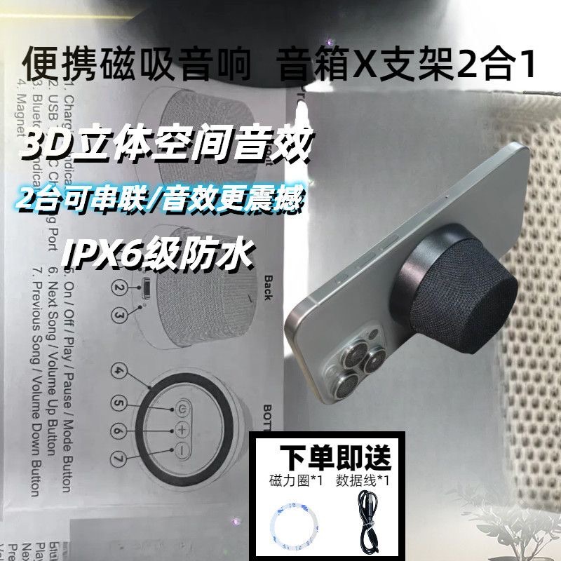 磁吸蓝牙音箱二合一,一贴一吸,即是音箱也是支架,你的随身音乐厅