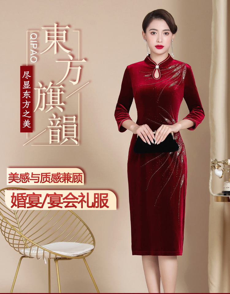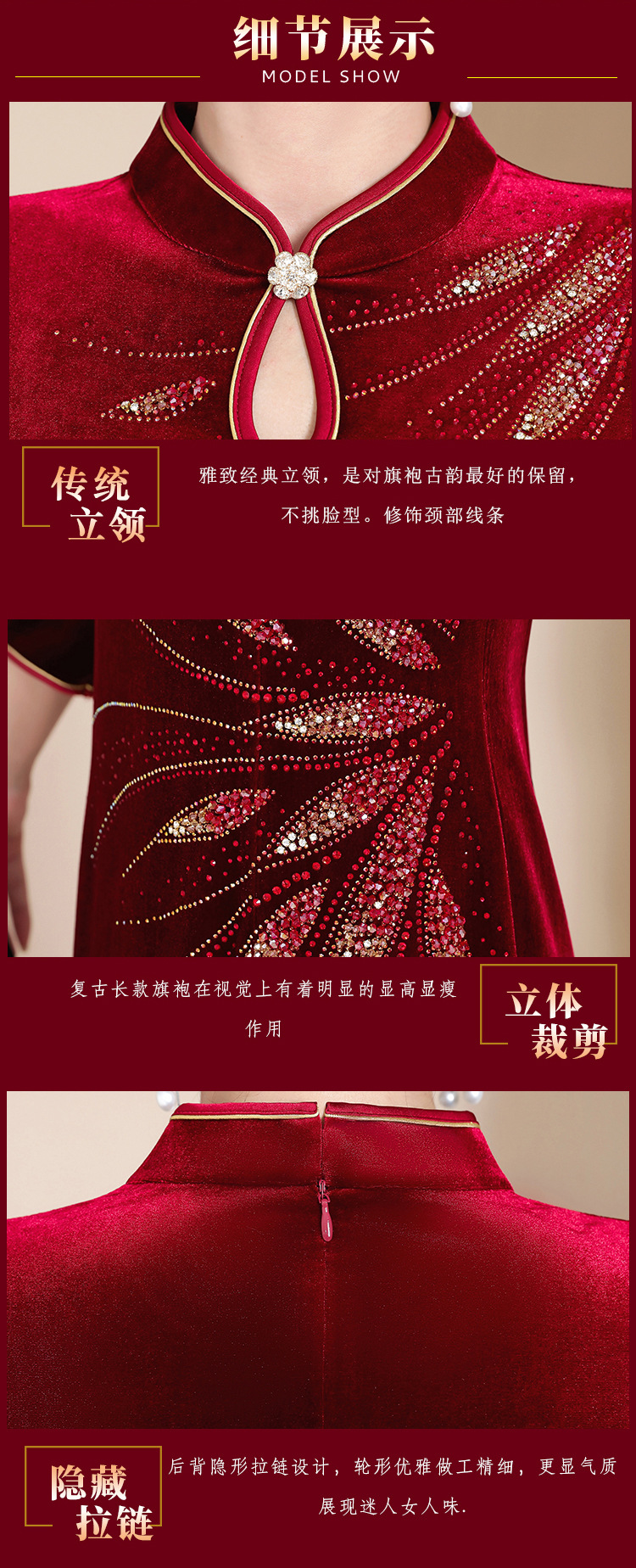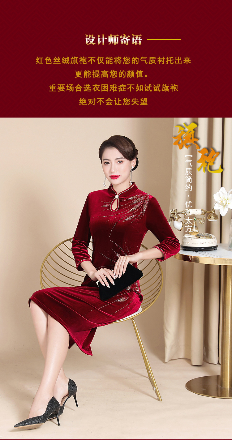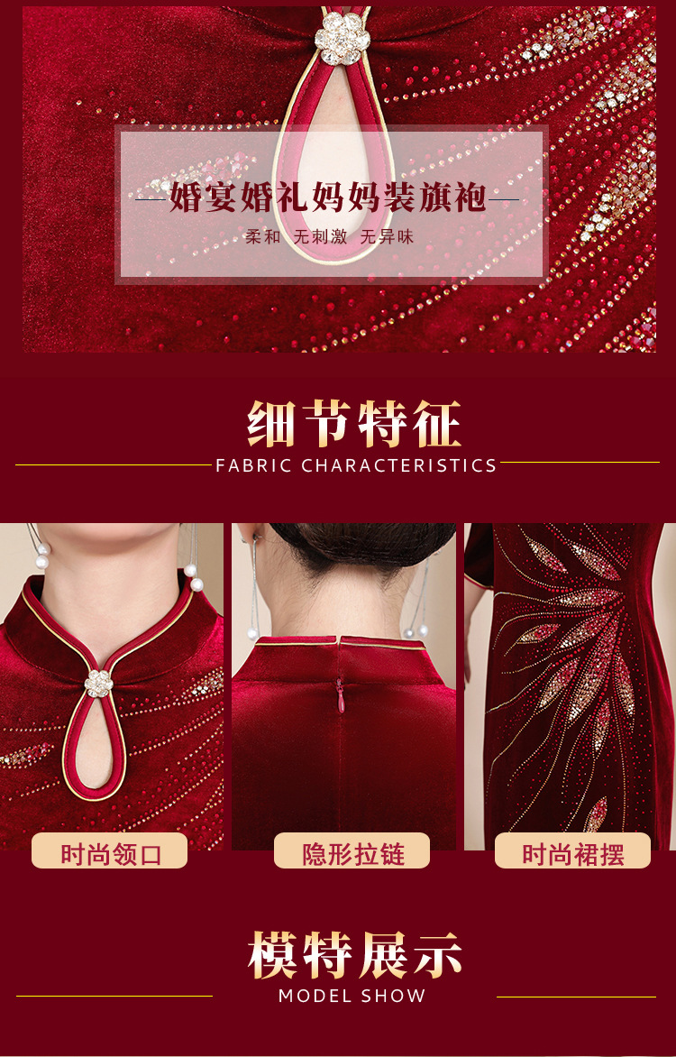 2022秋冬妈妈装婚礼旗袍改良版南韩绒高贵喜婆婆礼服WXG8531