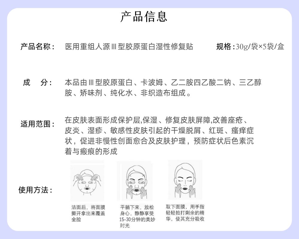 芙润娜 医用重组人源Ⅲ型胶原蛋白湿性修复贴