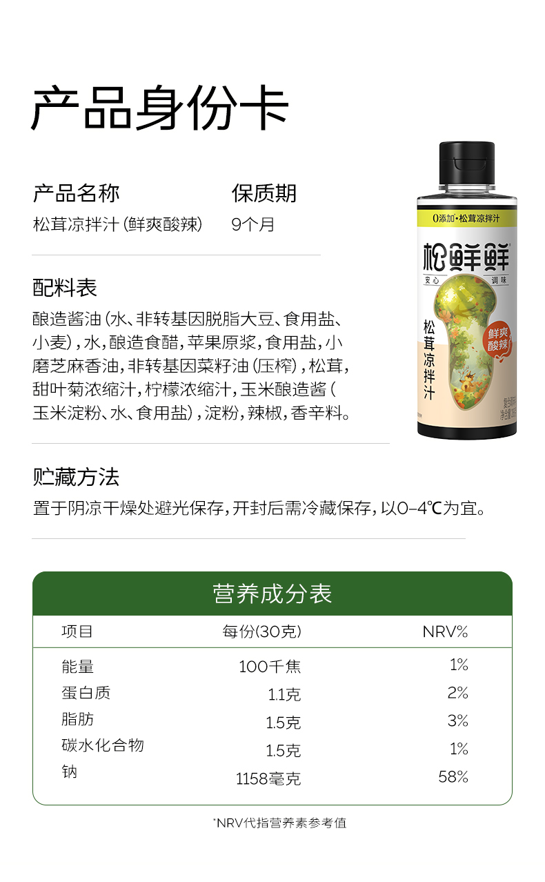 松鲜鲜 松茸凉拌汁系列(鲜香原味/鲜爽酸辣味)重塑凉拌汁的健康标准 只有自然健康鲜 凉拌菜系 减脂餐必备