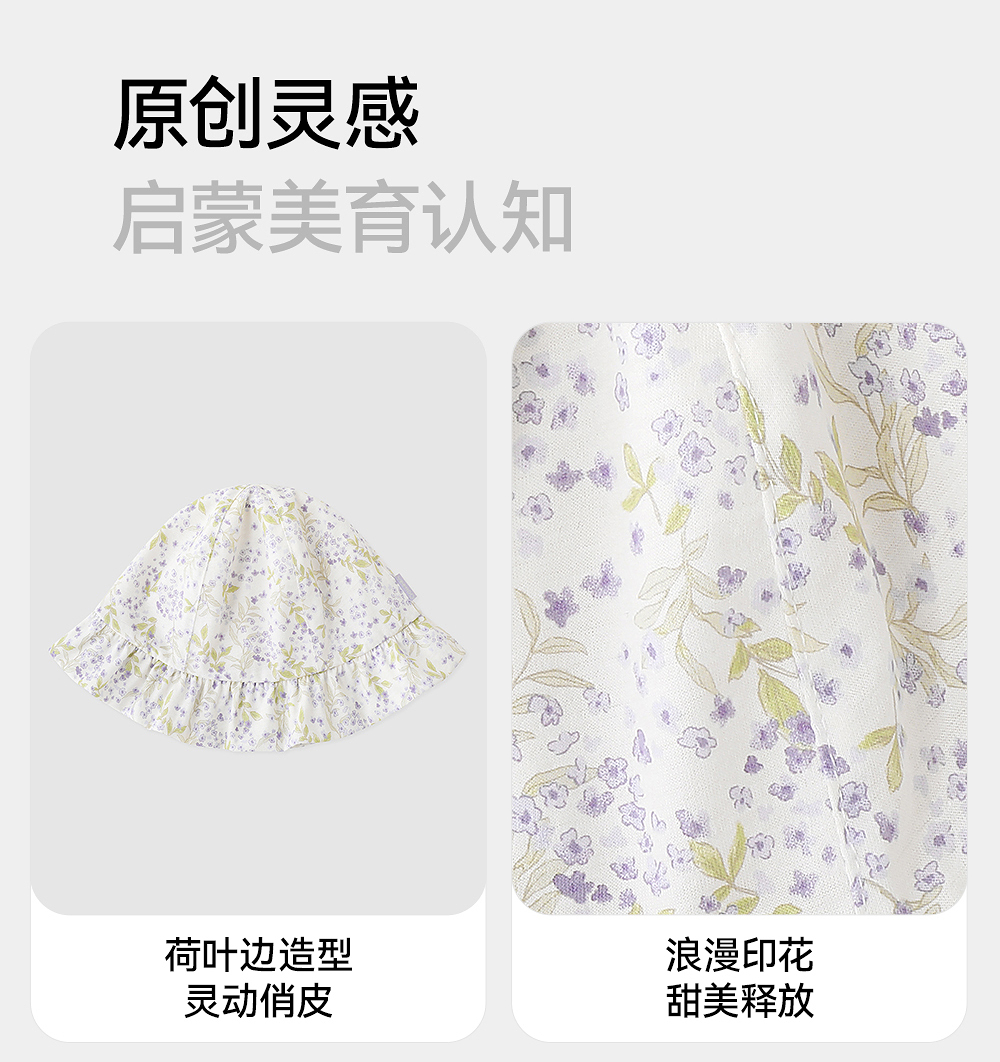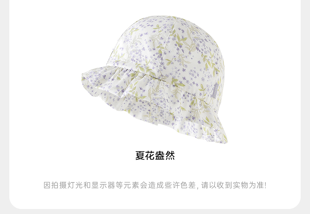 【商场同款】英氏儿童帽子夏防晒遮阳渔夫帽女童可折叠纯棉太阳帽