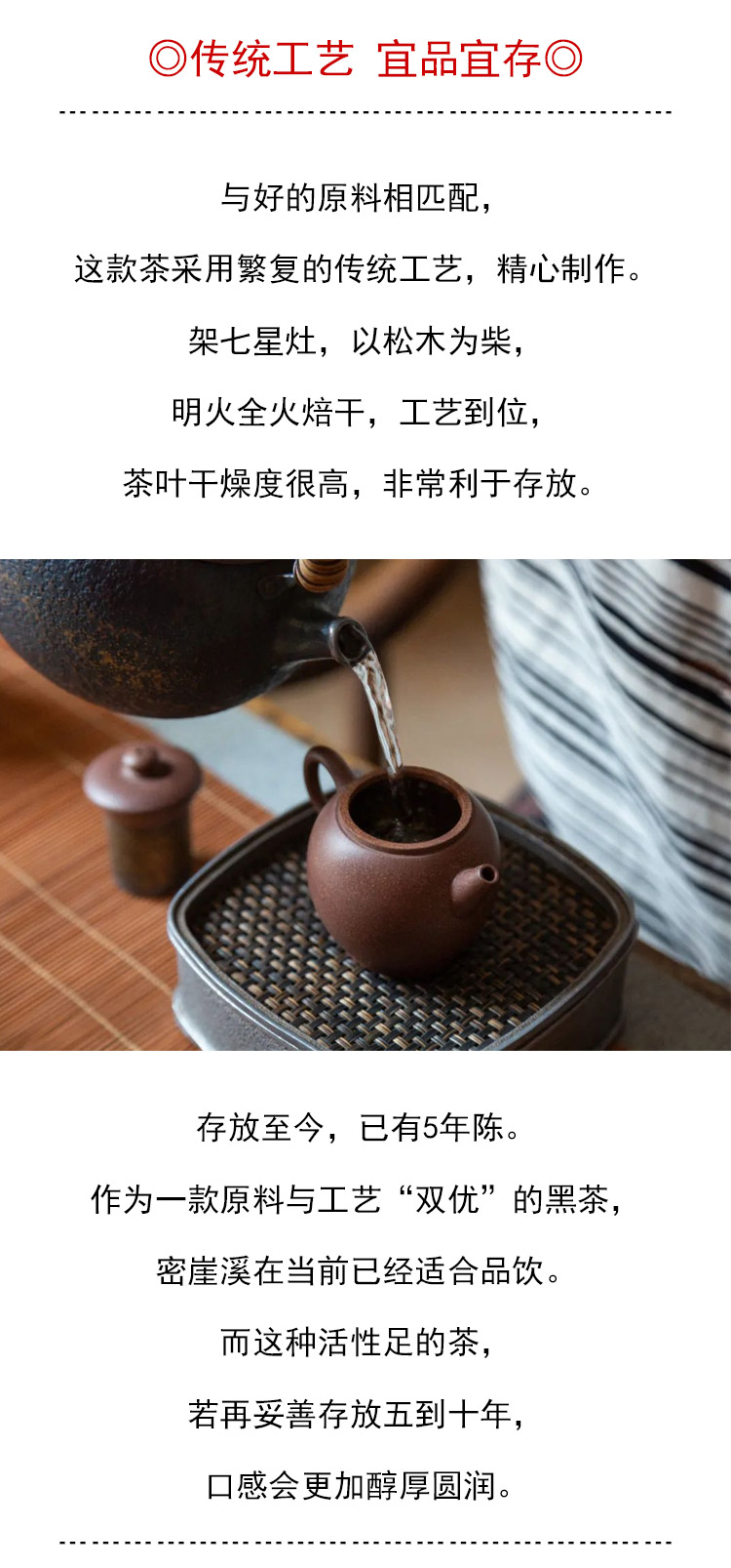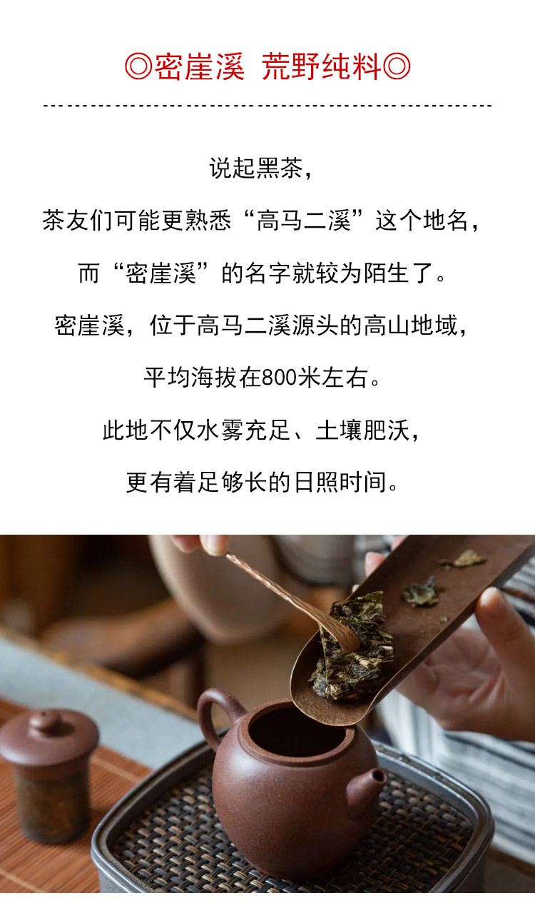 茶香记 密崖溪千两017 宜品宜存 黑茶 七星灶 木质香 松香