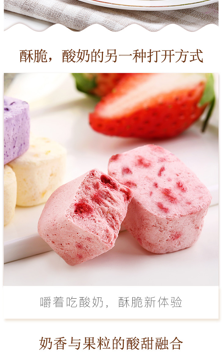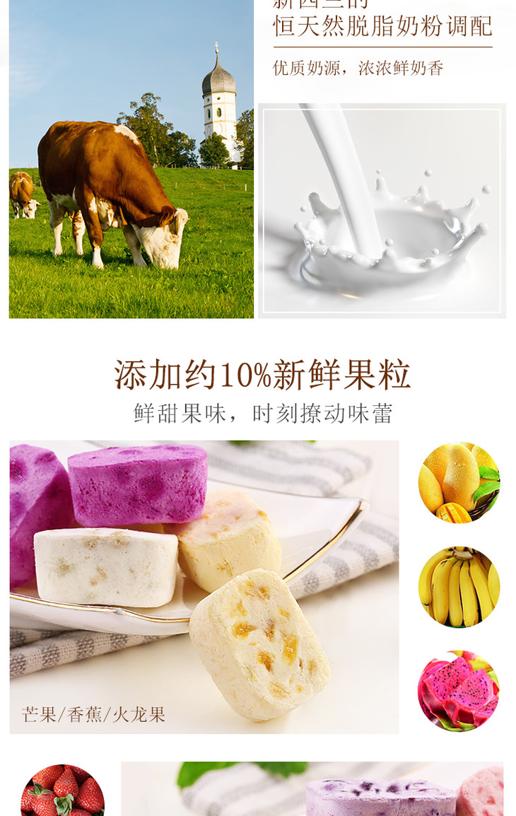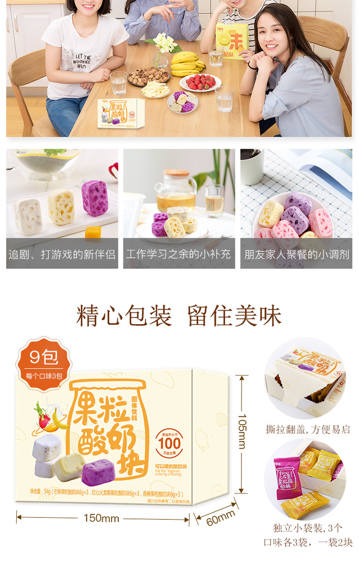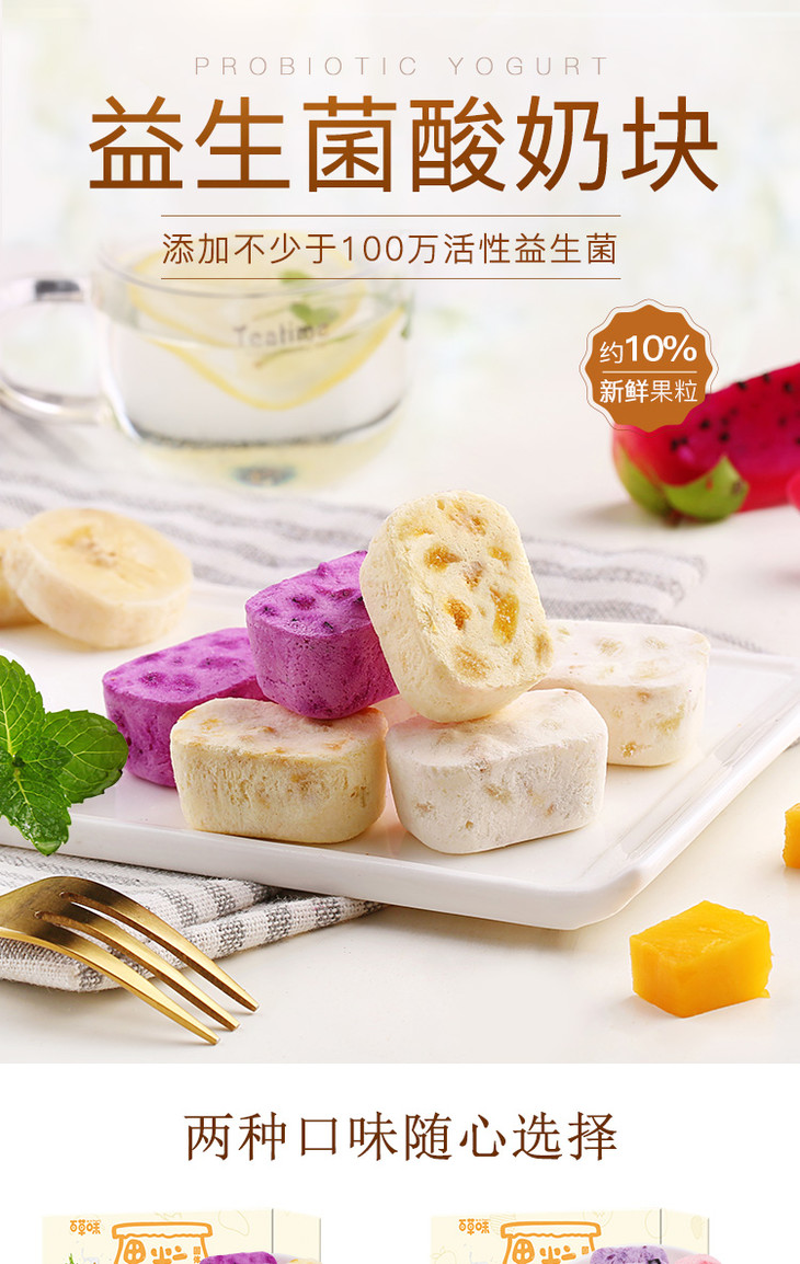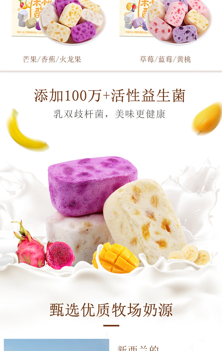 百草味果粒酸奶块 什锦冻干 水果干 草莓 蓝莓 黄桃口味/芒果 火龙果 香蕉口味 网红零食 水果干 儿童 54g/盒