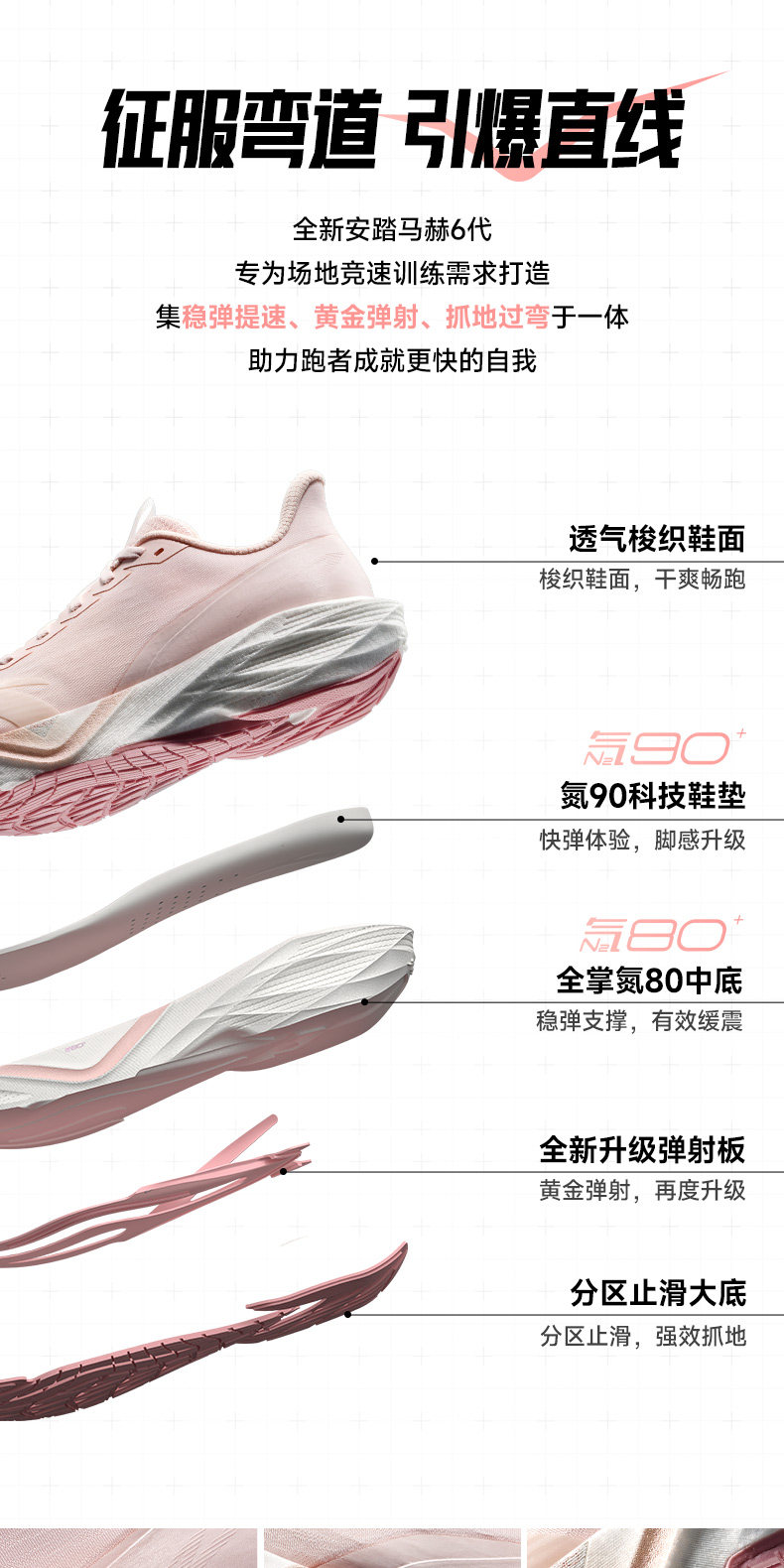 安踏马赫6代丨缓震专业跑步鞋女中考体测训练比赛运动鞋122615583