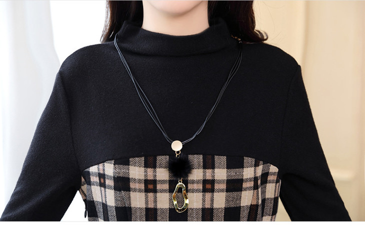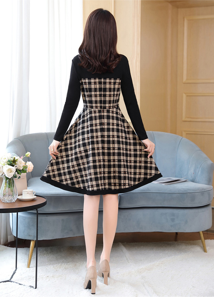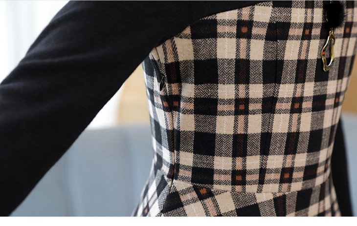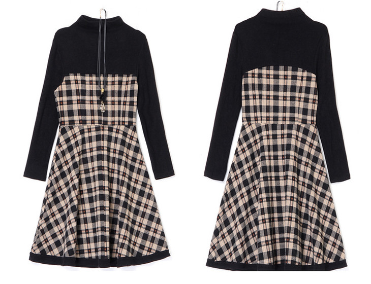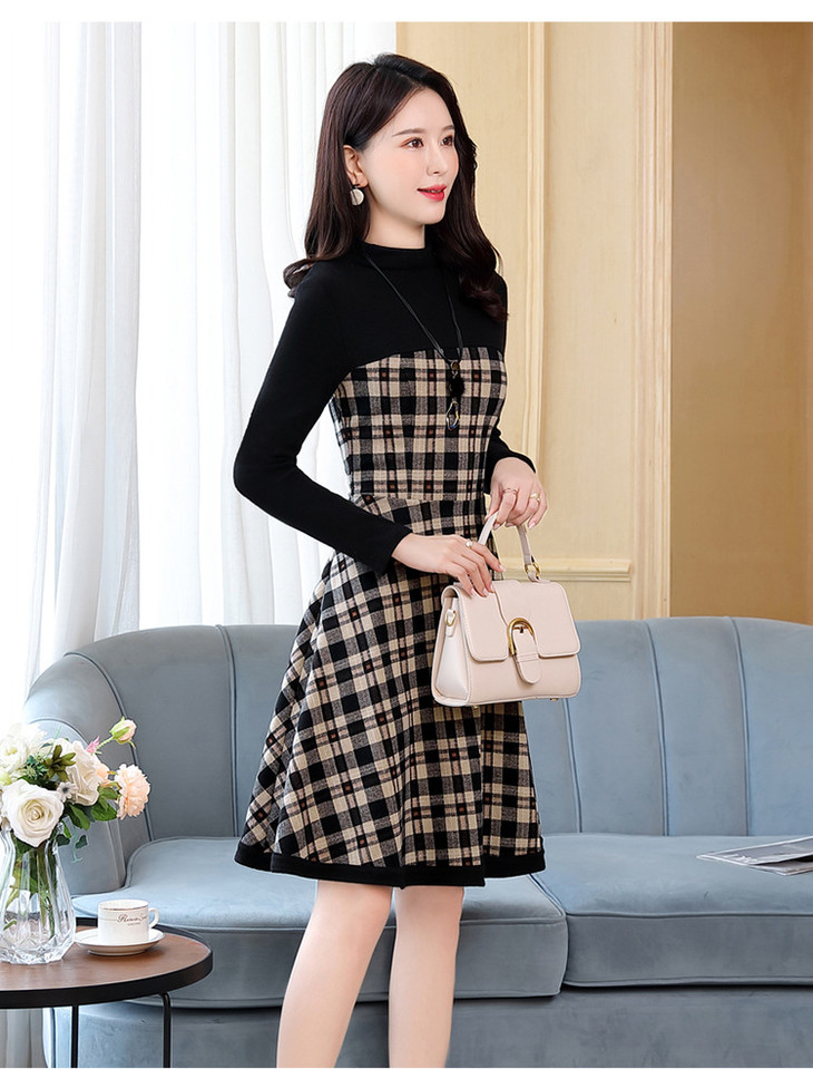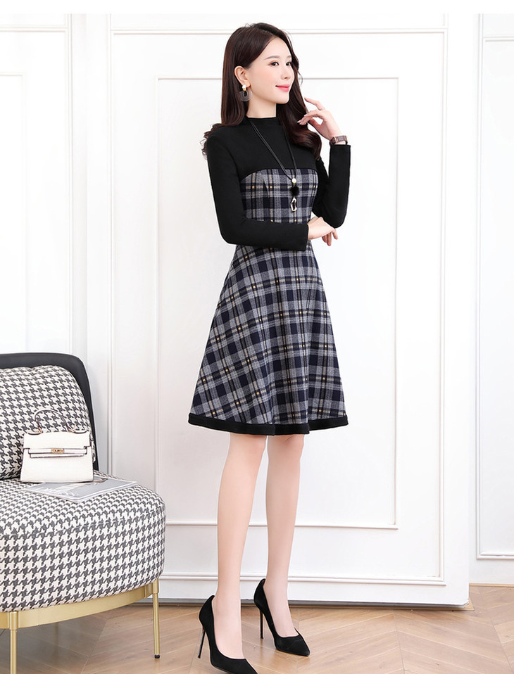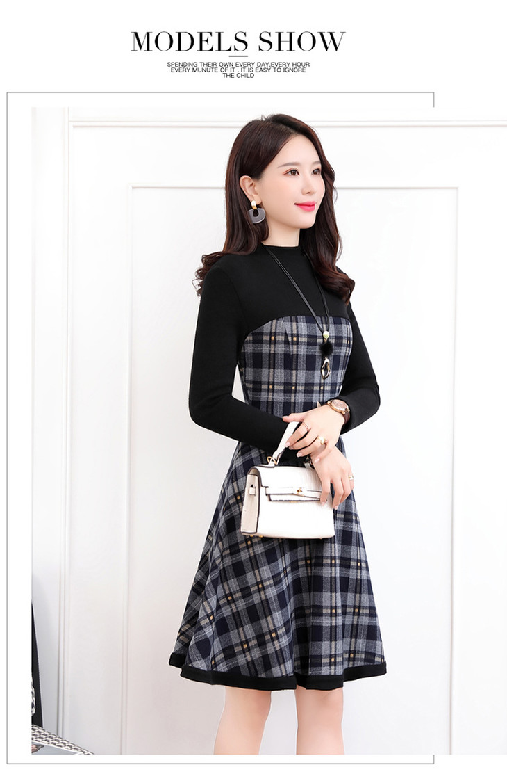 CQ-BLKE0066 2020年秋冬季时尚百搭收腰显瘦圆领拼接色A字裙连衣长袖