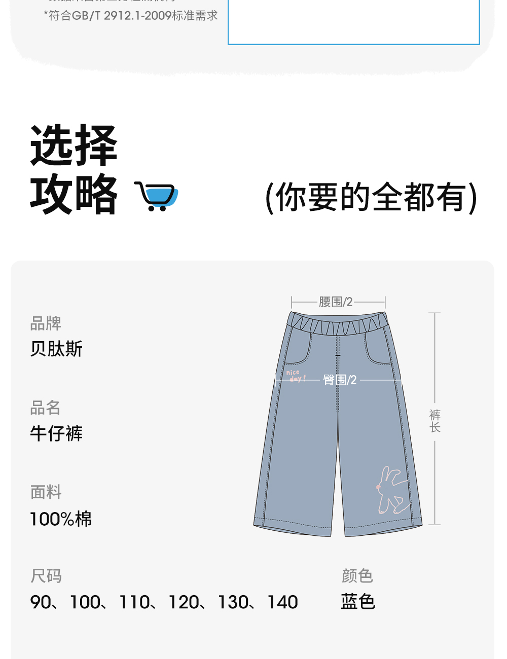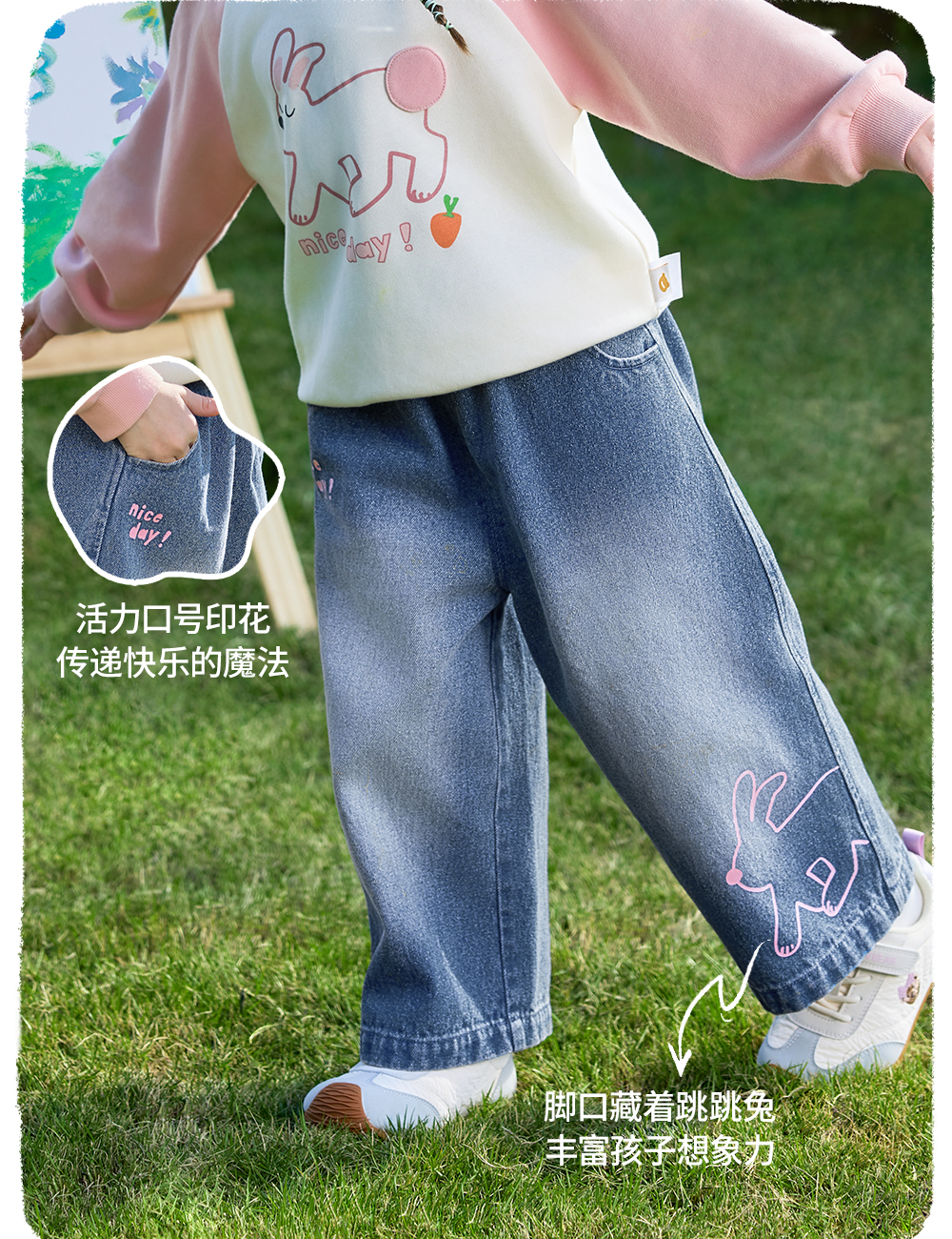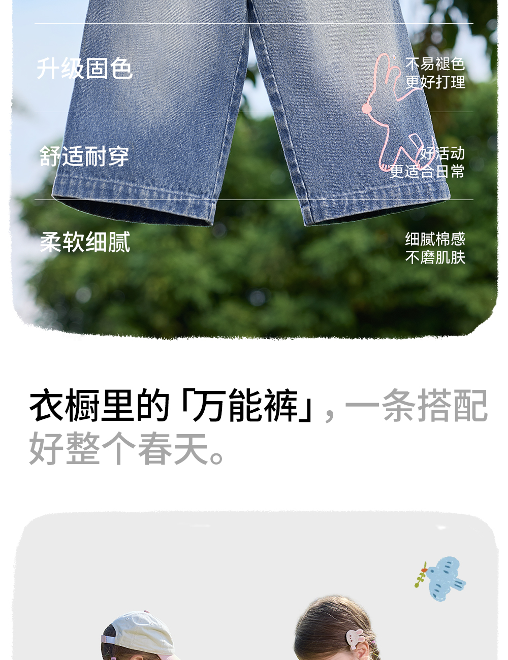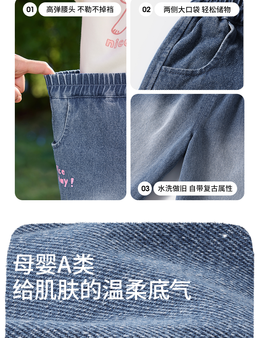 【孕味秒杀专属】贝肽斯儿童牛仔裤2026春秋季装新女宝宝纯棉裤休闲透气柔软长裤