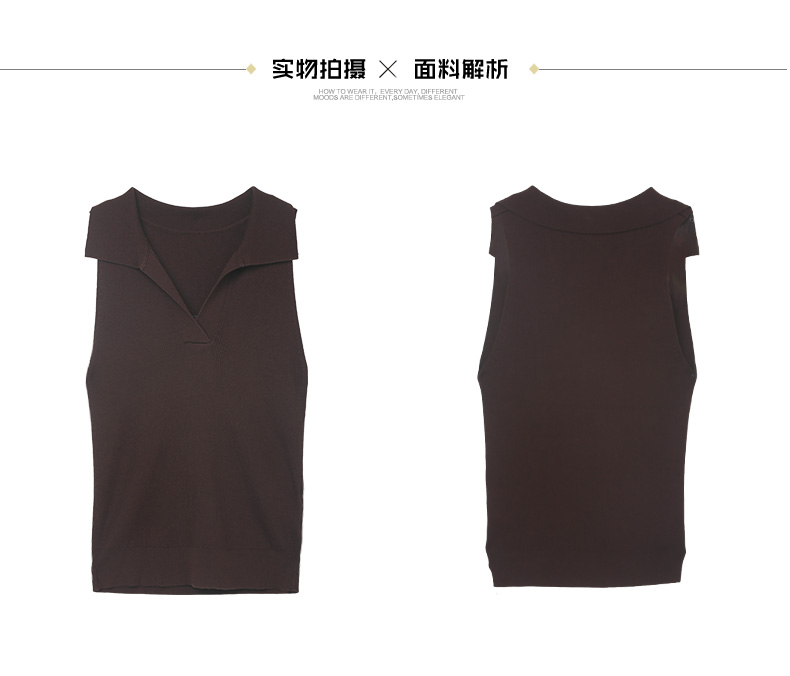 深棕色 polo 领无袖针织背心女 夏季修身显瘦翻领 V 领内搭外穿无袖上衣