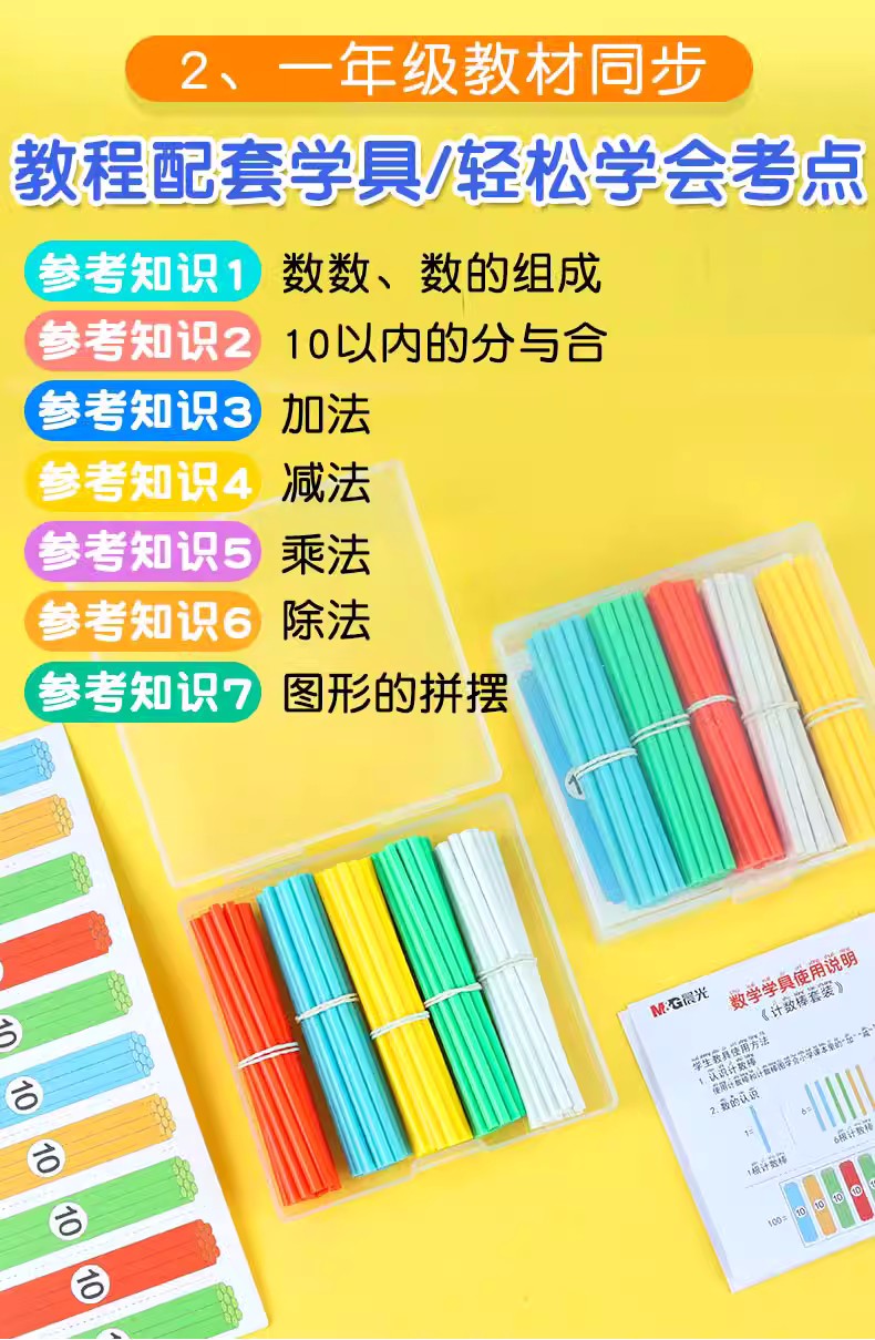 晨光计数棒100根一年级算术幼儿园学具教具 颜色认知加减图形认知
