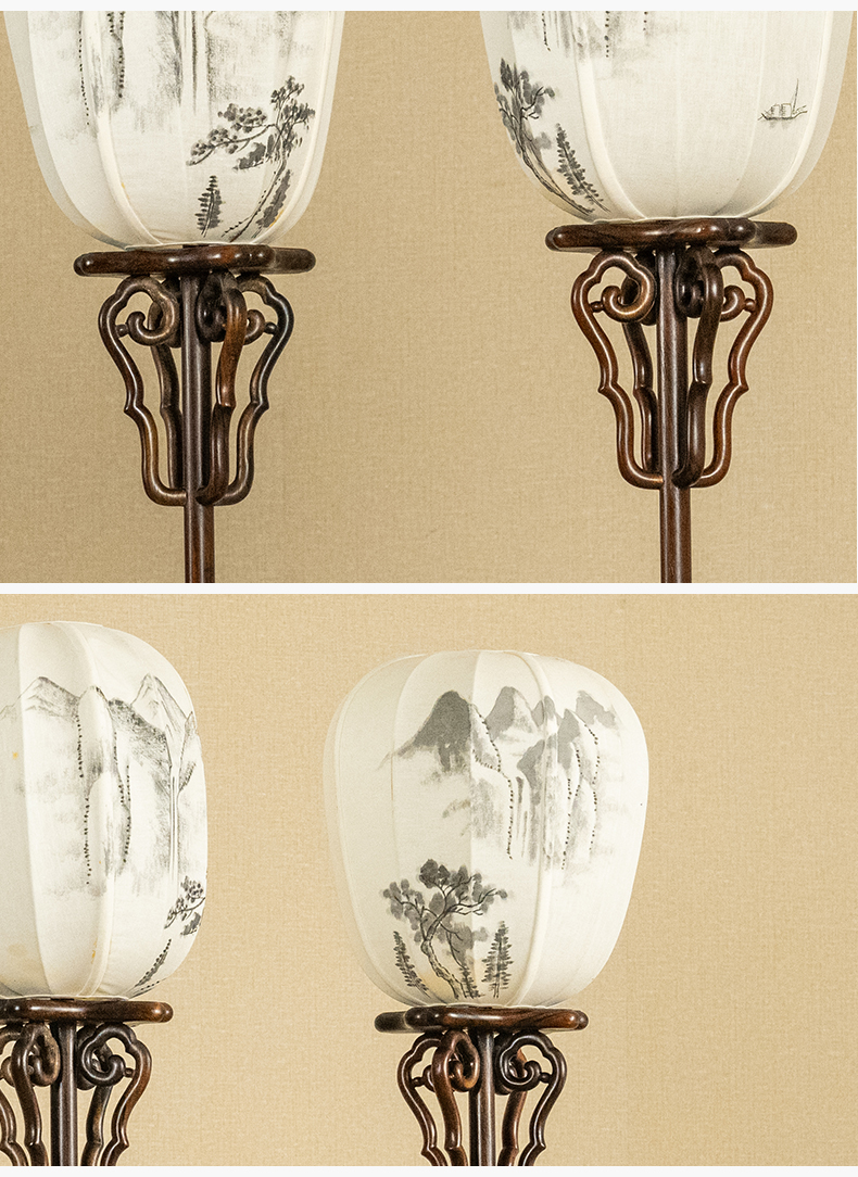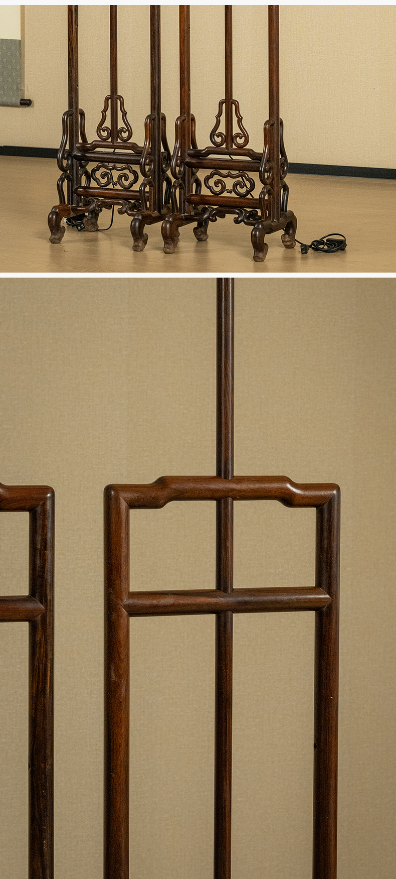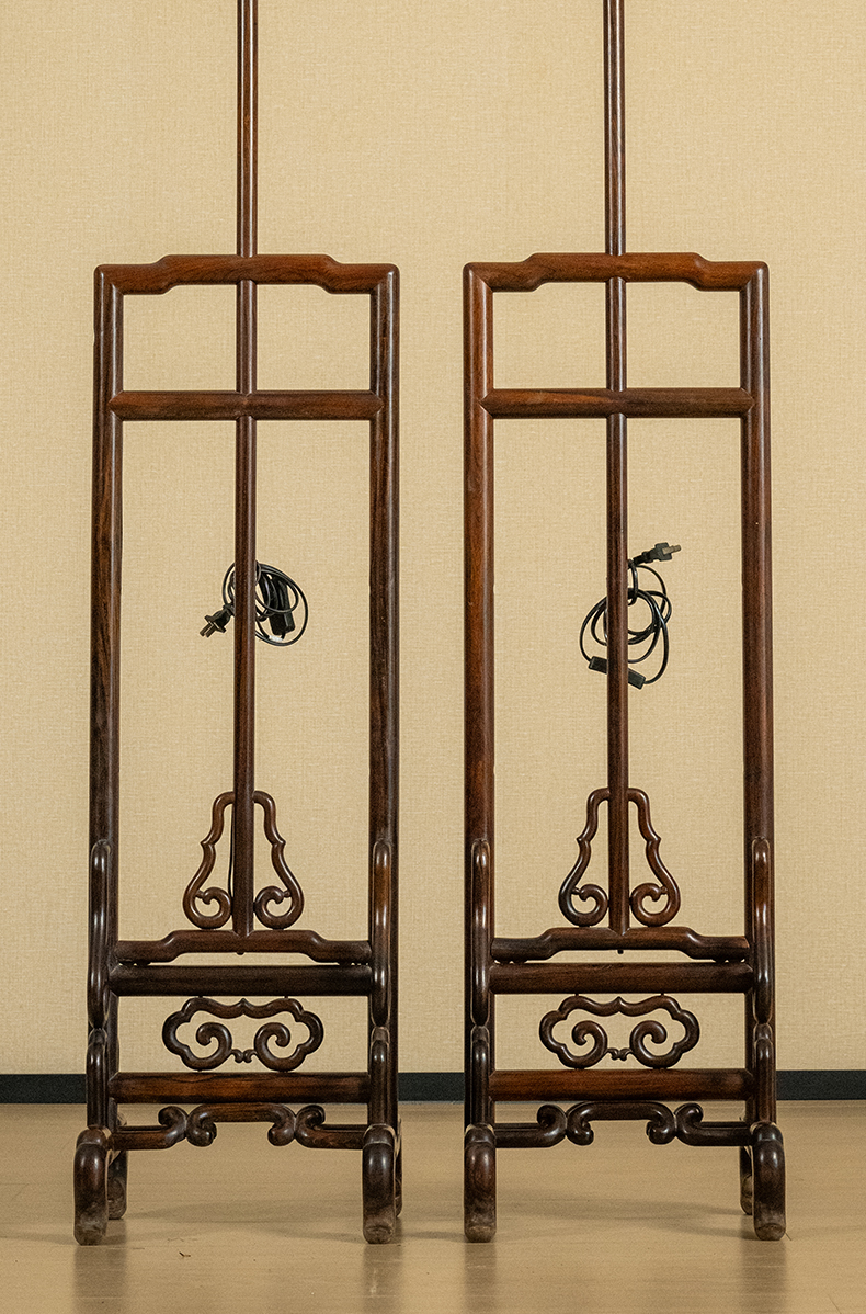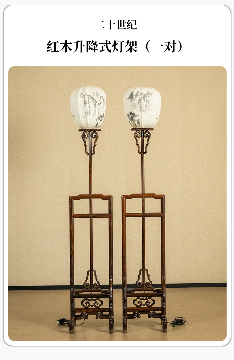二十世纪 红木升降式灯架(一对)