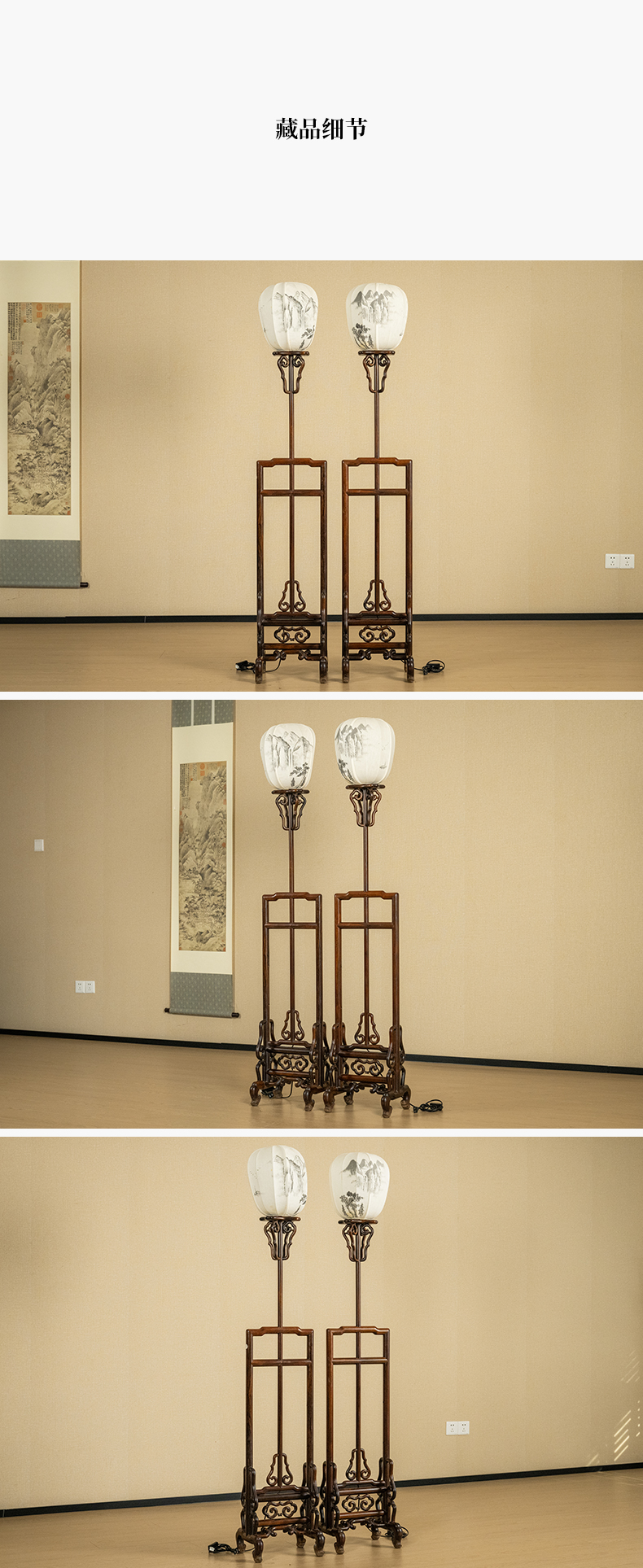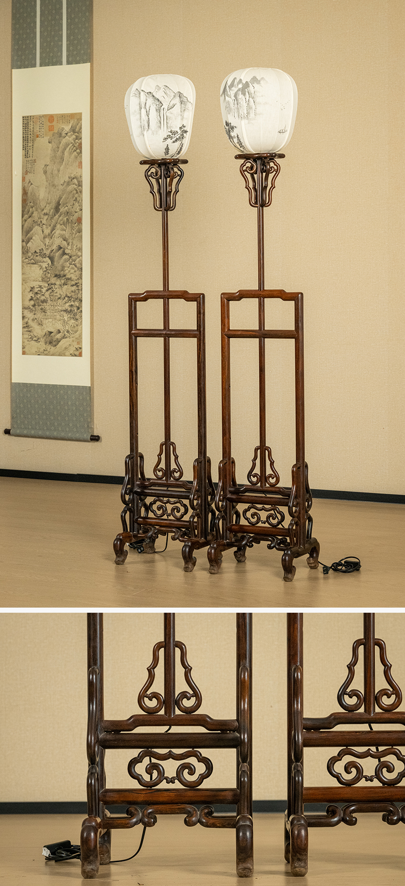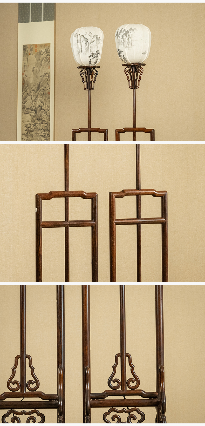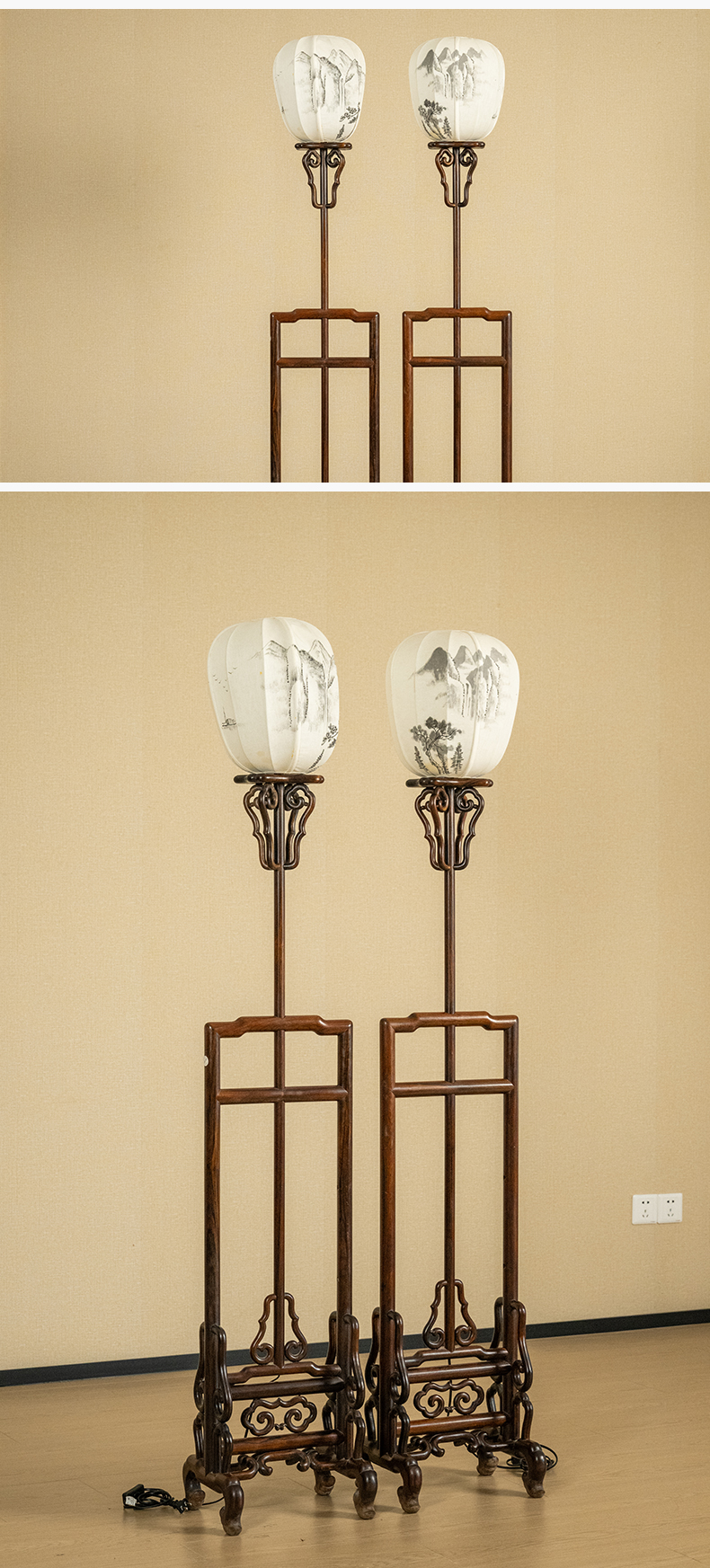二十世纪 红木升降式灯架(一对)