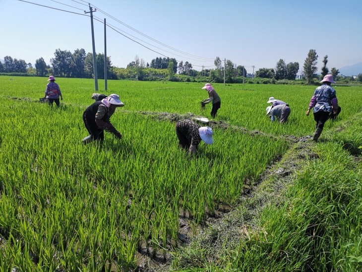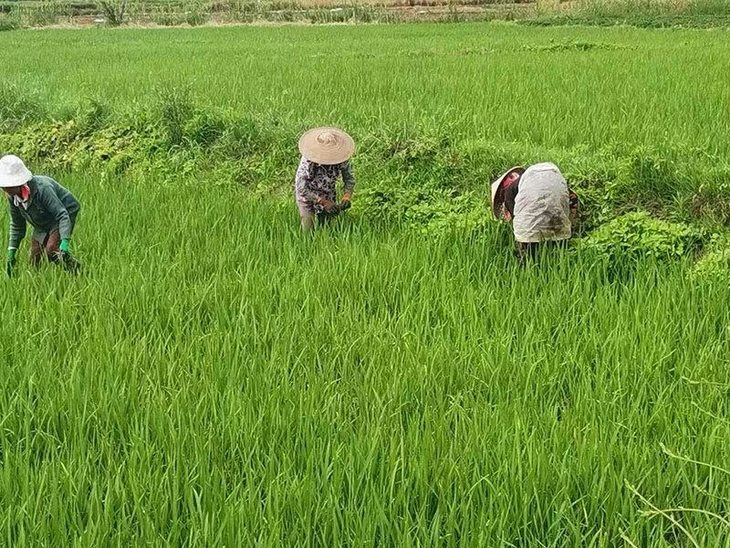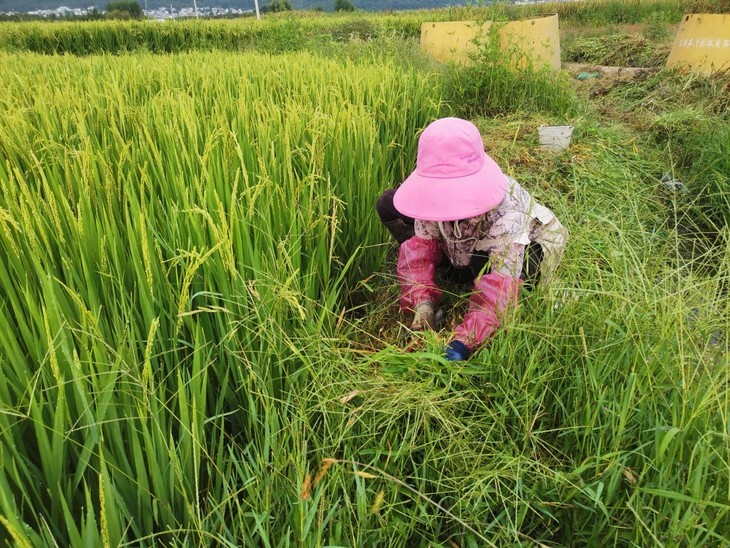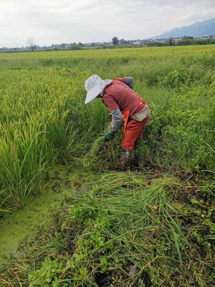 6月到10月是水稻的生长管理期,除草、除虫,浇灌水,三大头的田间管理,缺一不可,甚至需要专门的人每天查看田里的水多了还是少了。而除草则是很折磨人的工作,此时禾苗已经长起来,农户需要穿着长裤和笨重的水鞋,防止被禾苗割伤。