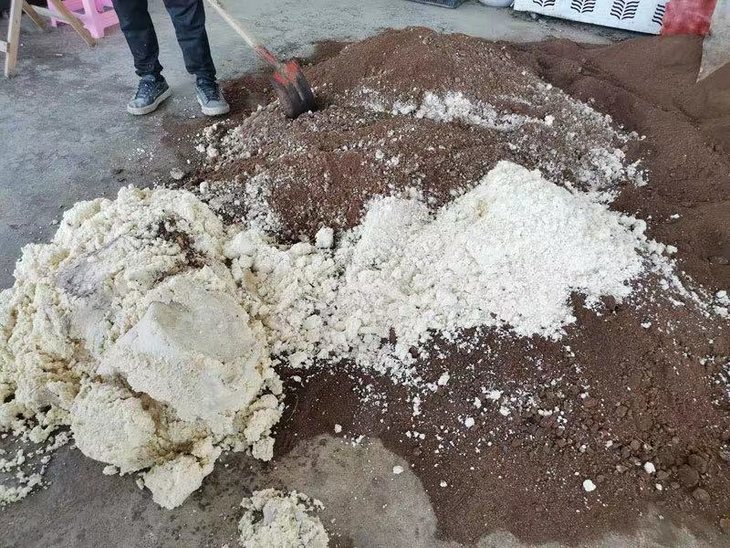 上:核桃麸和豆腐渣混合后作为肥料施用到土壤中