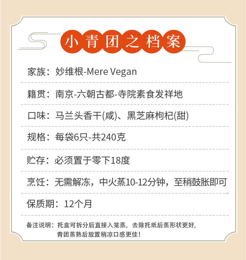妙维根青团 | 240g/袋(6只)马兰头香干/黑芝麻枸杞 时令鲜蔬 麦青汁清明艾粿