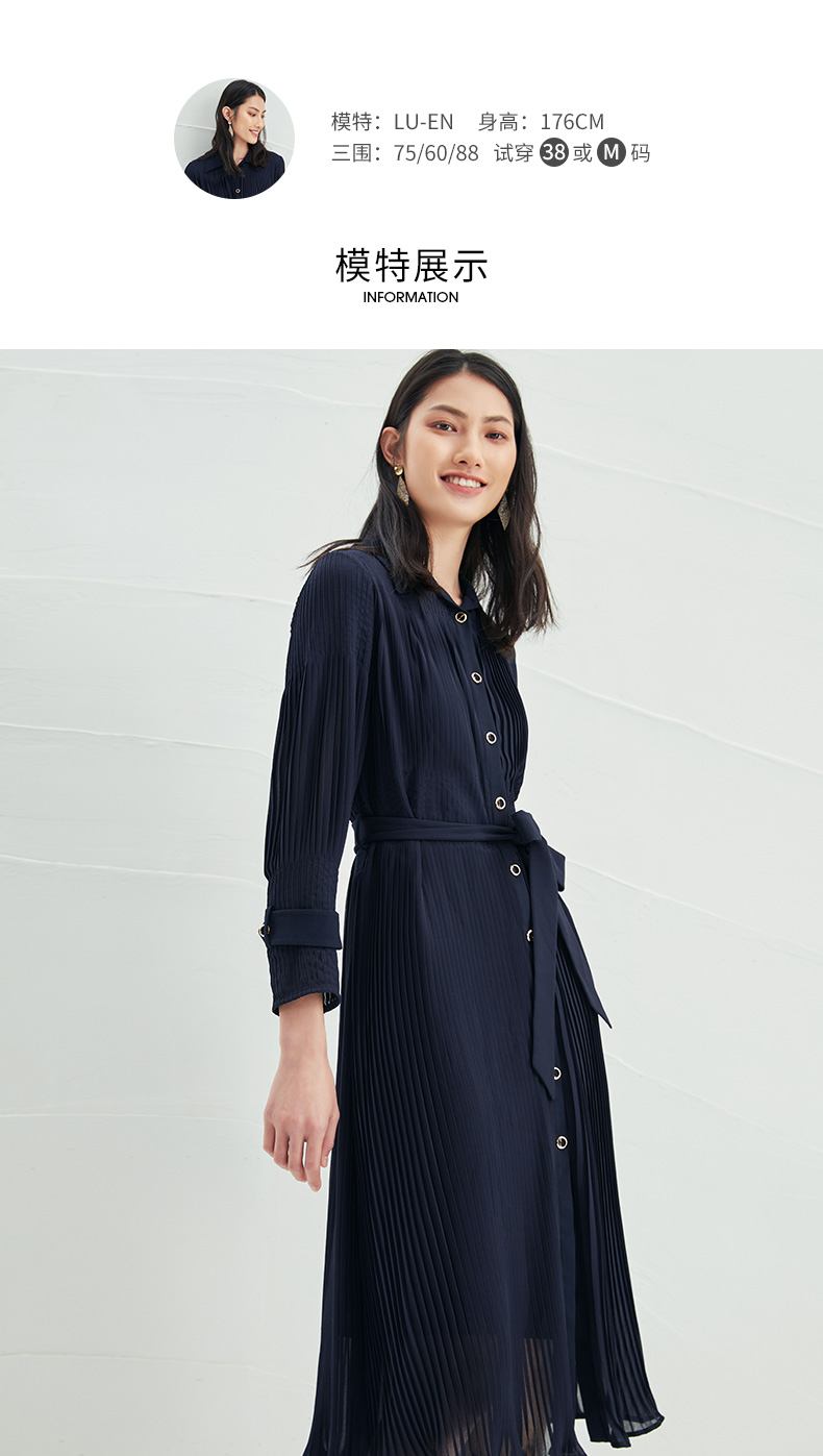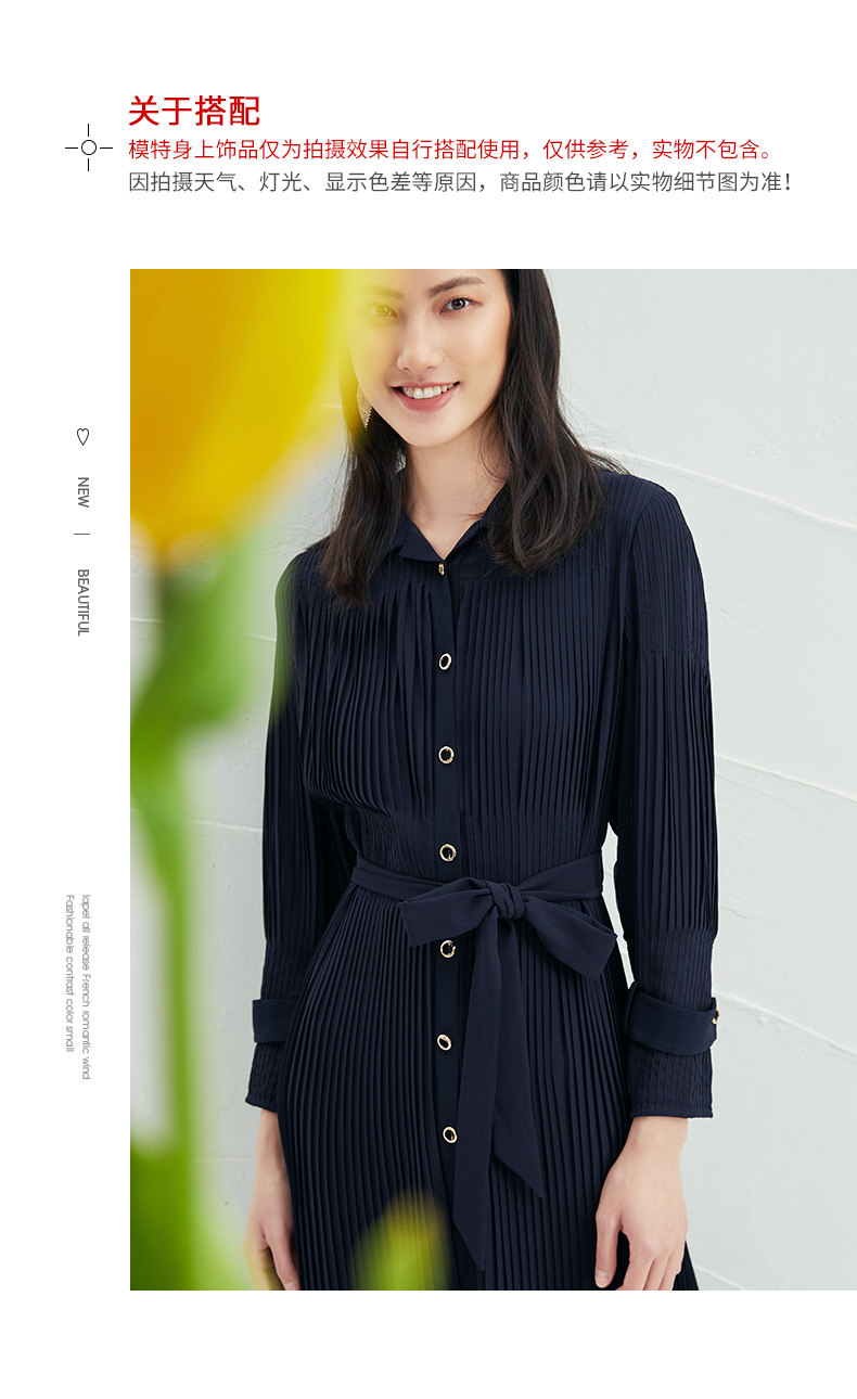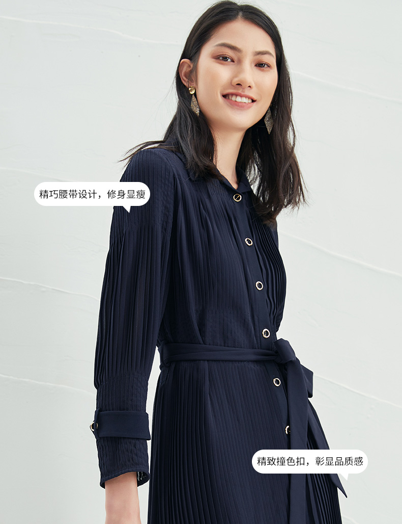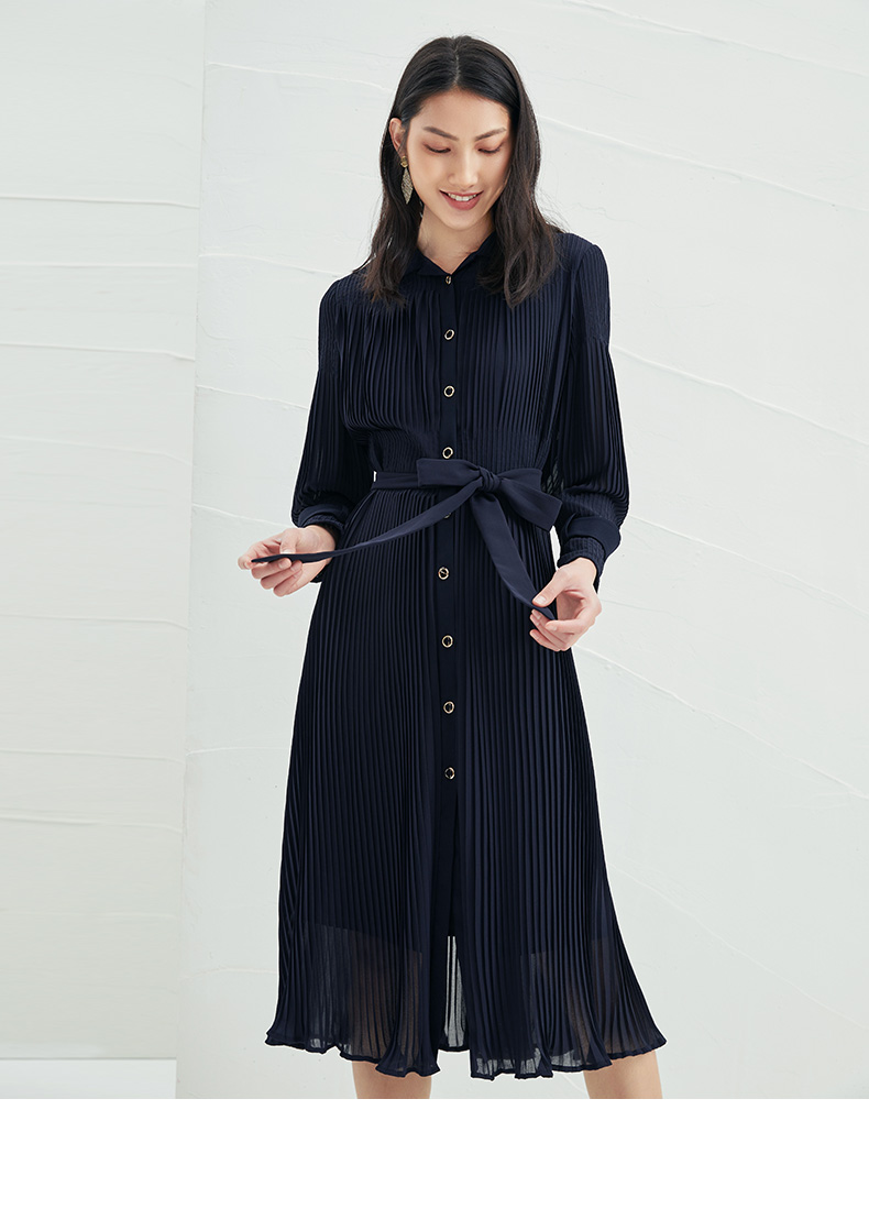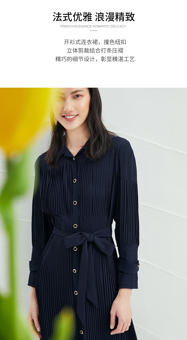 EITIE爱特爱春季新款系带束腰长袖优雅显瘦连衣裙6607357