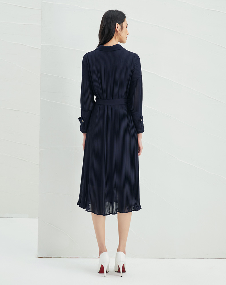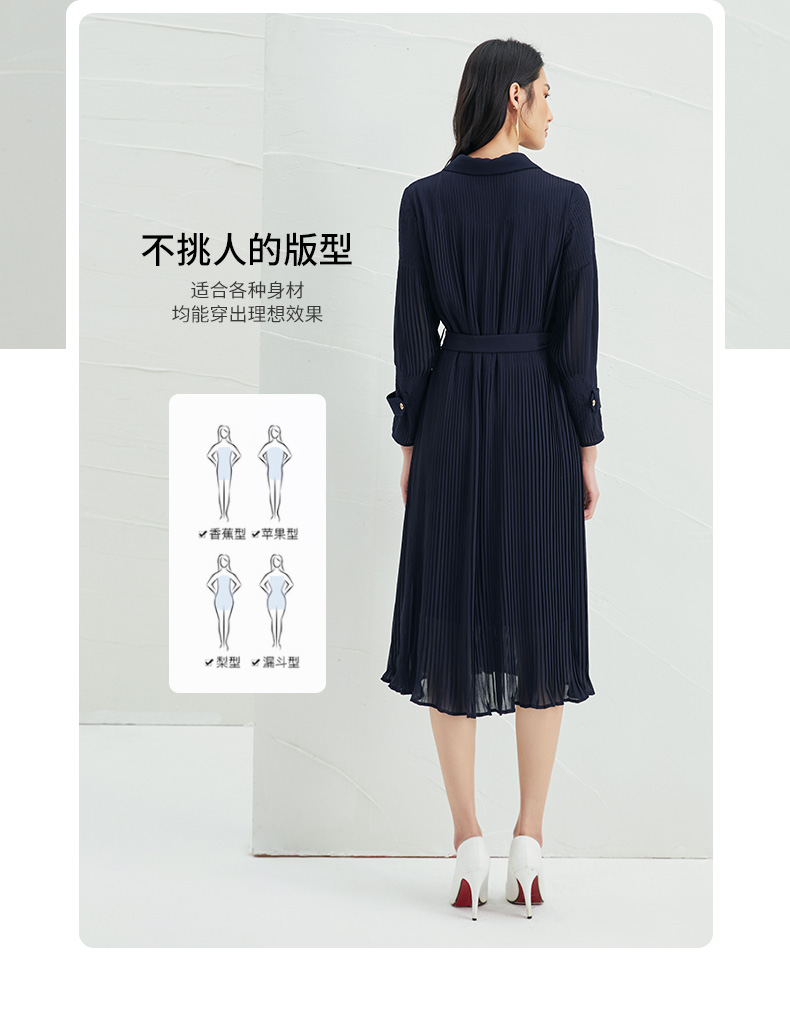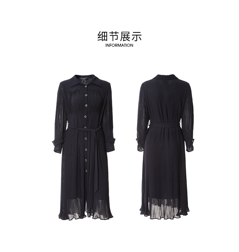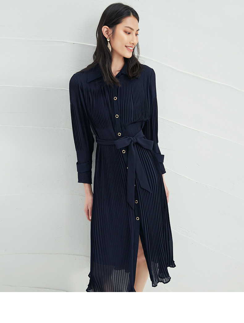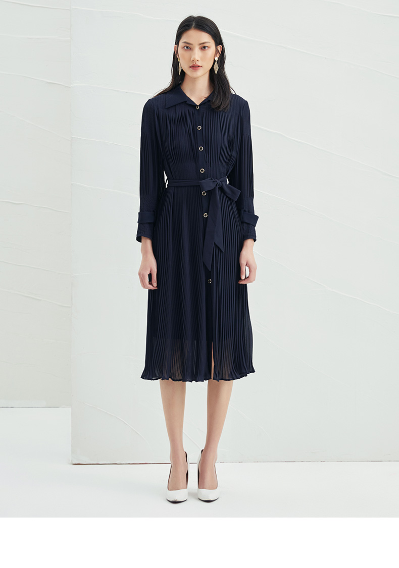 EITIE爱特爱春季新款系带束腰长袖优雅显瘦连衣裙6607357