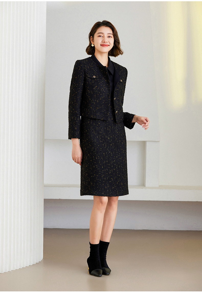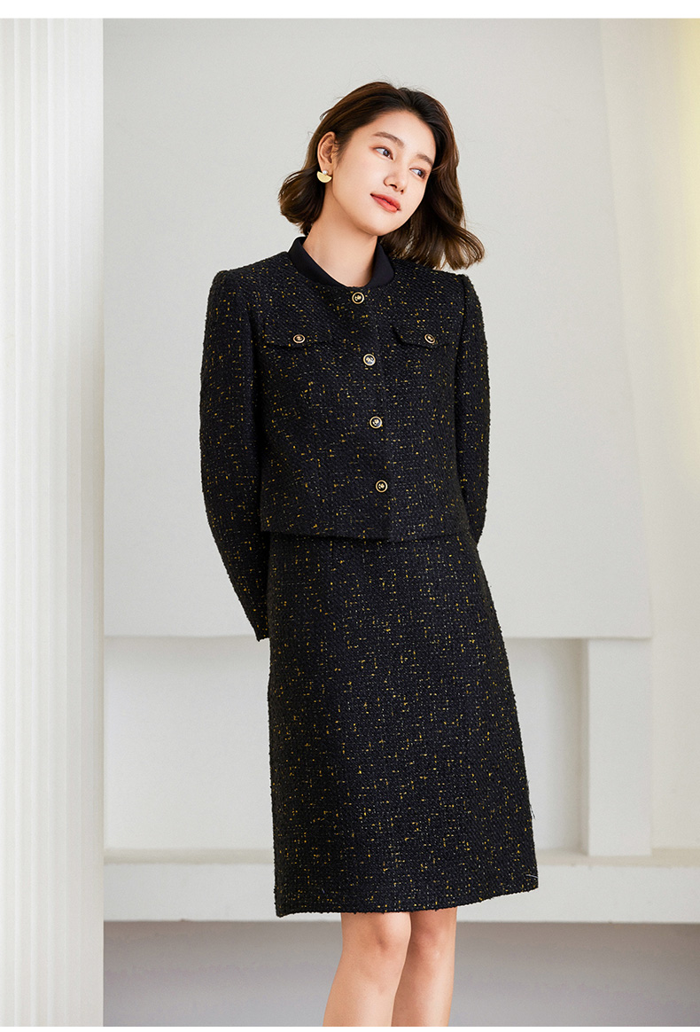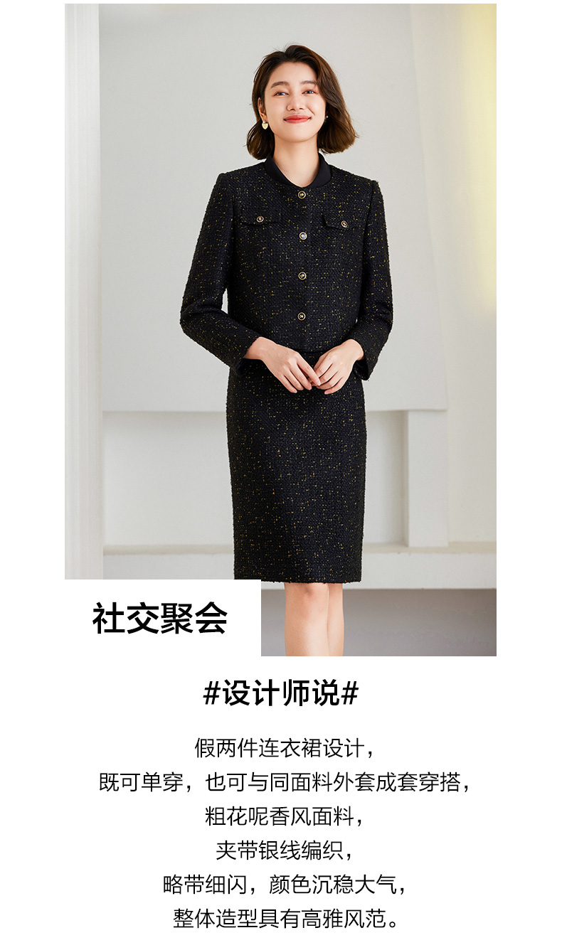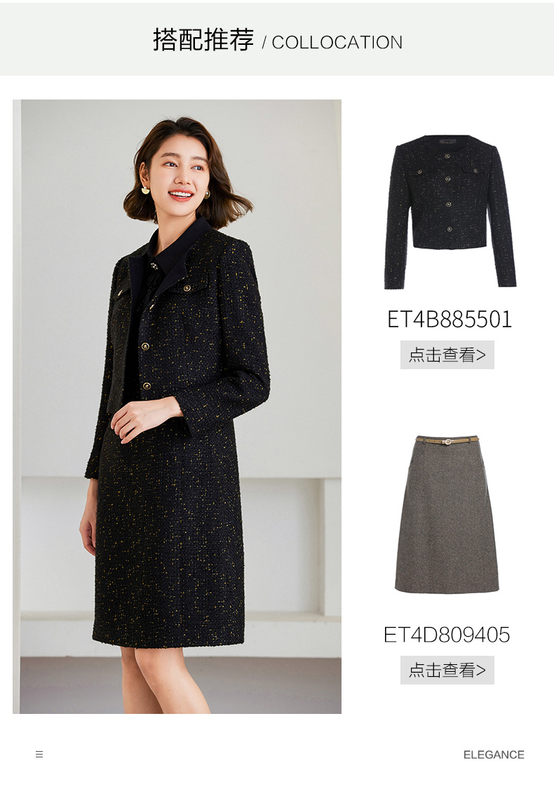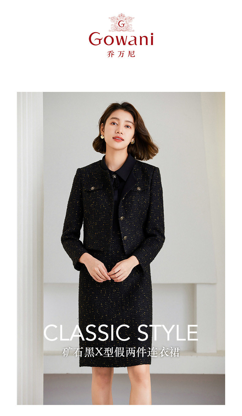 乔万尼小香风绵羊毛连衣裙粗花呢拼接设计ET4E886