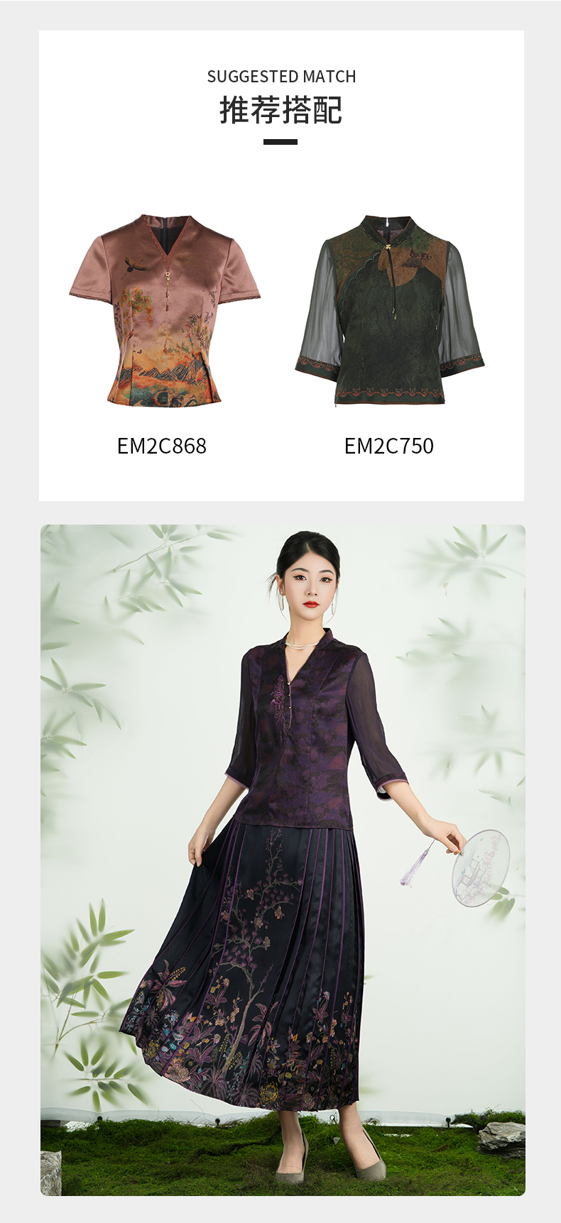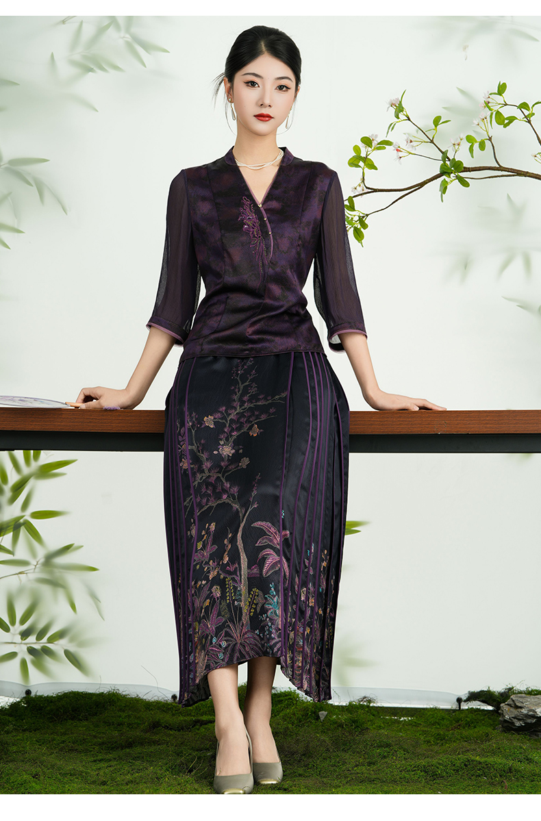 乔万尼2025新品100%真丝定位印花新中式改良马面裙ED2D487